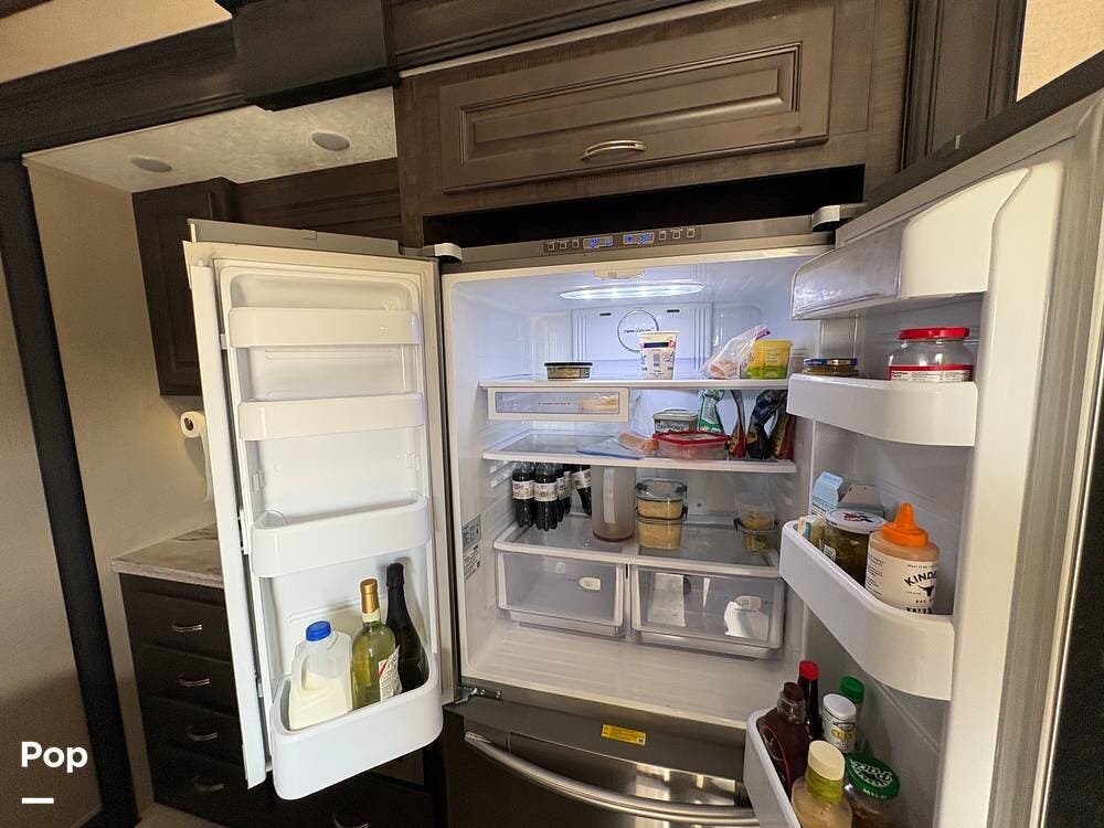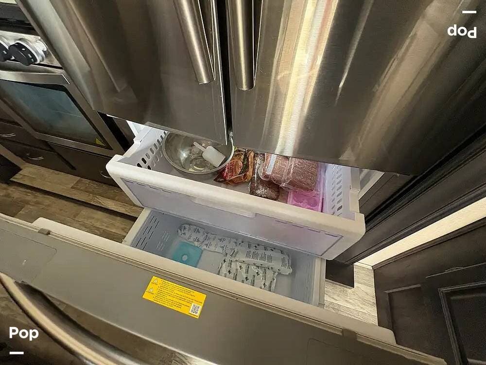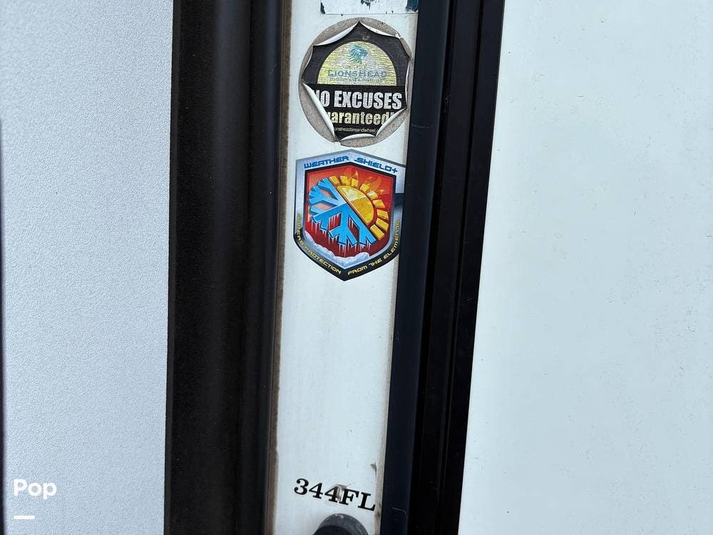 The floor plan is very accommodating: the 344FL features a front living area, a kitchen island, residential-style appliances (including a large stainless steel side-by-side refrigerator), and a full-service master suite. The layout features dual opposing slides in the living room and kitchen area, and a slide in the bedroom, for optimal living space.