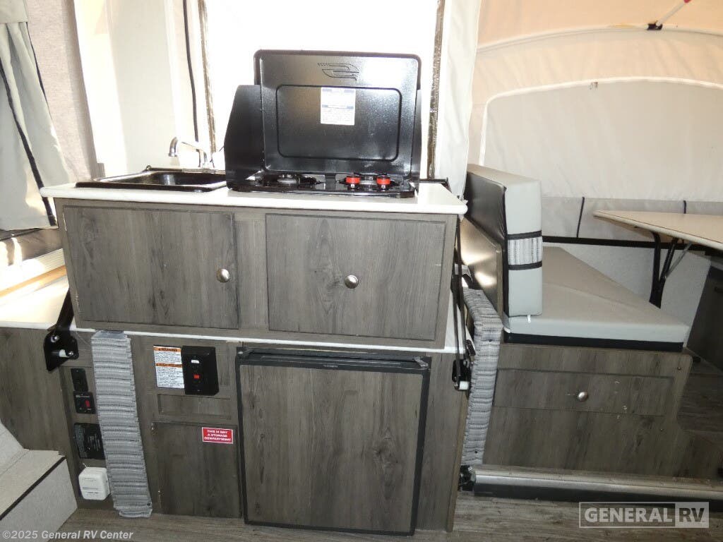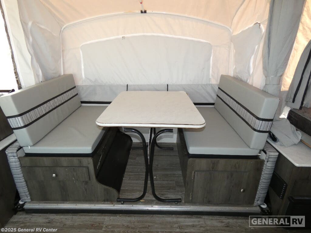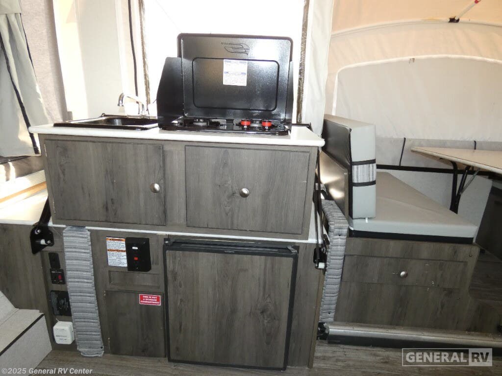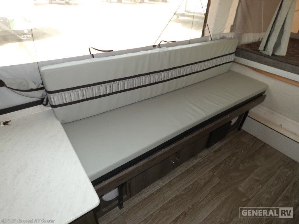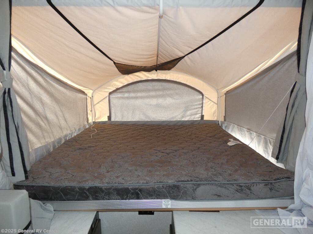 Discover the 2021 Coachmen Clipper 1285SST, a versatile and spacious pop-up camper designed to elevate your camping adventures. With its innovative floorplan, this model comfortably sleeps up to seven, offering a queen and king insulated bunk, along with two convertible sleeping areas. The center kitchen and living area provide a cozy atmosphere for family gatherings, featuring a compact refrigerator and a two-burner cooktop to whip up your favorite meals. The Clipper 1285SST is designed for convenience and comfort, boasting a spacious slide-out that enhances the living space. The manual awning offers a shaded retreat on sunny days, perfect for enjoying the great outdoors. With a fresh water capacity of 23 gallons and an automatic heater, you'll have all the essentials for a comfortable getaway. Lightweight yet durable, this camper is easy to tow, making it the ideal choice for both new and seasoned RV enthusiasts. For more details, visit your nearest General RV dealership today!