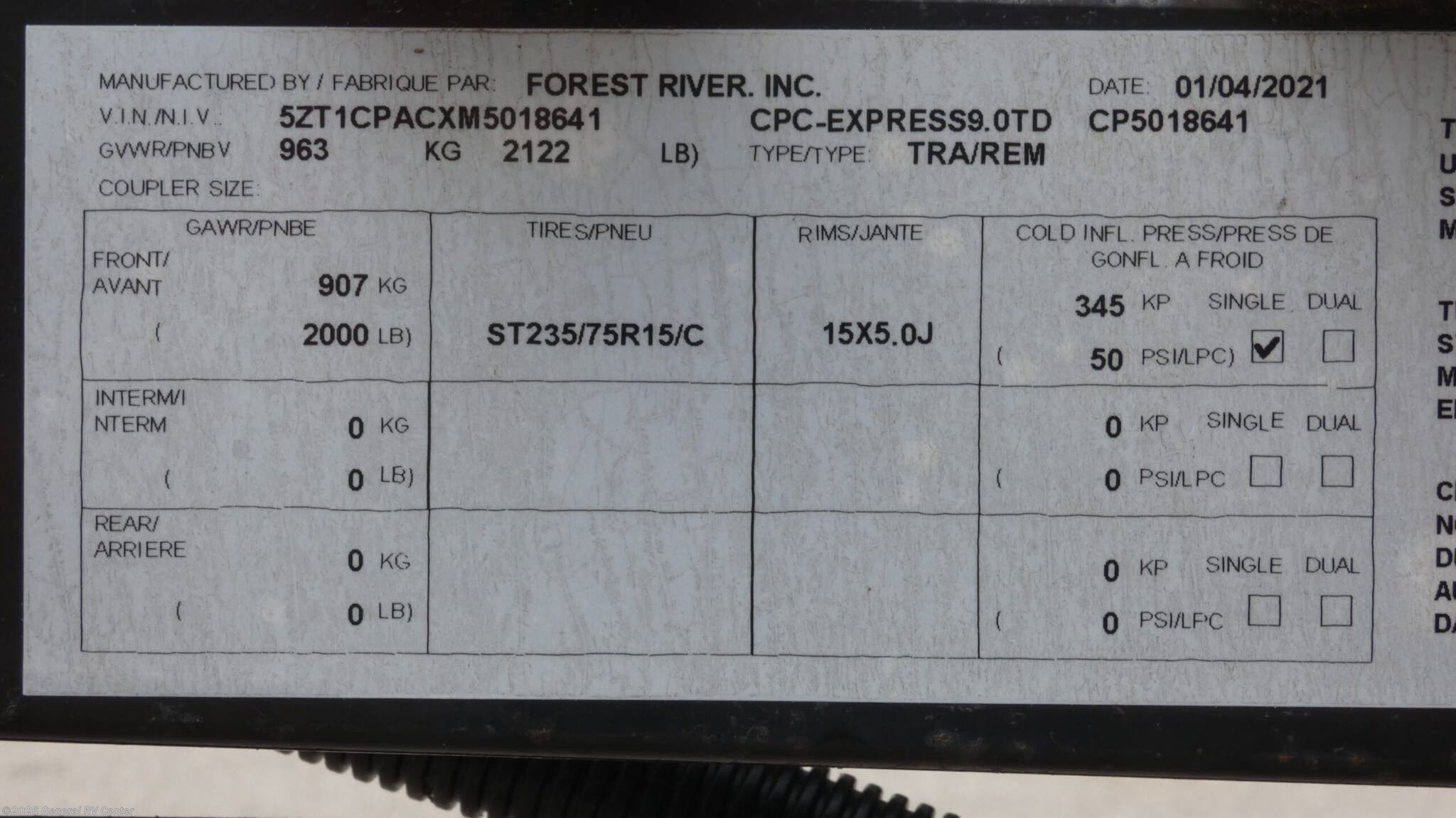 - VIN5ZT1CPACXM5018641