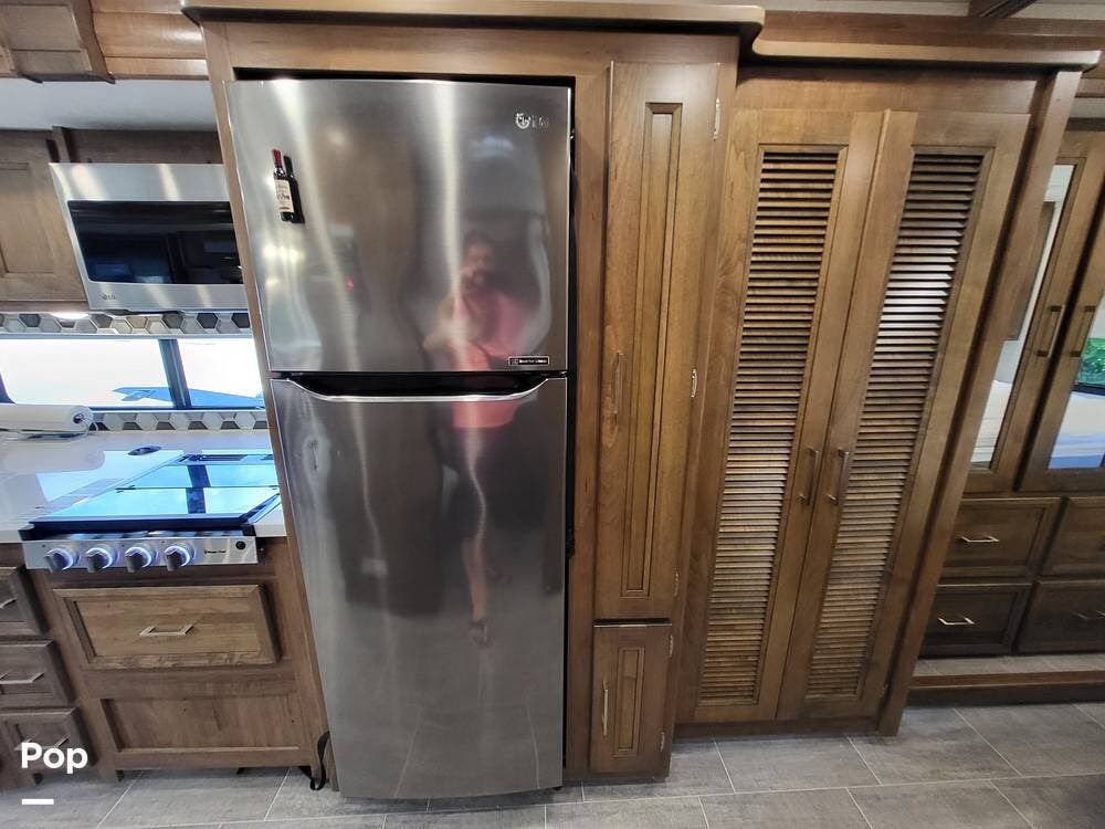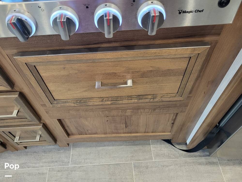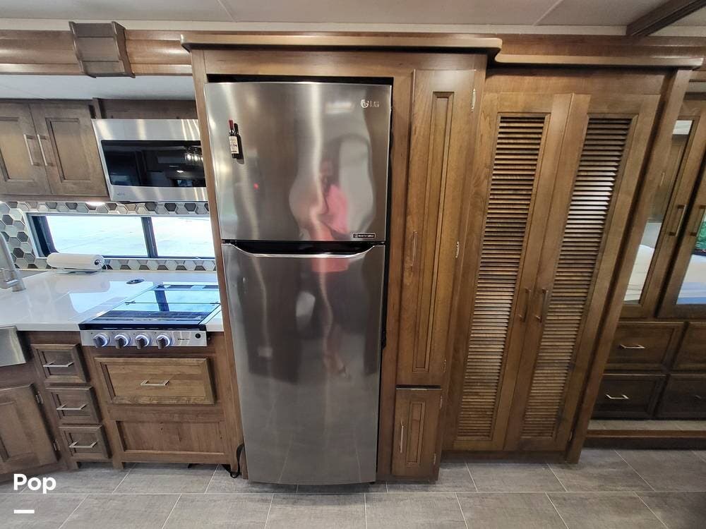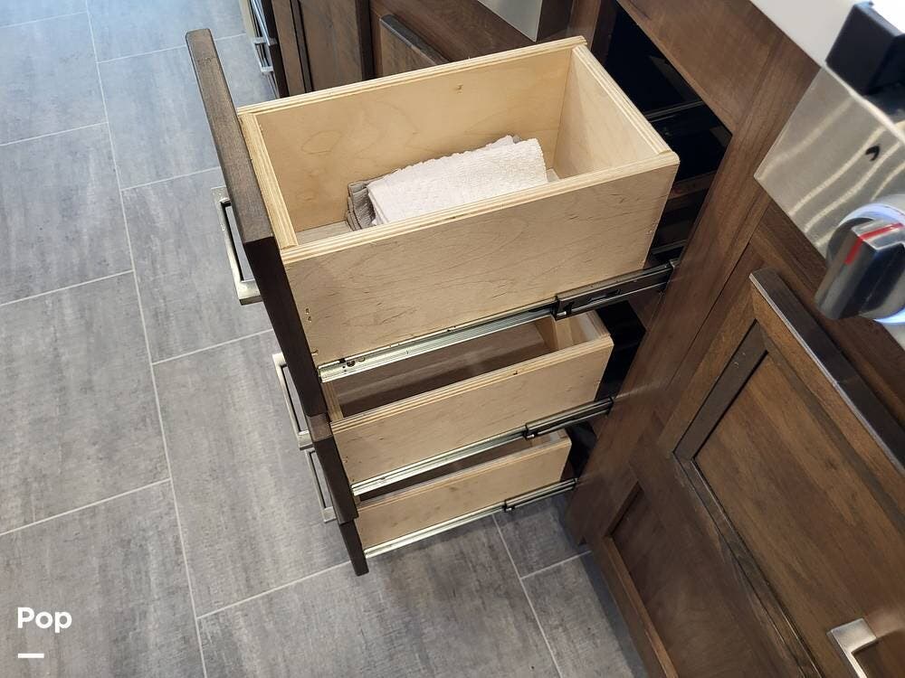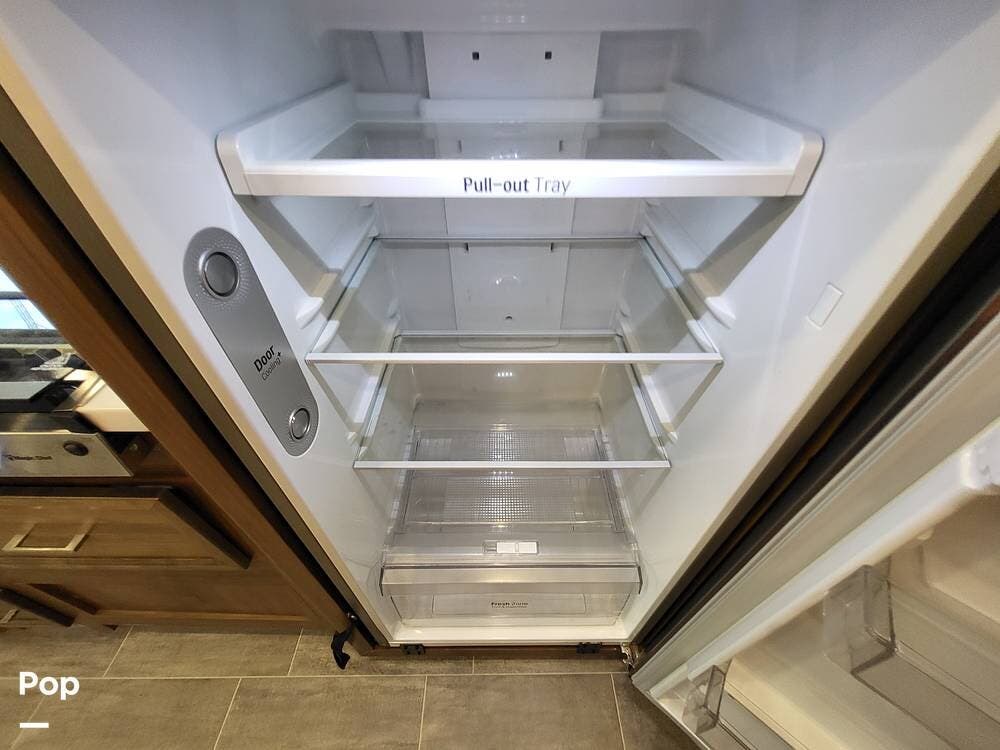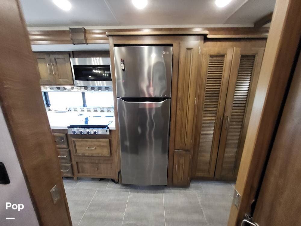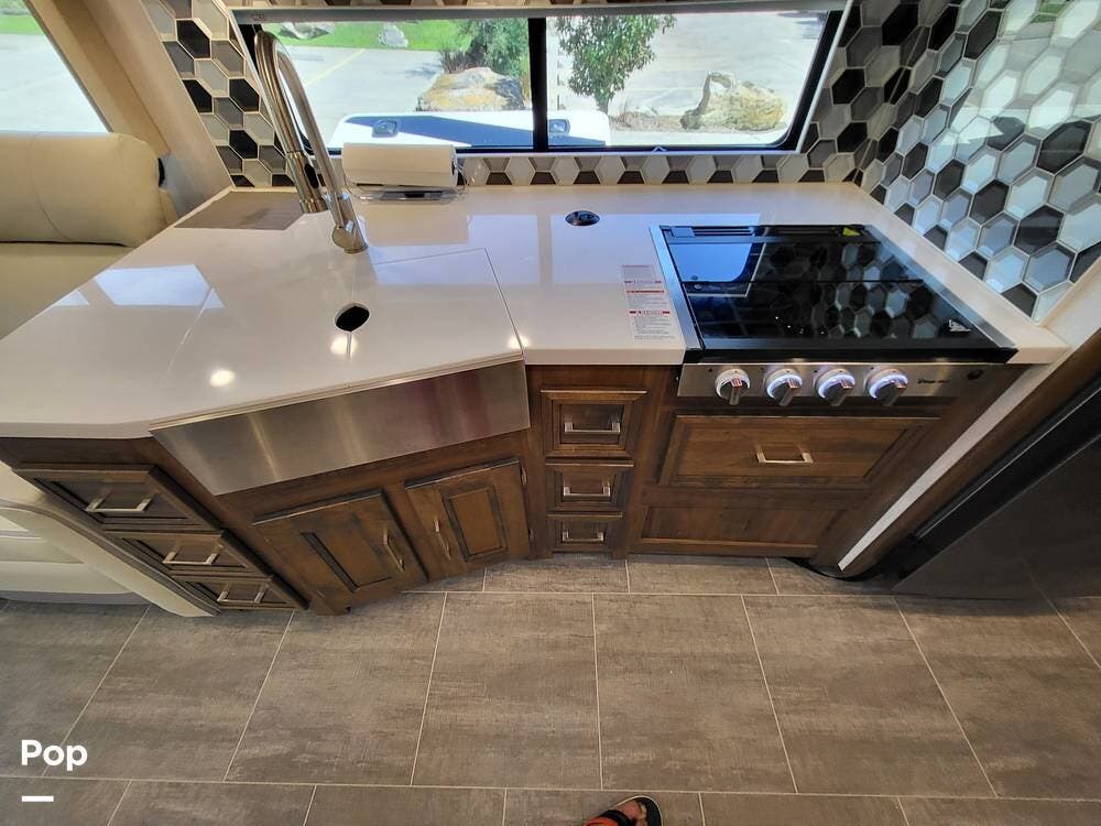 Step inside and experience a truly residential feel. Dual slide-outs expand the living space, creating an open and inviting floorplan. The well-appointed kitchen is ideal for life on the road, featuring solid-surface countertops, a three-burner cooktop, convection microwave, full-size refrigerator, and a spacious pantry--perfect for extended adventures.