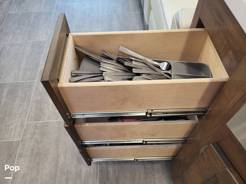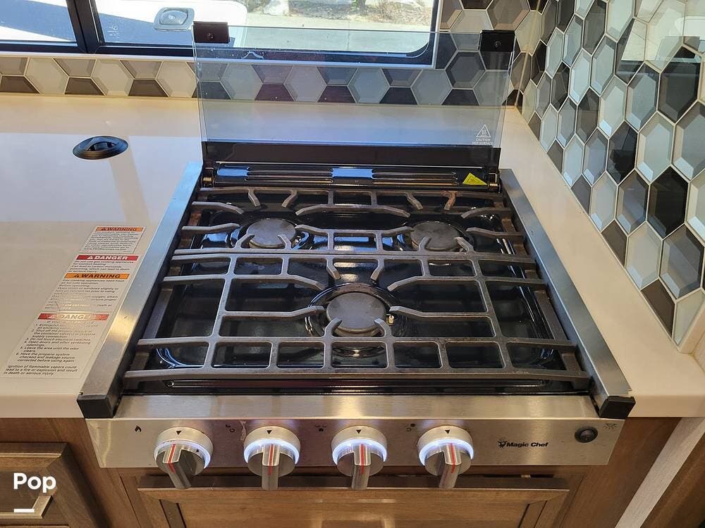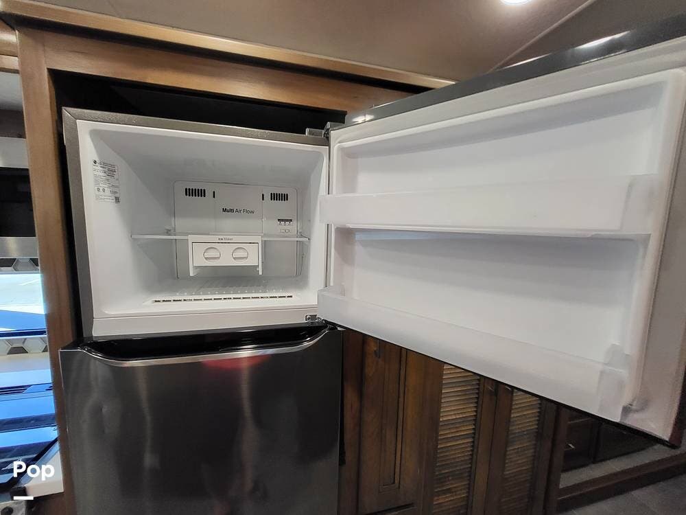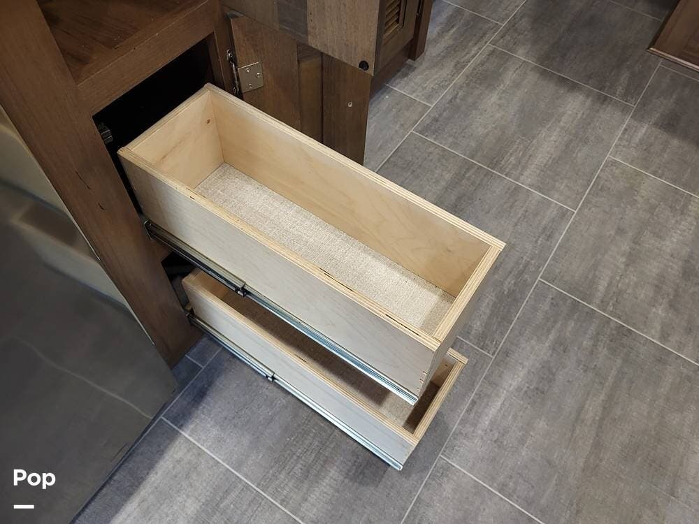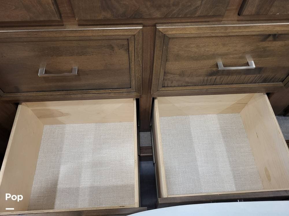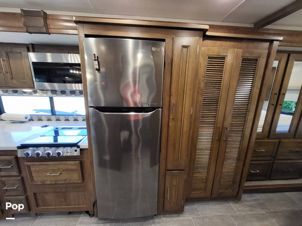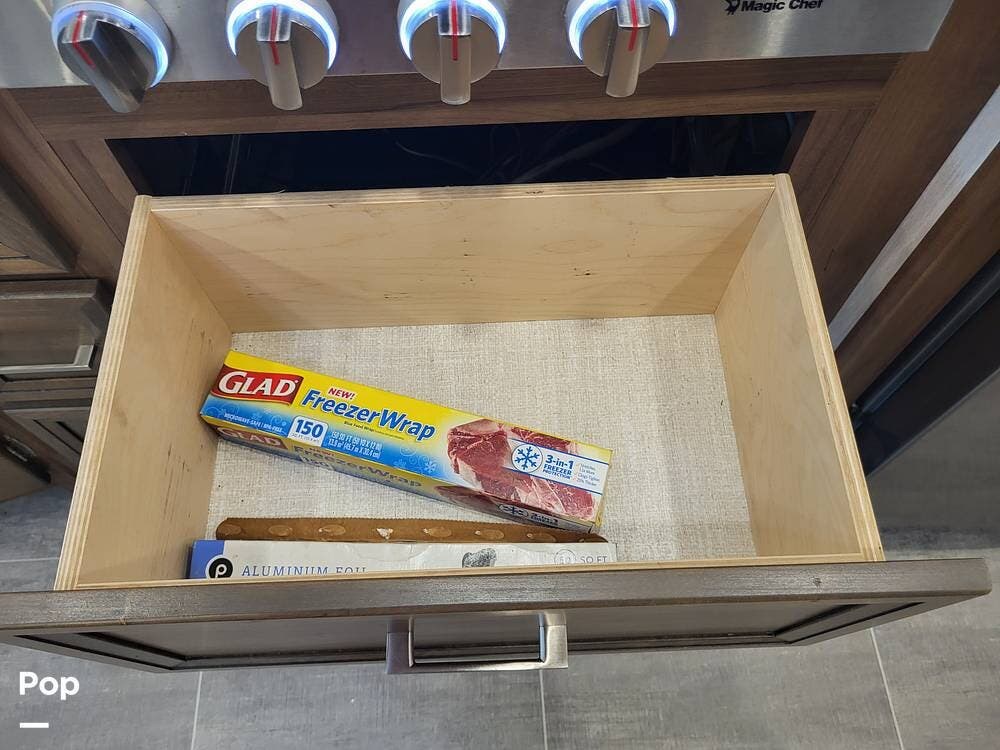 Step inside and experience a truly residential feel. Dual slide-outs expand the living space, creating an open and inviting floorplan. The well-appointed kitchen is ideal for life on the road, featuring solid-surface countertops, a three-burner cooktop, convection microwave, full-size refrigerator, and a spacious pantry--perfect for extended adventures.