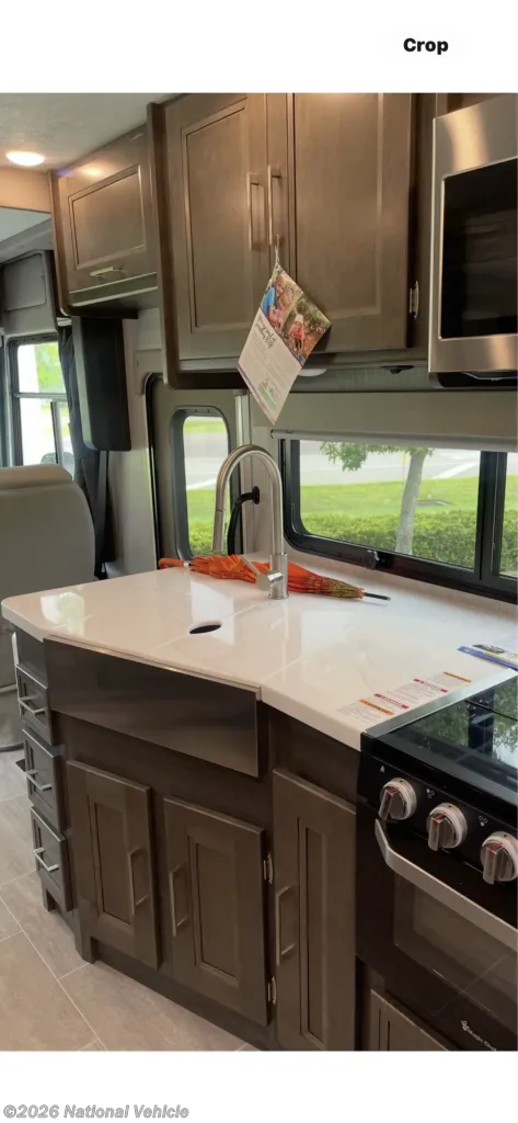 When it?s time to rest, the private rear bedroom offers a cozy queen-size bed with generous wardrobe space and easy access to the full bath. Additional sleeping options-like a drop-down overhead bunk and convertible dinett-provide flexible space for guests or family members. Thoughtful storage solutions throughout the coach help keep gear, clothing, and essentials organized on every journey.