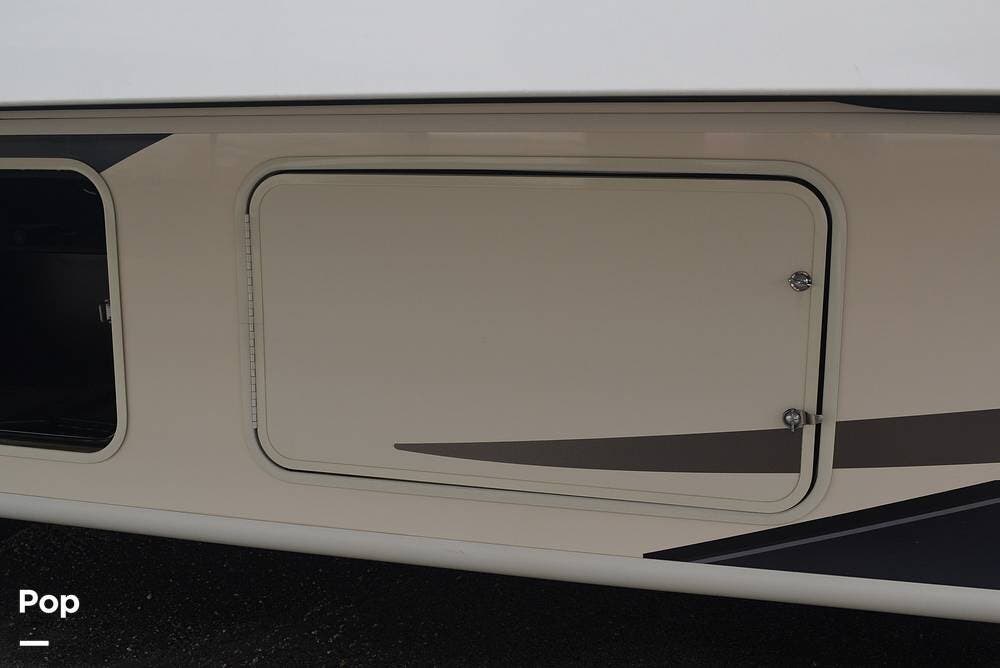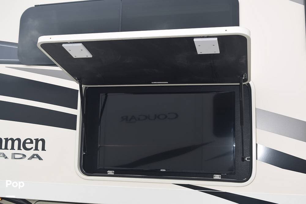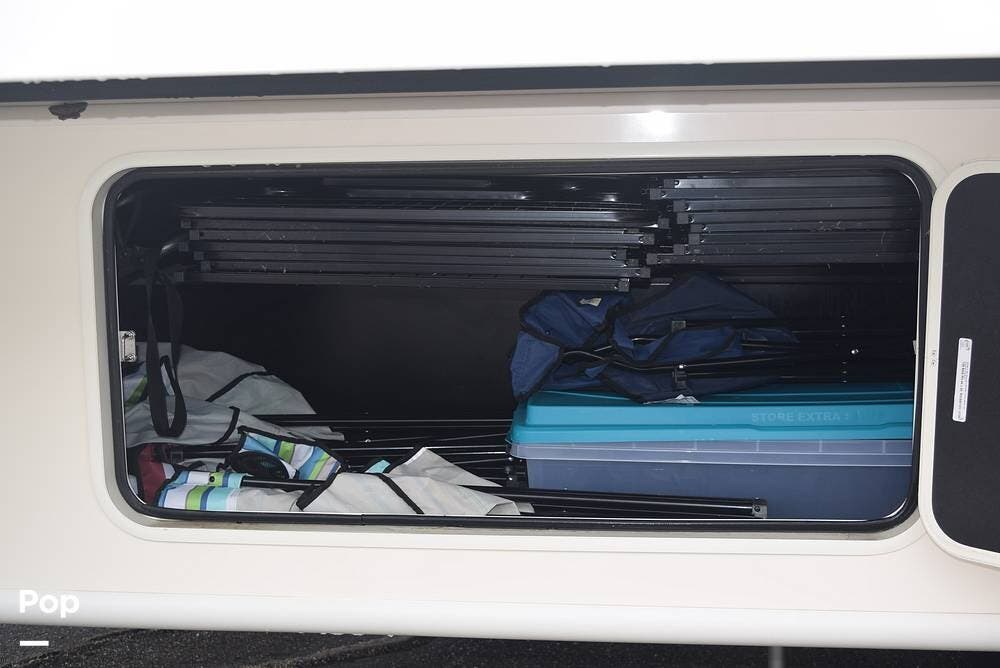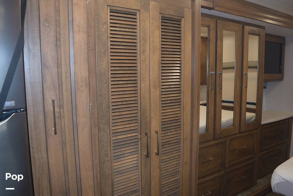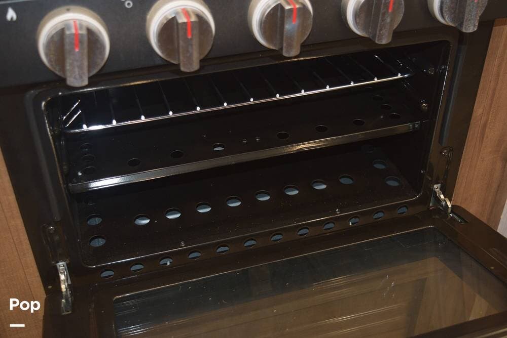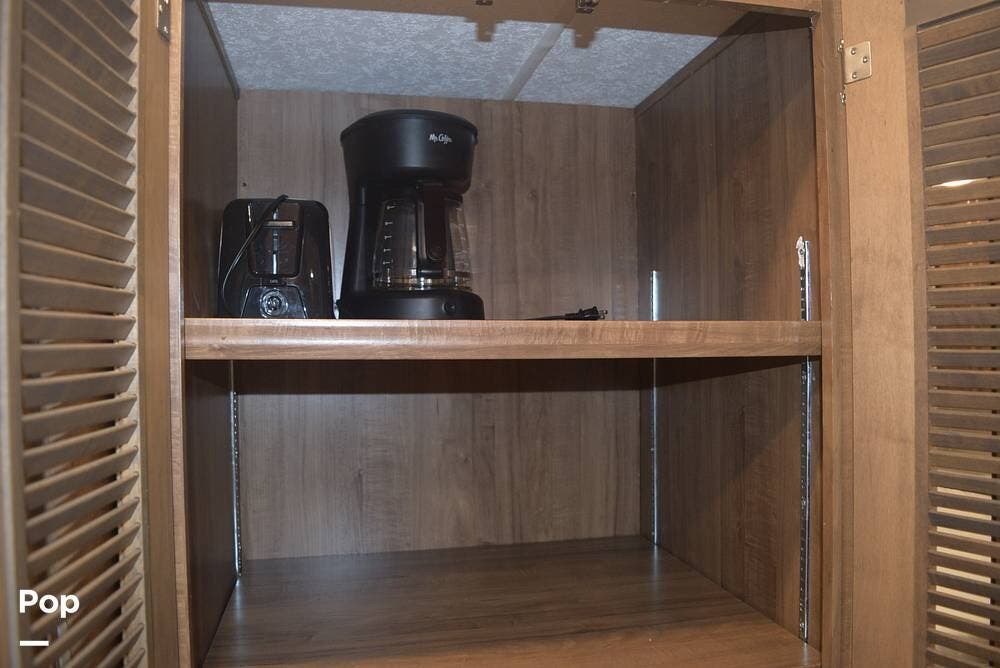 This spacious coach offers all the comforts of home, including a washer/dryer combo, perfect for long trips, and an outdoor entertainment setup with exterior TV and speakers, making it easy to relax and enjoy the great outdoors.