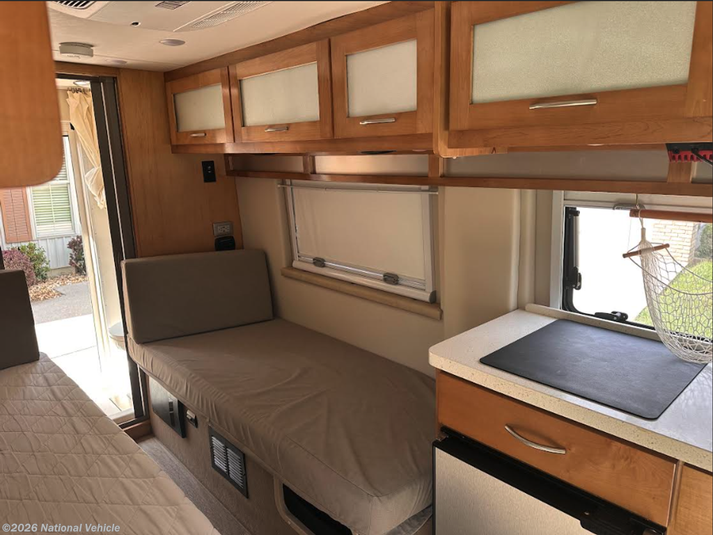 Inside, the Nova 20RB features a smart, open layout designed to maximize space and comfort. The rear sleeping area offers a comfortable bed setup with overhead cabinetry and storage, creating a cozy retreat after a day of travel. Swivel captain?s chairs up front expand the living area, allowing for additional seating and flexibility when parked.