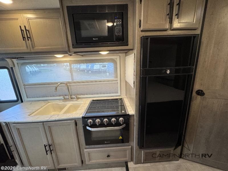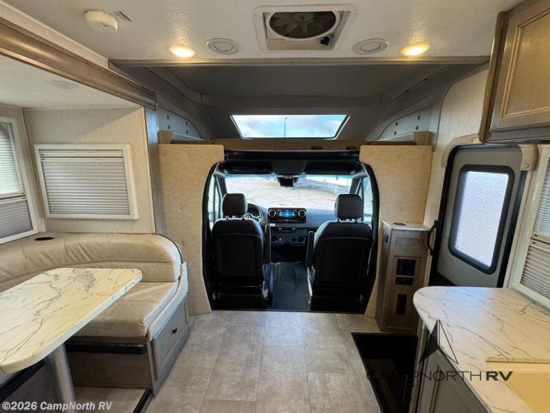 The Coachmen Prism Elite Class C diesel motorhome is stylish, reliable, economical, and prestigious! Because of the Mercedes-Benz driving features, you can travel confidently with the automatic 7G-Tronic transmission, active lane-keeping assist, active brake assist, attention assist, adaptive cruise control, MBUX multimedia system with navigation, and the intelligent voice control system. The 2" vacuum-bonded laminated sidewalls, Lamilux 4000 color-infused fiberglass, Azdel SuperLite substrate with aluminum framing, and CrossFlex roof membrane are what form the base of the dependable Prism Elite. You will also find a molded fiberglass front cap with window, curved wing walls, and integrated fiberglass running boards, and the Prism Elite also has some great technological features, like the Wi-Fi Ranger Sky4, Firefly multiplex system, and Truma Aqua Go On Demand water heater.