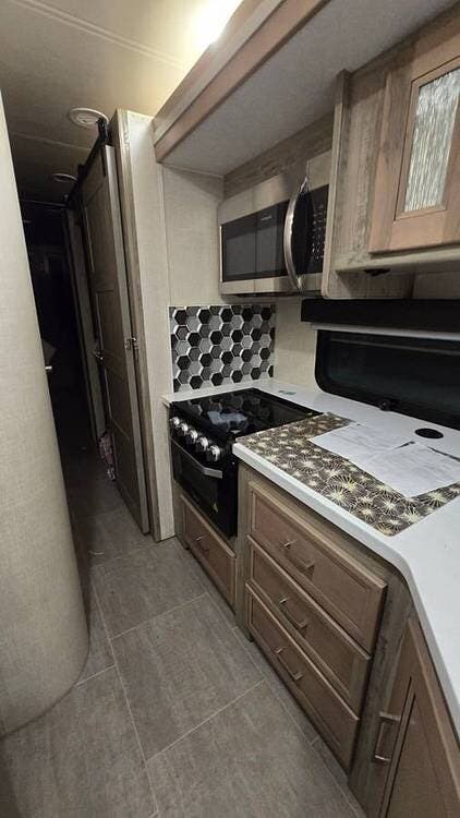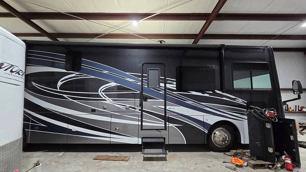 The unit is fully self-sufficient, equipped with a generator, air conditioning, and ample storage space to meet all your needs for an extended stay with family at your favorite location.