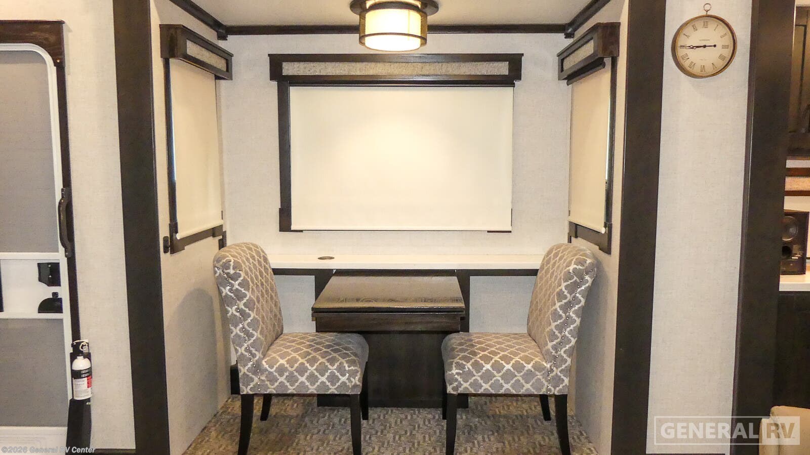 Redwood RV fifth wheel 4001LK highlights: Rear Kitchen Four Slides Theater Seats Bath and a Half Master Suite Ceiling Fan One step inside this fifth wheel and you'll see why it's an award-winning most-popular unit! You'll love the rear kitchen that includes ample counter space and a waterfall edge countertop. Head to the main living area where you can enjoy some family time on the theater seats, and the dinette with chairs will be the perfect place for a game of cards. The half bath is right off of this room for convenience, and your guests or kids can convert the tri-fold sofa into a bed for sleeping space at night. You will love the master bedroom with a king bed slide out, a dresser with a flip-up lid, plus a 39" LED HDTV. The front full bath is spacious, and it includes a large wardrobe where you can even add an optional washer and dryer if you choose! You are going to wish you found the Redwood fifth wheels sooner! With all of the residential comfort and modern luxury, you will be impressed. The Williamsburg Furniture Collection includes two premium dinette chairs, a buffet-style adjustable dinette with leaf extension, a residential-style sofa, and powered theater seating. The luxury further extends to the bedroom where you will find a gel-foam king bed with tilt and C-PAP shelves on both sides of the bed. The straight roof line gives a luxury profile, and there are preparations for a wireless backup camera as well as solar power. The seamless residential insulated heat ducts will efficiently heat your unit, and there is an exterior radio in the fully finished and heated pass-through with slat board storage.