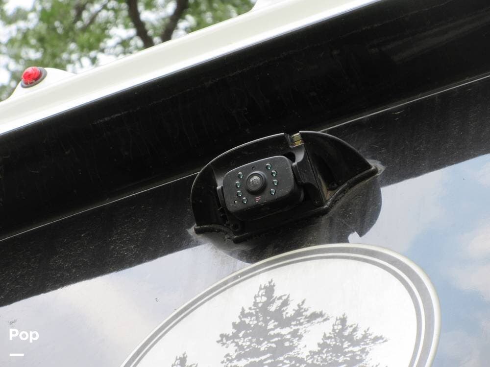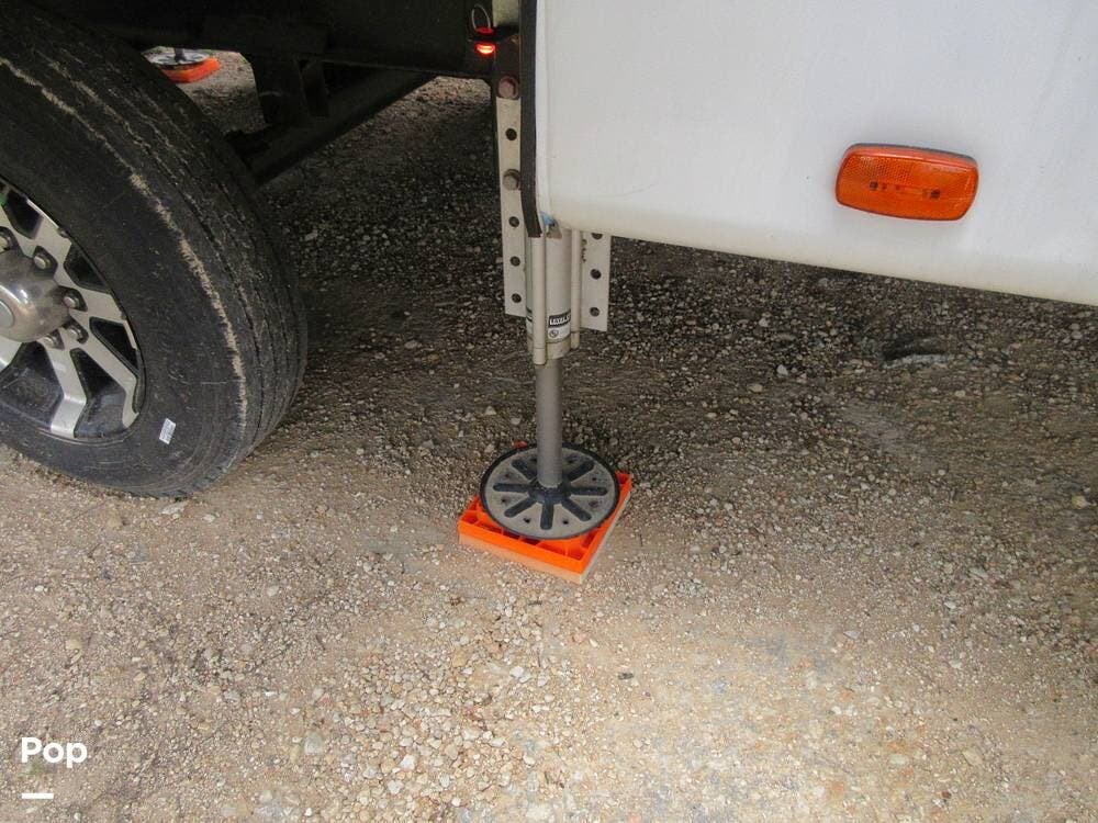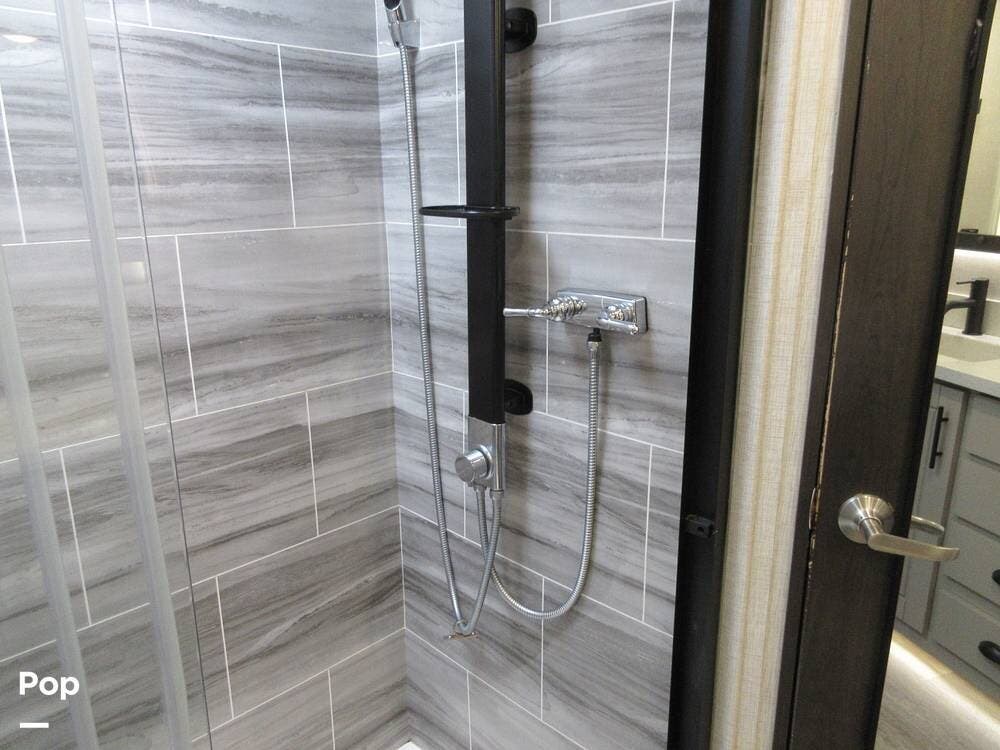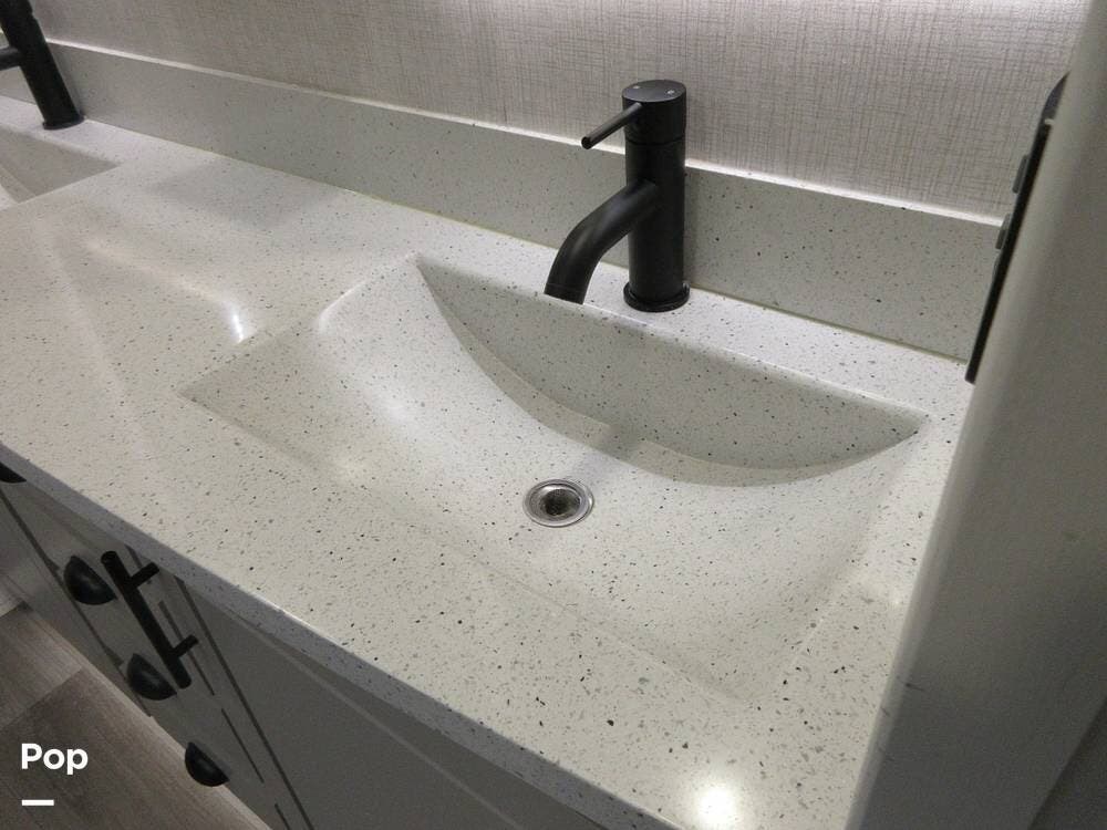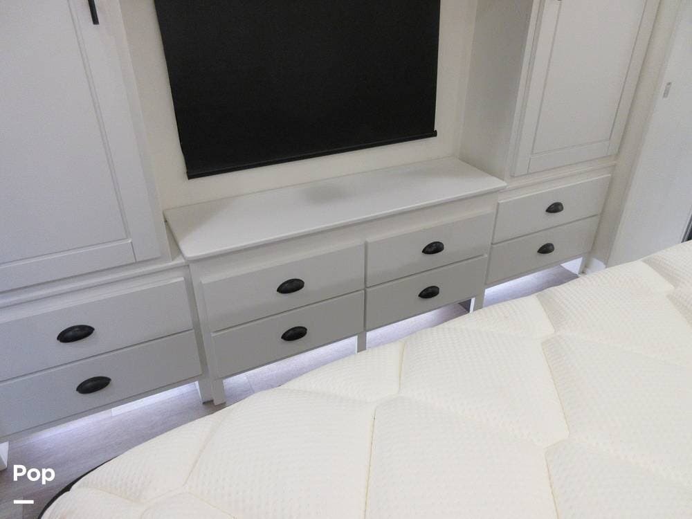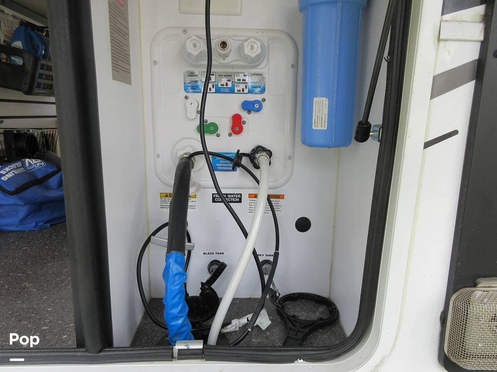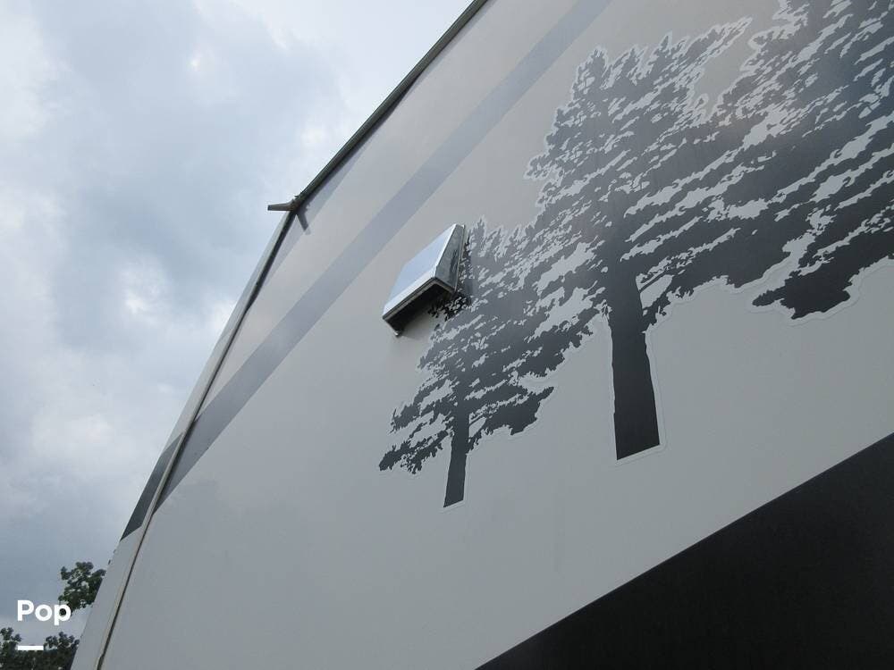 This Redwood model has hydraulic leveling, side and backup cameras, and will perform well in any RV park with 50 amp service. If you wander off the grid, this RV has you covered with a 62-gallon fresh water tank, an 82-gallon gray tank, a 44-gallon waste tank, and two 30-lb propane tanks. This RV also has a Zamp solar connection if you want to add a panel later.