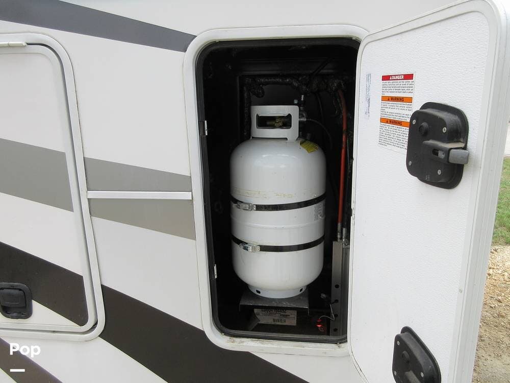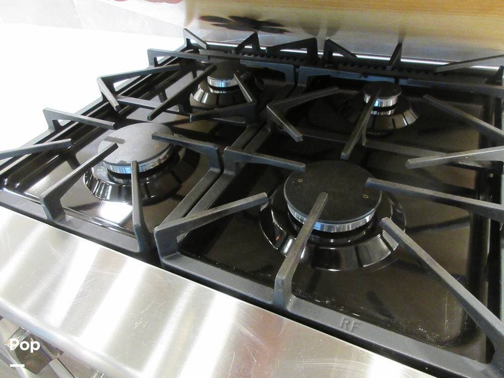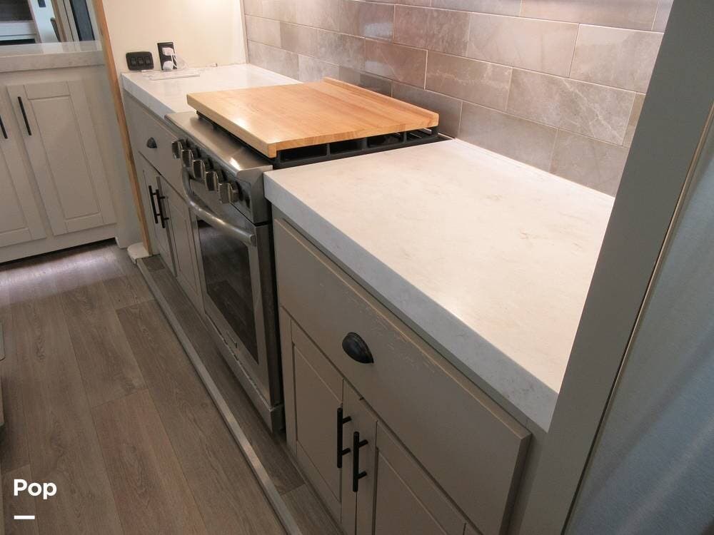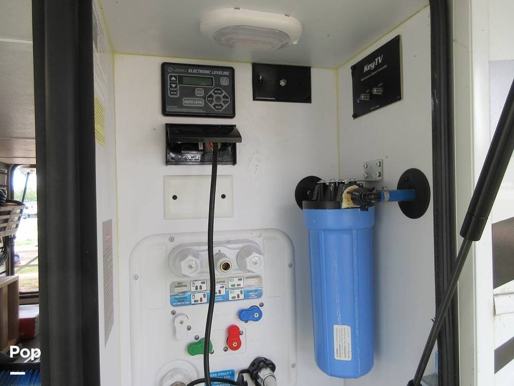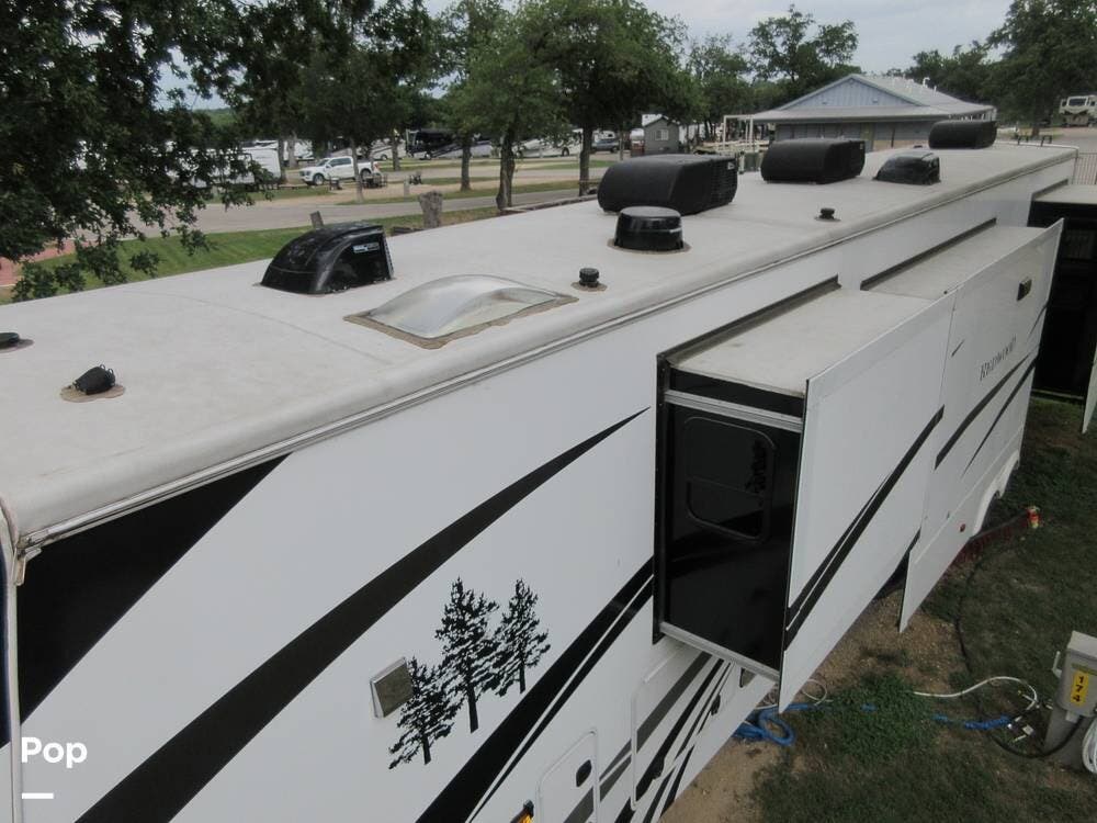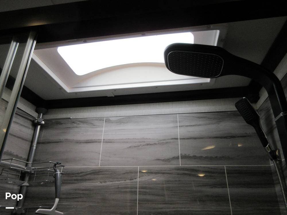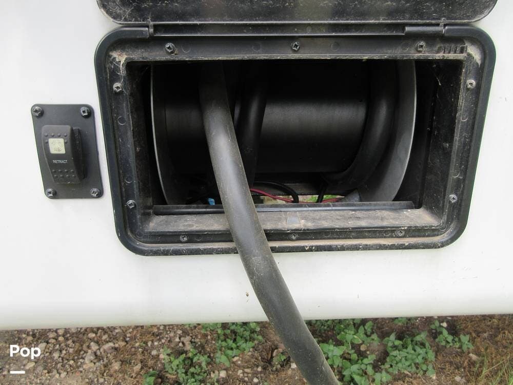 This Redwood model has hydraulic leveling, side and backup cameras, and will perform well in any RV park with 50 amp service. If you wander off the grid, this RV has you covered with a 62-gallon fresh water tank, an 82-gallon gray tank, a 44-gallon waste tank, and two 30-lb propane tanks. This RV also has a Zamp solar connection if you want to add a panel later.