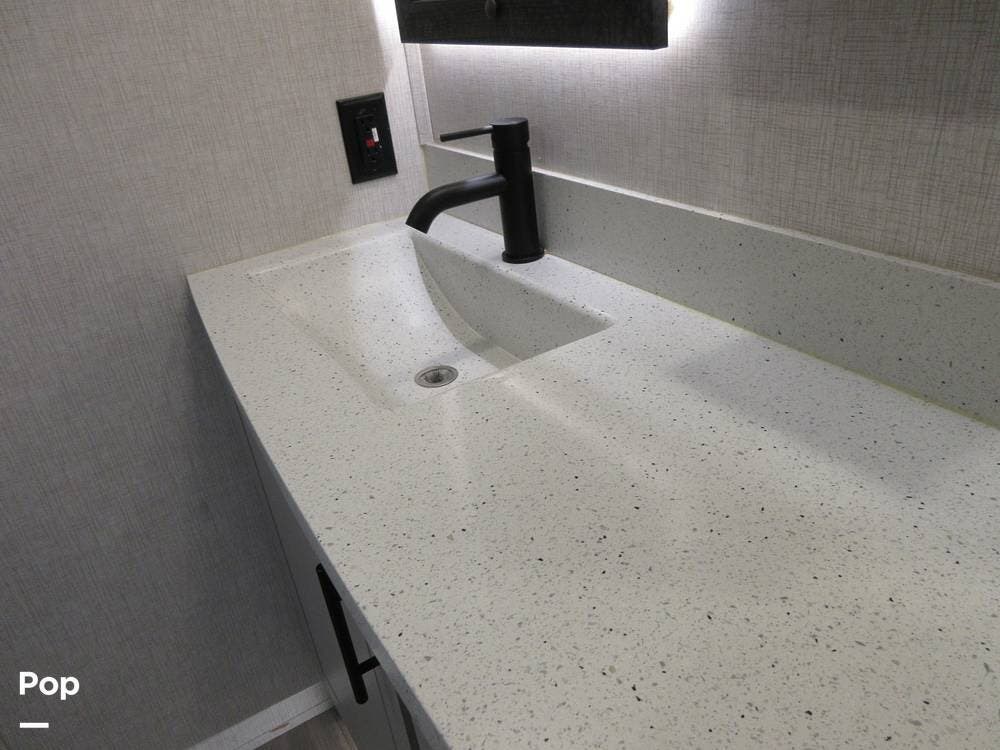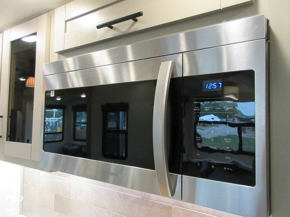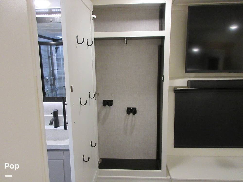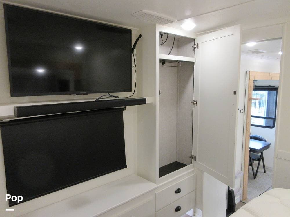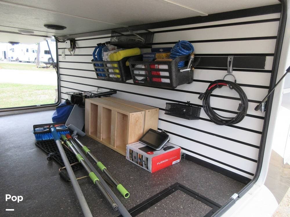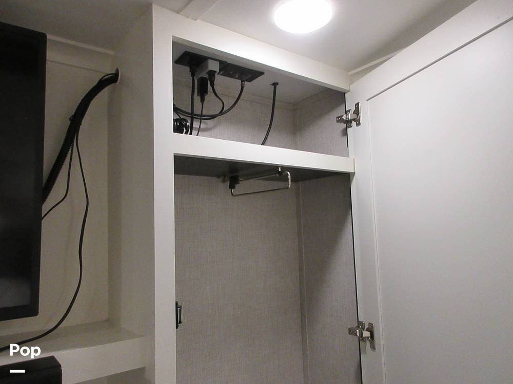 If you like to spend time outdoors, click a button to unfurl the automatic awning in seconds. Bring all your chairs and patio accessories for your guests. The large pass-through basement has plenty of room for storage. Be sure to play your favorite tunes on the outdoor speakers.