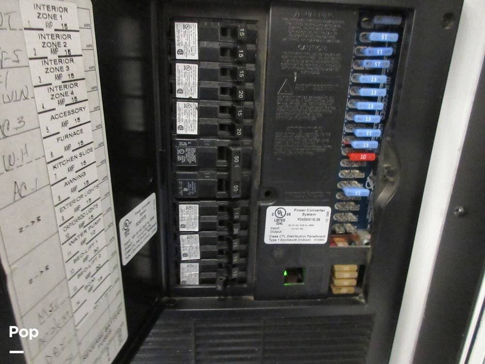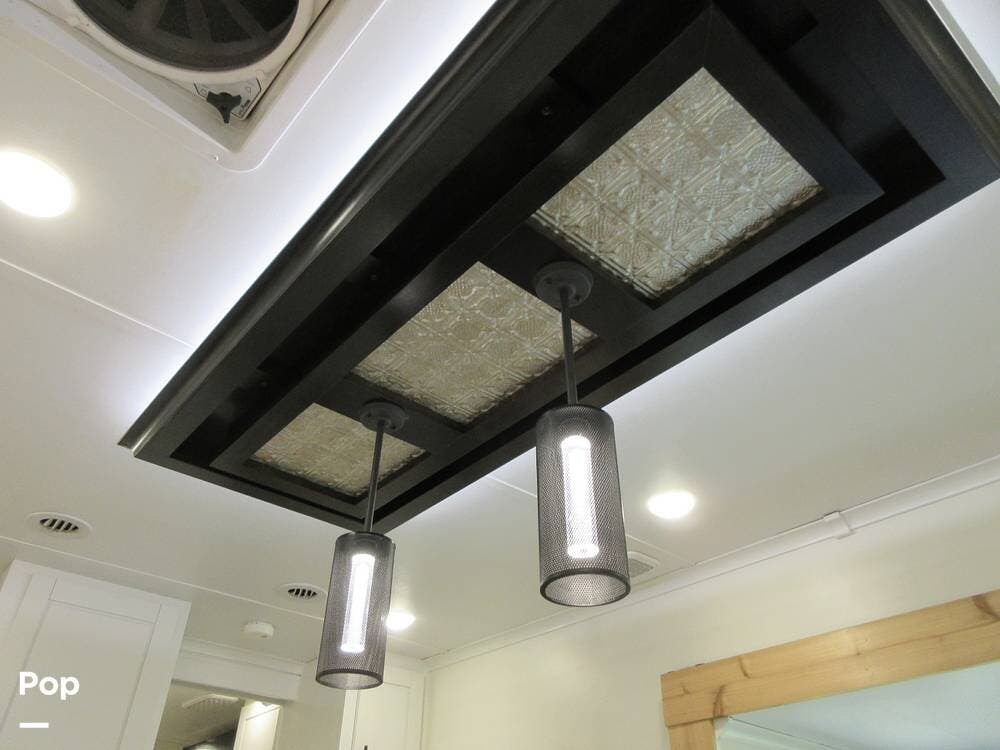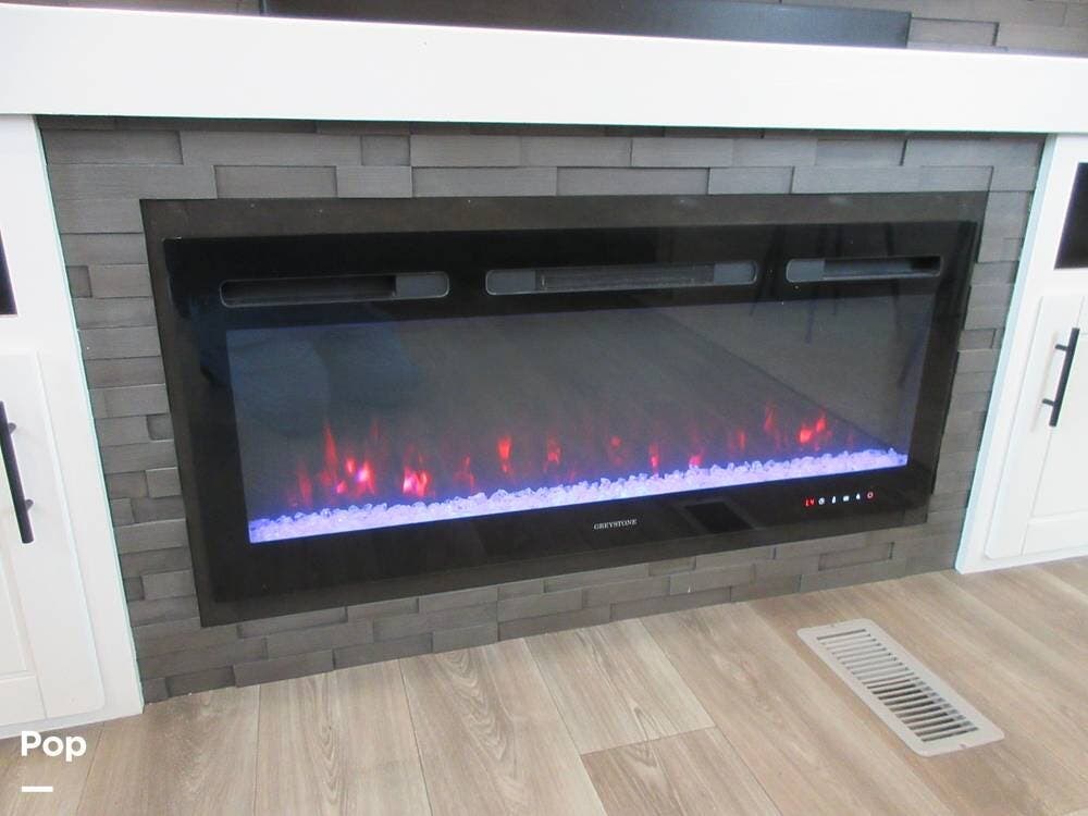 Are you concerned about the travel climate? This well-insulated RV features holding tank heat pads and enclosed and heated water lines. It will keep you cozy with a 35K BTU furnace and a fireplace. If the sun overheats, you can use the three air conditioners and the ceiling fan to keep the RV cool.