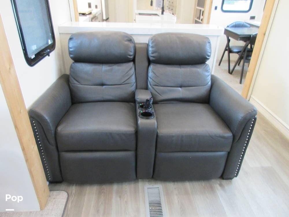 And when it's time to call it a night, you can relax in the king-size bed (with electric tilt) on an upgraded Wilderness mattress. Your guests can also find a comfortable spot on the pull-out sofa in the living area.