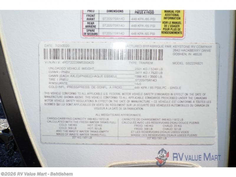 Request More Info on this 2021 CrossRoads Sunset Trail SS222RB Offered for sale by RV Value Mart - Behtlehem