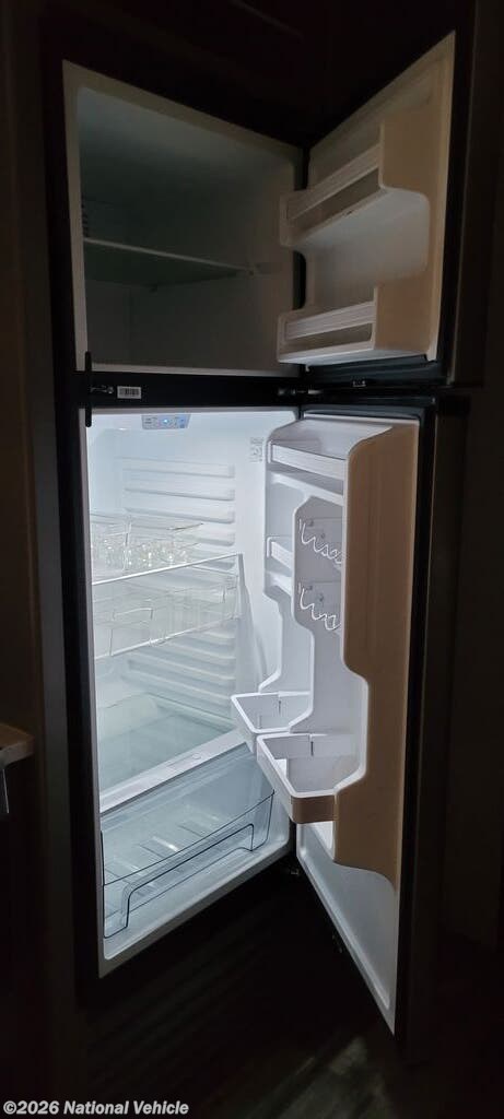 Inside, the Volante 270BH offers a bright, open living area thanks to its large slide-out and thoughtful layout. The main living space features a comfortable sofa, a roomy dinette, and a well-positioned entertainment area?ideal for relaxing after a day outdoors. The residential-style kitchen is fully equipped with stainless-steel appliances, a generous refrigerator, three-burner cooktop, microwave, and plenty of countertop and cabinet storage, making meal prep on the road truly convenient.