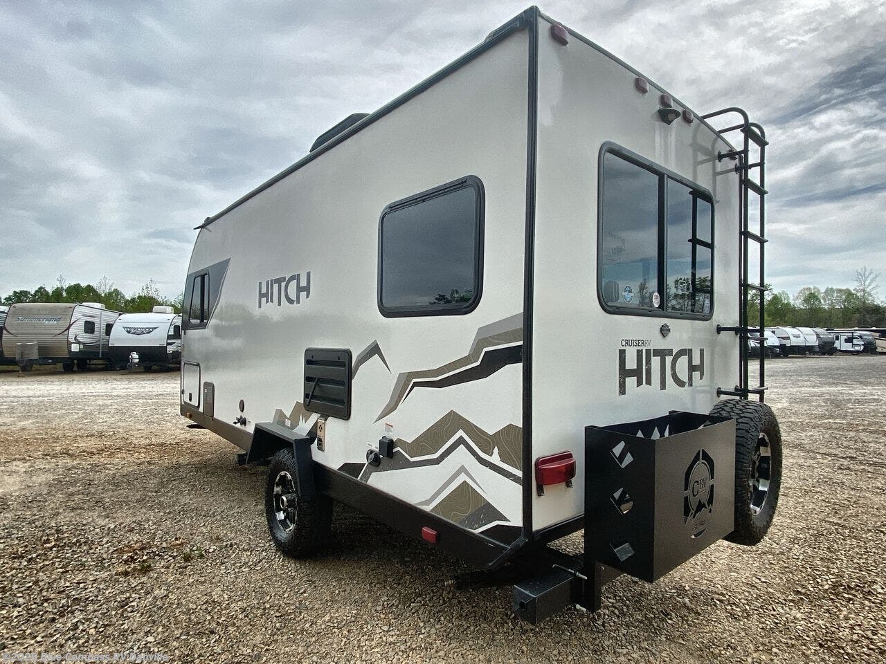 Your camping experience is about to change! The Cruiser Hitch travel trailer is an ultra-lite trailer that was built for all types of terrain. Now you can finally go on those great excursions without anything holding you back. The 15" all-terrain tires will take you just about anywhere, and the four-corner jacks, torsion axle, welded bumper, and power tongue jack are all essential parts of the Hitch. With the 12V tank heat pads, hybrid entry step, matching spare tire, and exterior speakers, your Hitch is just waiting to be taken out on another adventure!