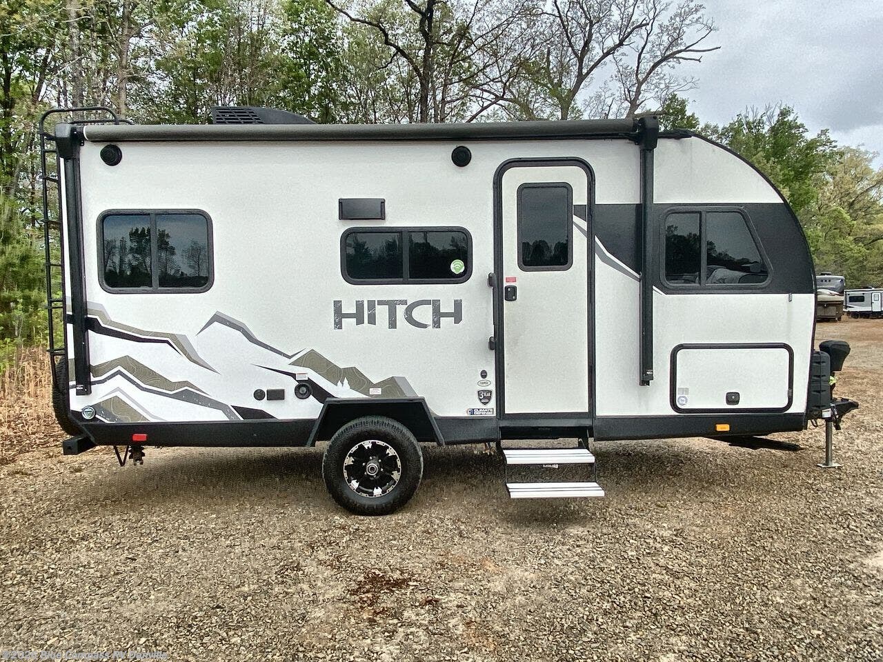 No matter what kind of journeys you like to take, this Hitch travel trailer will be there right alongside you! Because of its nimbleness on the road, you can do all sorts of activities. This trailer has plenty of storage space with the exterior pass-through storage compartment, the interior pantry/wardrobe, the overhead cabinets, and the drawers under the bed. You'll be able to easily get a full batch of pancakes prepared on the recessed gas cooktop, and the refrigerator will keep your juice and yogurt chilled. If you'd rather spend your time outside, then you'll appreciate the extra shade that comes from the power awning with LED lights.
