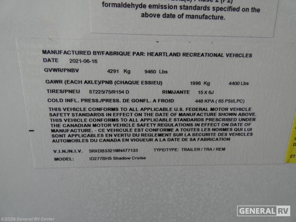 2021 Cruiser RV Shadow Cruiser 277BHS Specifications