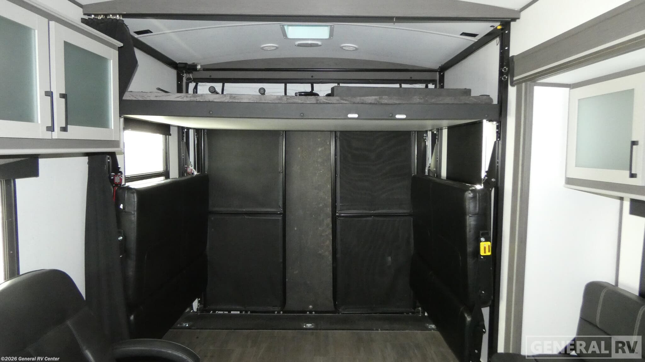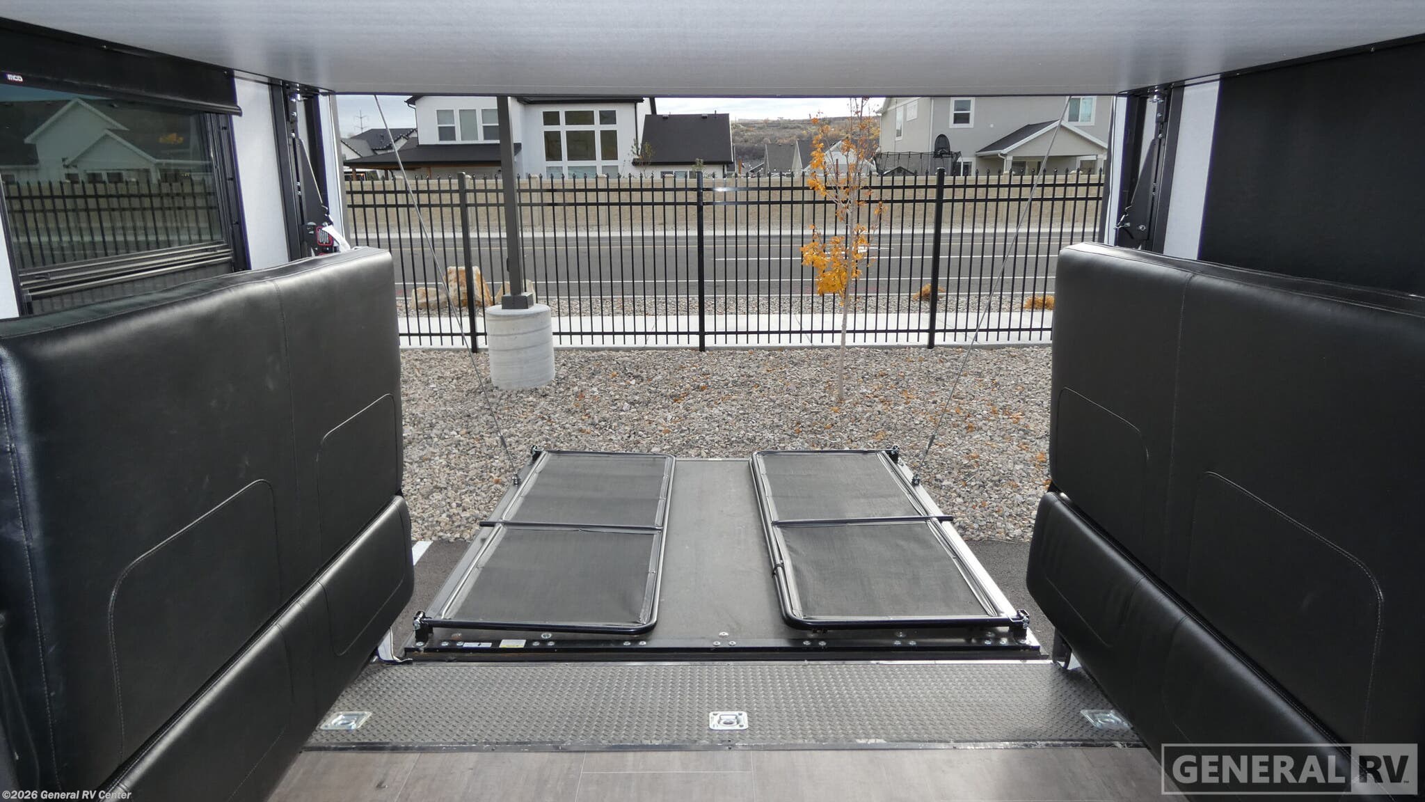 Cruiser Stryker toy hauler ST-3116 highlights: King Sliding Bed Large Slide 8-Cu. Ft. Refrigerator 16' Garage Extended Season Package You won't believe how exceptional every getaway will feel in this Stryker toy hauler travel trailer! With its private master suite that has a king sliding bed, you will sleep peacefully each and every night, and your guests will sleep comfortably on the electric queen-size bed and three sofas. You will be able to create a hearty breakfast that will sustain you throughout all of your outdoor adventures thanks to the three-burner range top in the kitchen, and the 8-cubic foot double-door refrigerator will let you store any leftovers for an afternoon snack later on. Each one of these Cruiser Stryker toy hauler travel trailers was built with you in mind to give you a functional and innovative design! With a Max Foundation wide-body construction, maximum storage, and an Extended Season package with radiant foil and 2" heat duct in an enclosed underbelly, you can bring along your four-seat side-by-side anytime of the year. They are designed by the off-road enthusiasts who understand what you need while playing in the dunes with heavy-duty axles that have easy-lube hubs and self-adjusting brakes and Azdel composite laminated sidewalls with five-sided aluminum framing. A couple other top-five interior features you will enjoy include a patent-pending king bed slide system, solar and Wi-Fi prep, double-down dual-ducted A/C, and a high-BTU ducted furnace, so you will feel just right in any season!