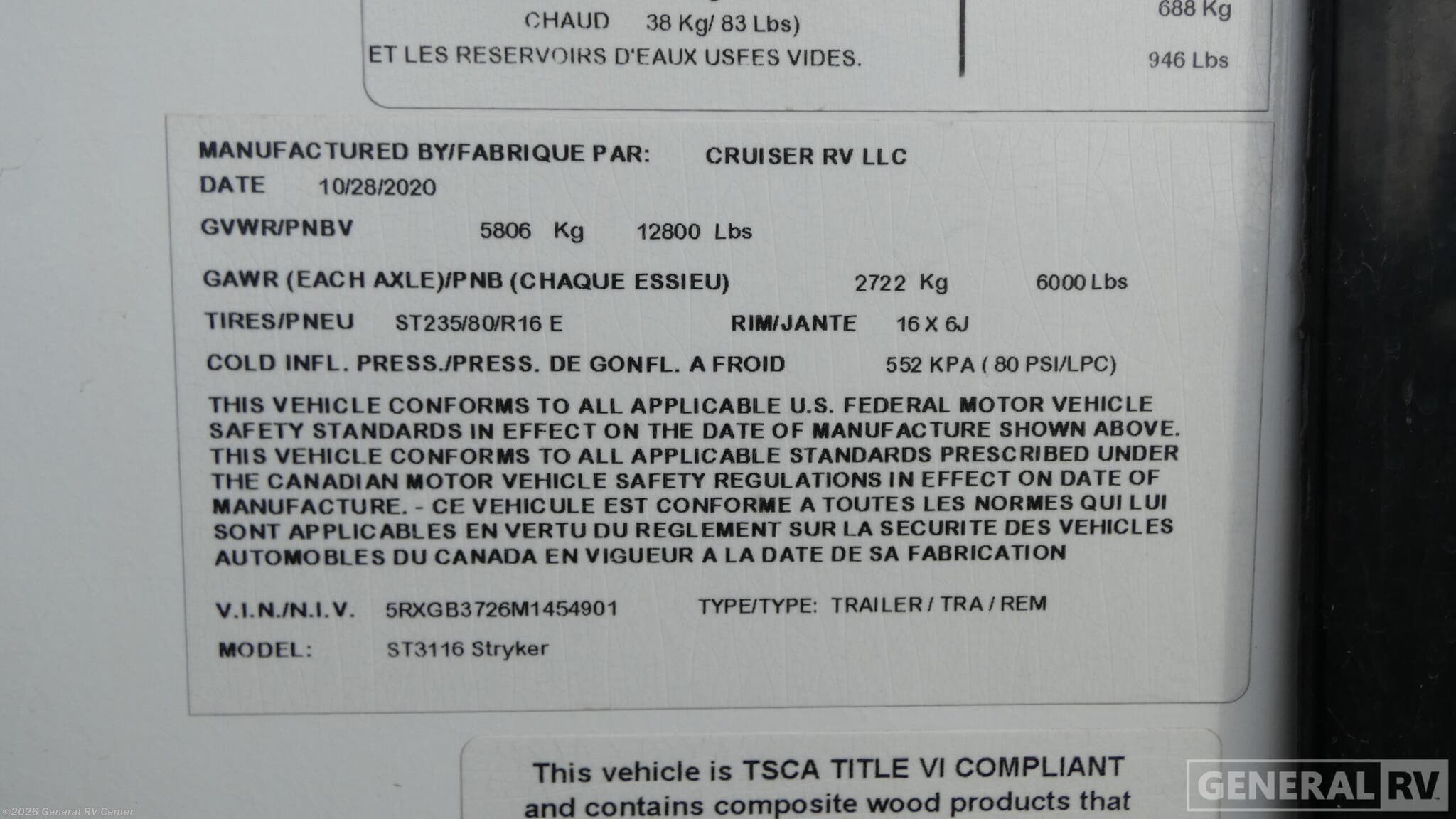 Request More Info on this 2021 Cruiser RV Stryker ST3116 Offered for sale by General RV Center