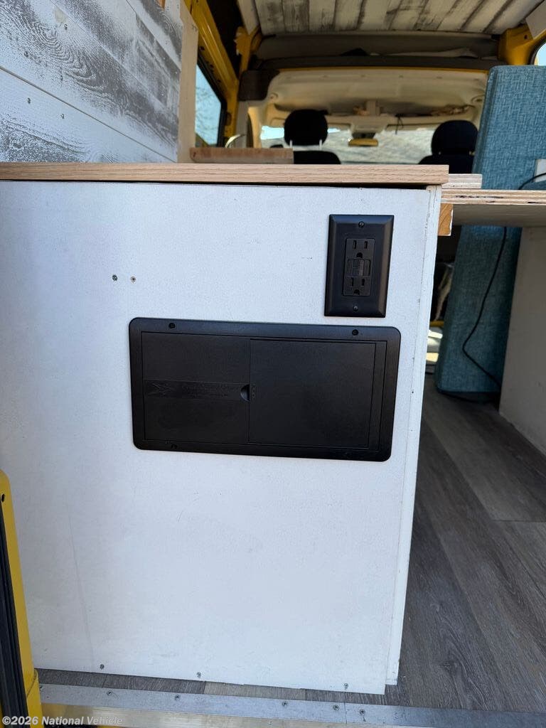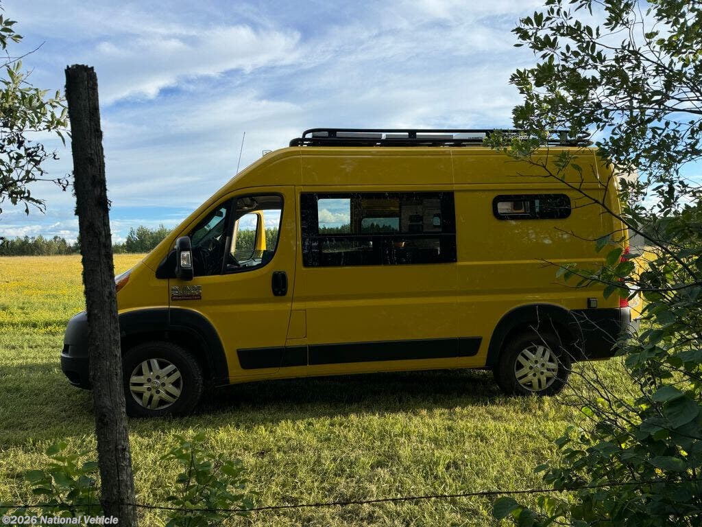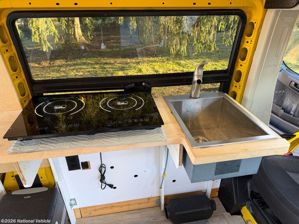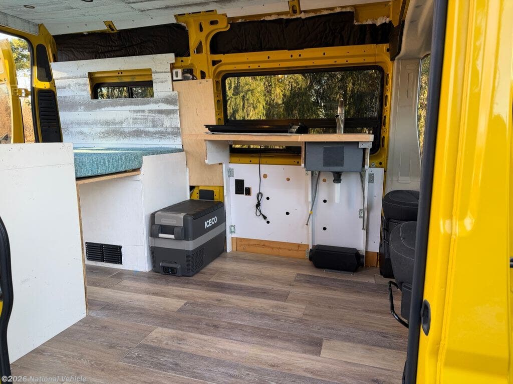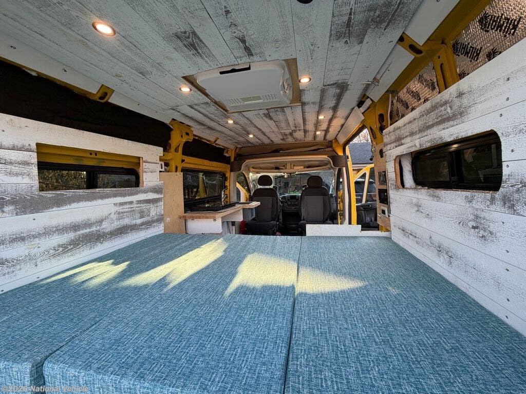 2021 Dodge ProMaster in bright yellow, partially converted and ready for someone to finish into their ideal camper van. Many high-quality components have already been professionally installed, saving you significant time and expense.