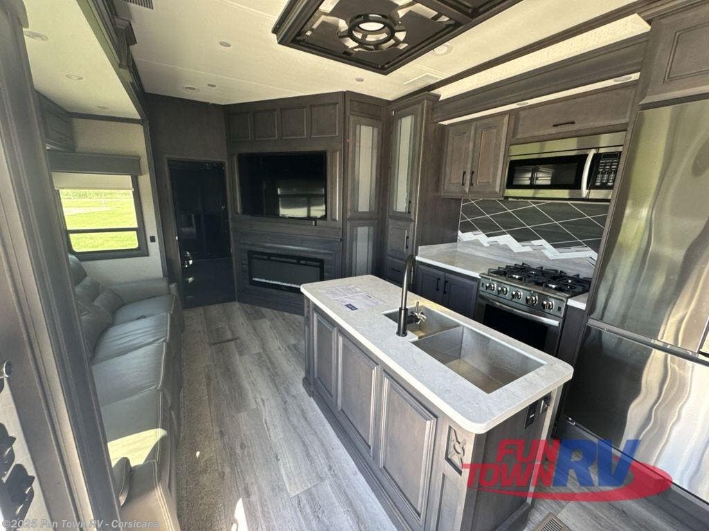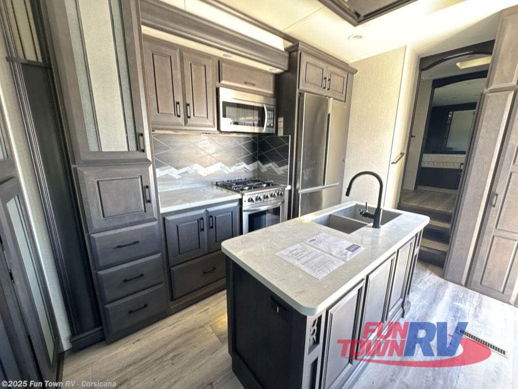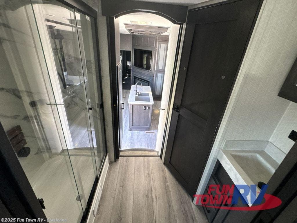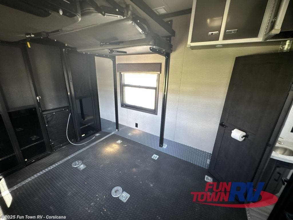 One of the best things about this Full House fifth wheel toy hauler is the fact that it comes with both a full and half bathroom! You'll also find extra convenience in the kitchen with the island that delivers some extra space for meal prep, and additionally, the opposing slides will provide more interior living space in this area as well. Throughout this entire unit, you will find three LED TVs which means that it will be super easy to stay entertained even if the weather outside isn't cooperating, and there is superb storage with the walk-in closet and vanity slide in the front bedroom.