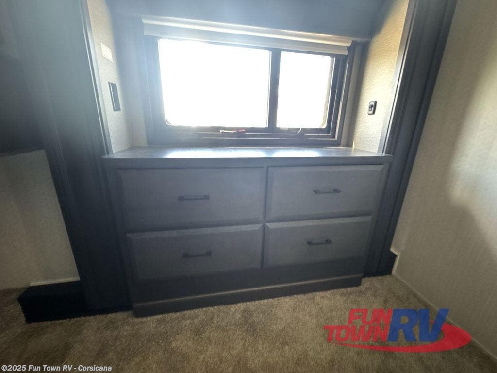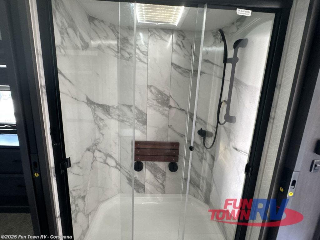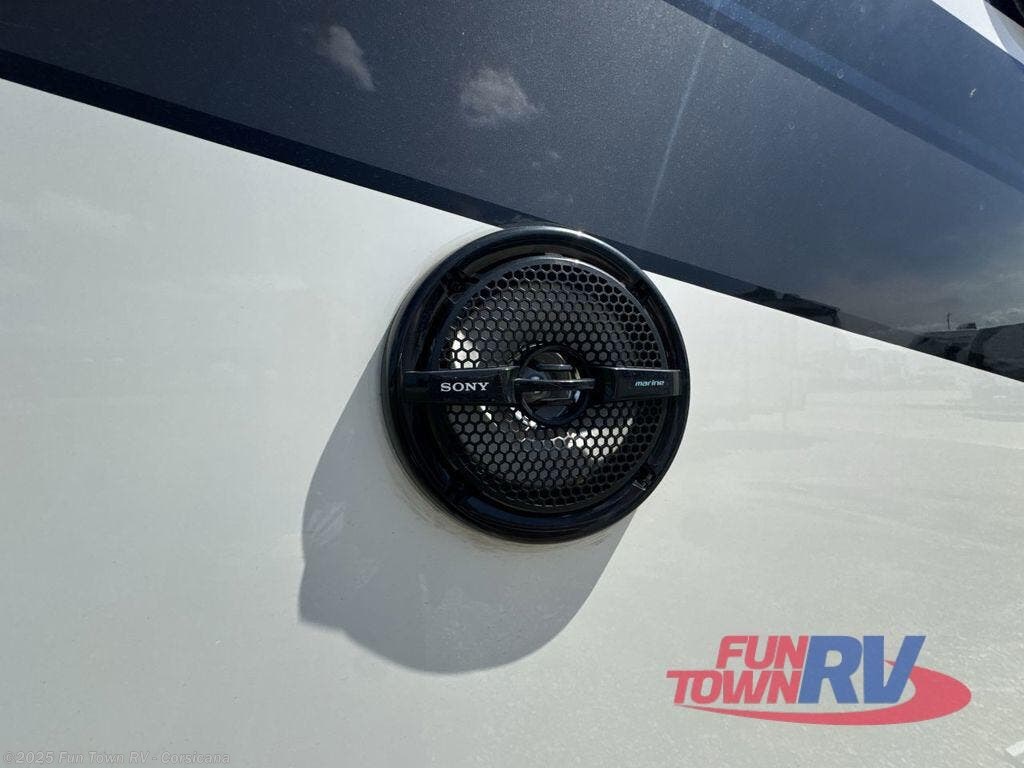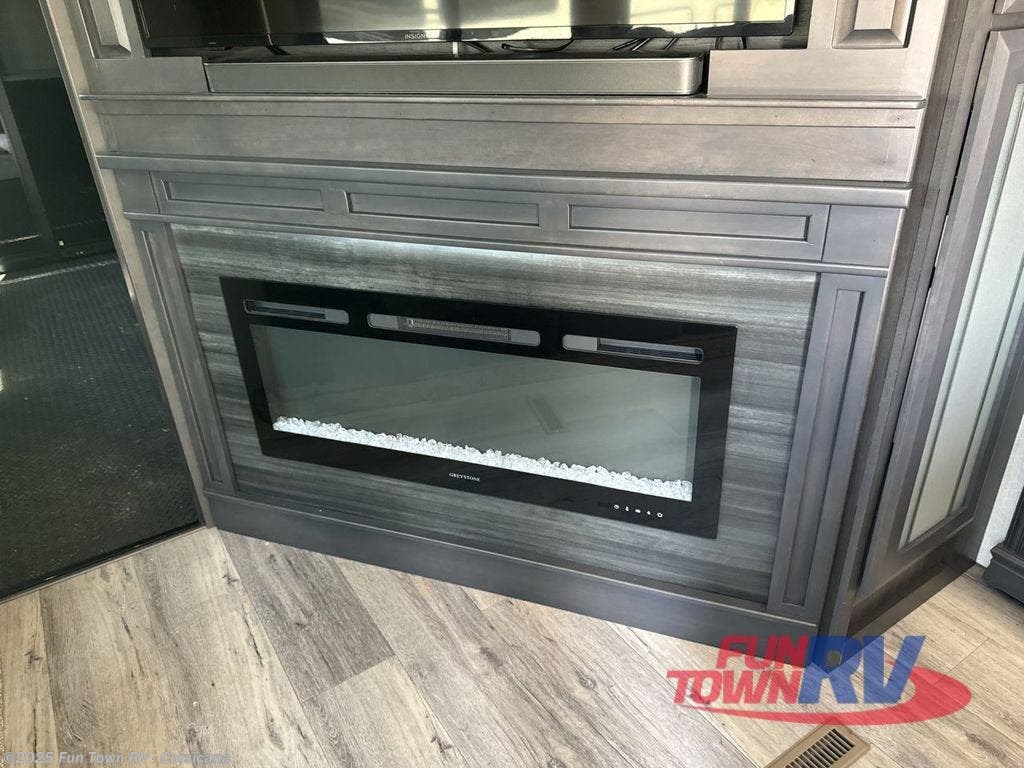One of the best things about this Full House fifth wheel toy hauler is the fact that it comes with both a full and half bathroom! You'll also find extra convenience in the kitchen with the island that delivers some extra space for meal prep, and additionally, the opposing slides will provide more interior living space in this area as well. Throughout this entire unit, you will find three LED TVs which means that it will be super easy to stay entertained even if the weather outside isn't cooperating, and there is superb storage with the walk-in closet and vanity slide in the front bedroom.