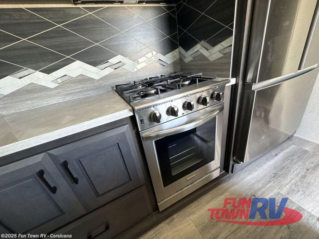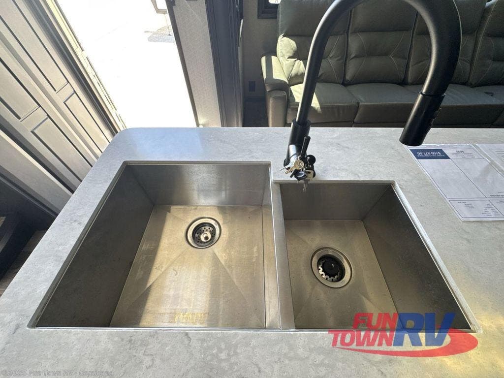 You will find full-time living at its best in the DRV Luxury Suites Full House fifth wheel toy hauler! This luxurious brand features several items that most toy haulers tend to ignore when it comes to residential living, but the Full House toy hauler truly is a full house on wheels! The garage features industrial metal cabinetry, LED lighting, a touchscreen entertainment system, a 50" LED HDTV, and dual 30-gallon fuel tanks. You can even choose to amp up the garage to the next level by adding the optional patio and the electric drop-down bed. A six-point hydraulic leveling system keeps your Full House in place, and the Onan gasoline generator supplies power to your unit. The interior is rather glamorous with its hand-laid vinyl floor tile, its crown molding, its plush residential high-durability carpet, and its ceiling fan, and the residential kitchen is undoubtedly going to be an essential feature for full-time living.