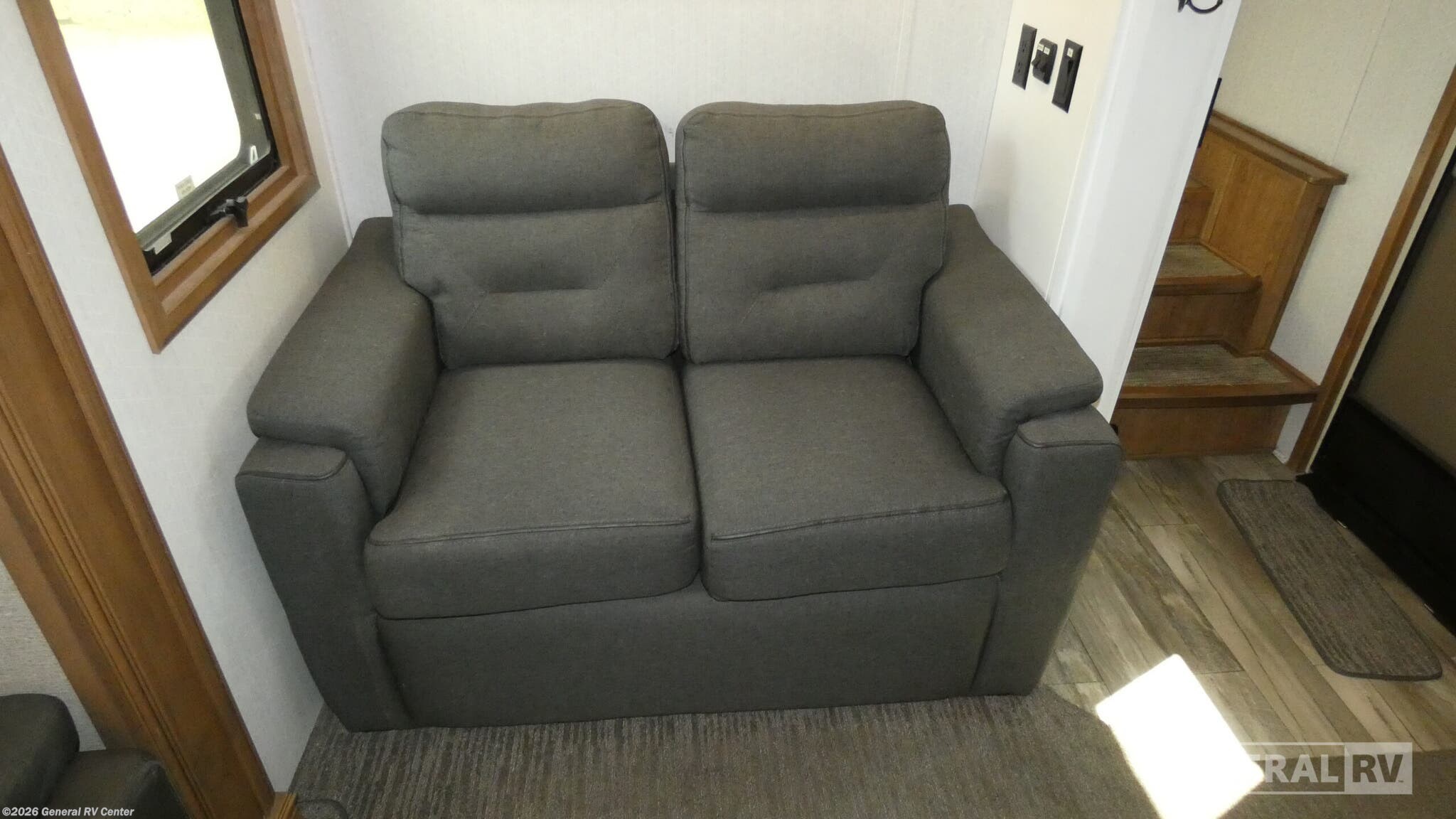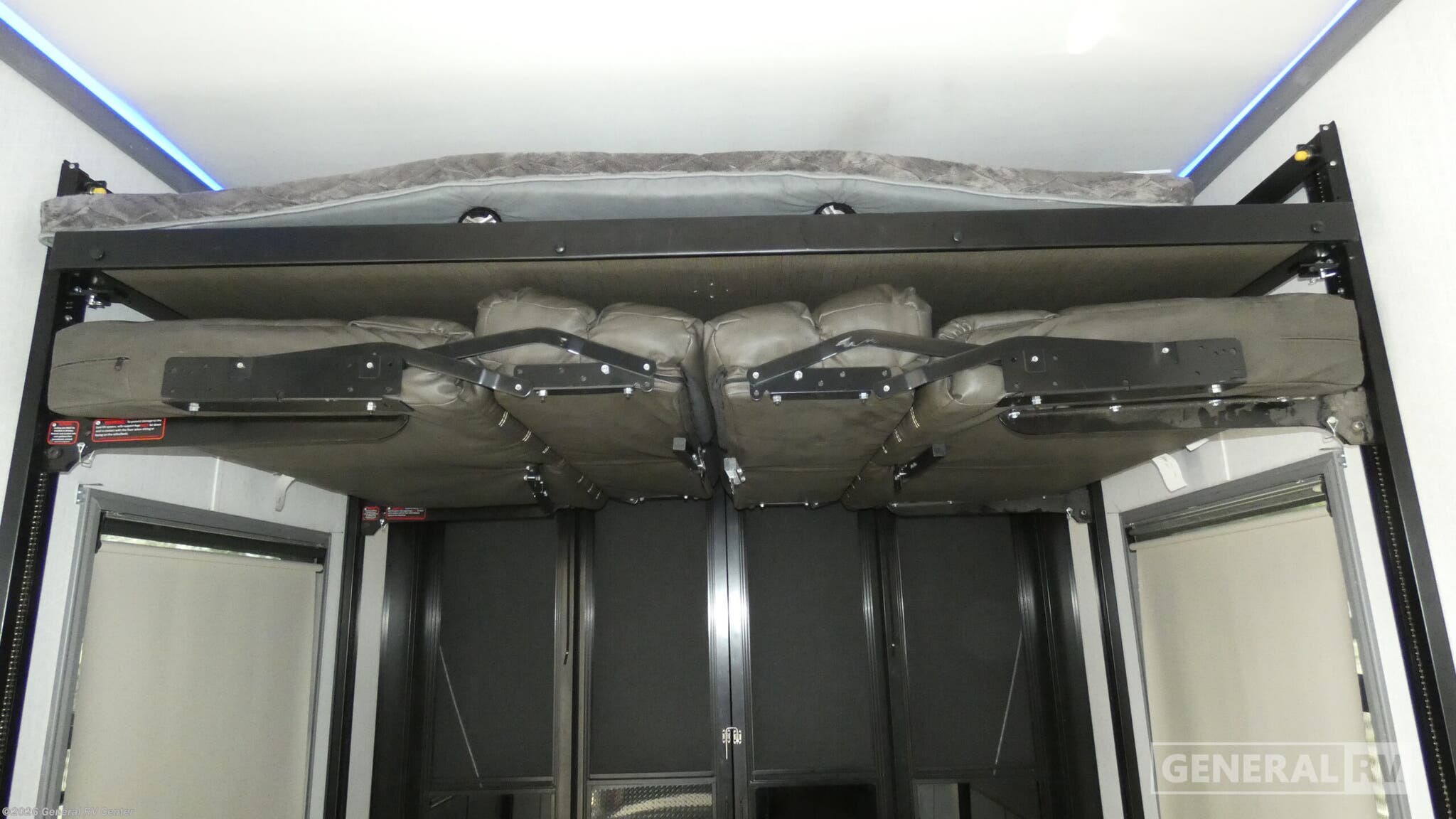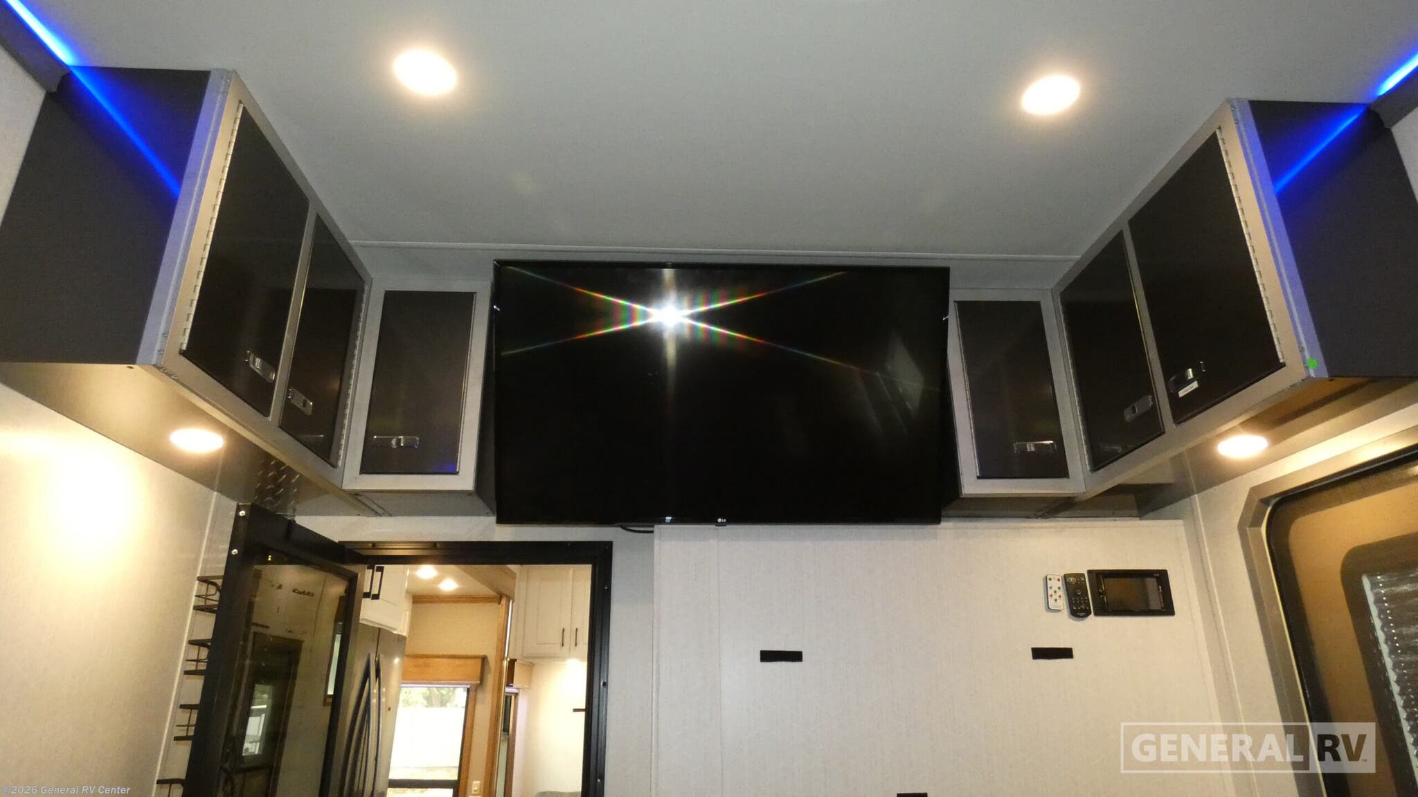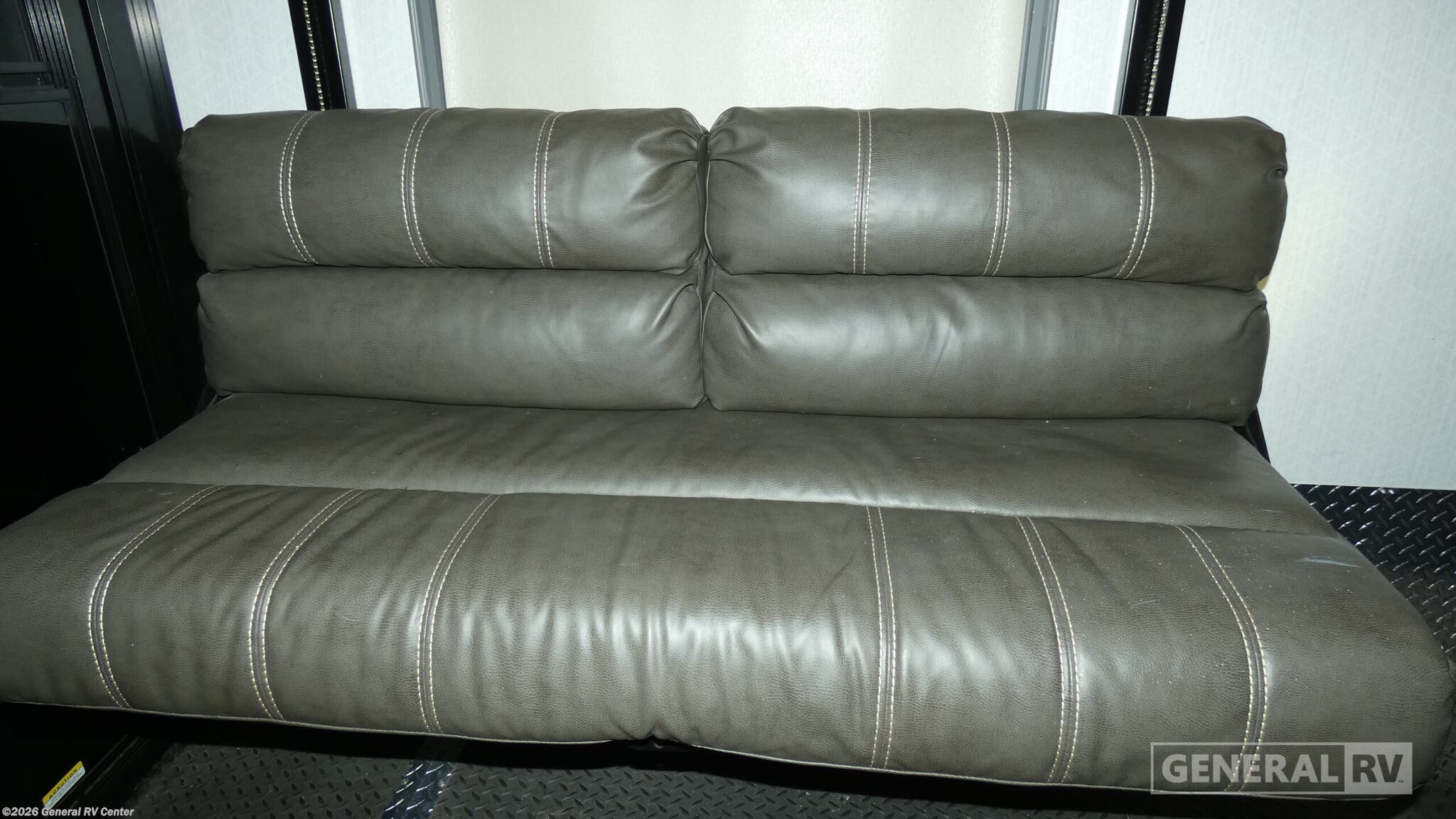 **DRX Luxury Suites Full House toy hauler MX450 highlights:** - Fireplace - Theater Seating - Kitchen Peninsula - 13' Separate Garage - Three LED HDTVs - Walk-In Closet You will absolutely fall in love with this stunning Full House fifth wheel toy hauler! Not only does this unit have beautiful décor, but it also has very accommodating and residential features so that you can truly feel like you've got a full house on wheels. The front private bedroom has a walk-in closet, 32" LED TV, and vanity slide, and the bathroom has a shower with skylight for exceptional lighting in the morning when you're getting ready. You can choose to enter the main living area or the 13' separate garage since this unit has two entry doors, and as you rest upon the theater seating, you'll appreciate the added interior space that comes from the opposing slides. You will find full-time living at its best in the DRV Luxury Suites Full House fifth wheel toy hauler! This luxurious brand features several items that most toy haulers tend to ignore when it comes to residential living, but the Full House toy hauler truly is a full house on wheels! The garage features industrial metal cabinetry, LED lighting, a touchscreen entertainment system, a 50" LED HDTV, and dual 30-gallon fuel tanks. You can even choose to amp up the garage to the next level by adding the optional patio and the electric drop-down bed. A six-point hydraulic leveling system keeps your Full House in place, and the Onan gasoline generator supplies power to your unit. The interior is rather glamorous with its hand-laid vinyl floor tile, its crown molding, its plush residential high-durability carpet, and its ceiling fan, and the residential kitchen is undoubtedly going to be an essential feature for full-time living.