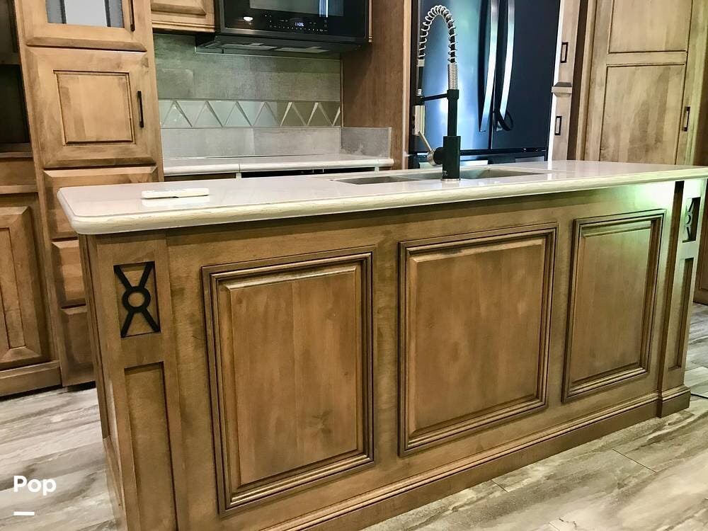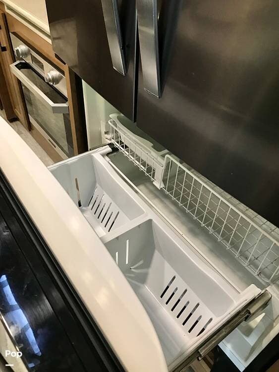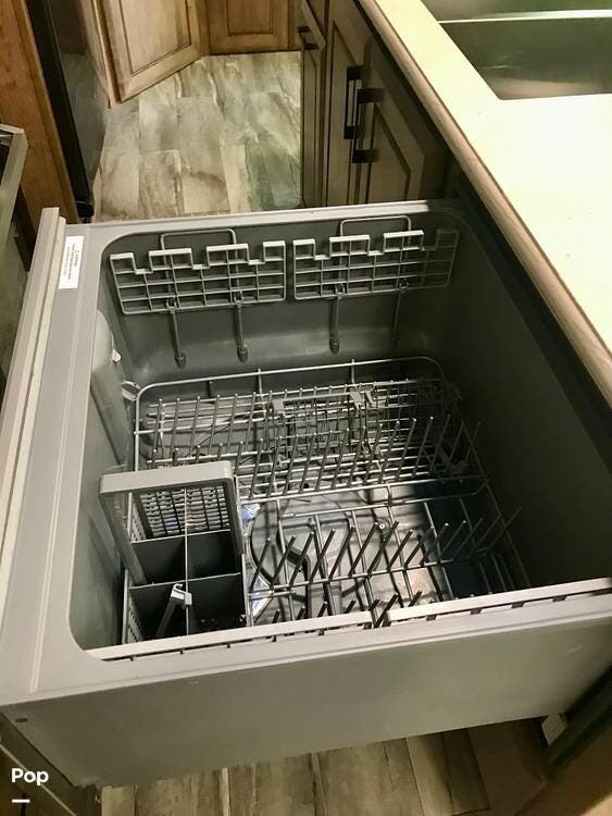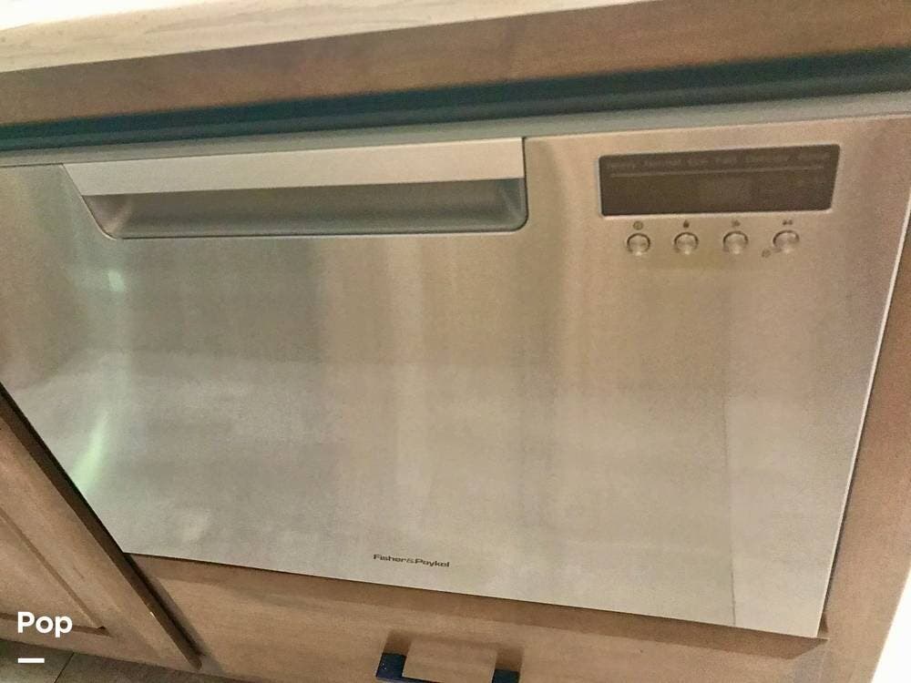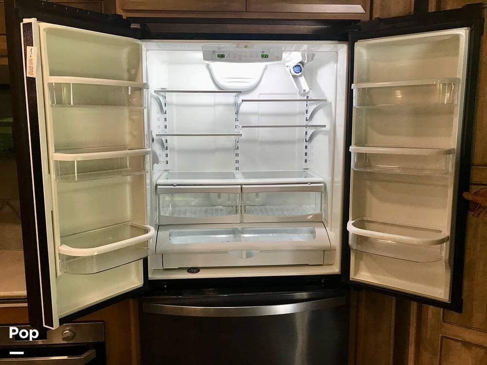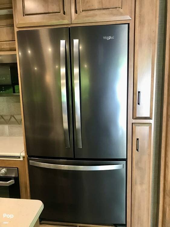 Inside, you'll find all the upscale residential features you'd expect from a high-end rig. The kitchen is equipped with a full-size refrigerator and freezer complete with an ice maker and a built-in dishwasher.