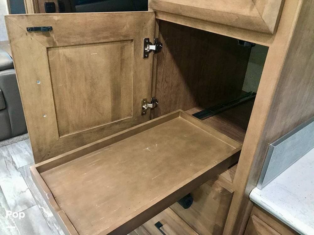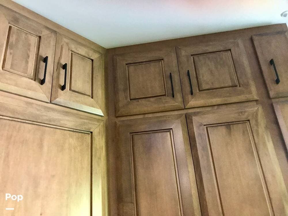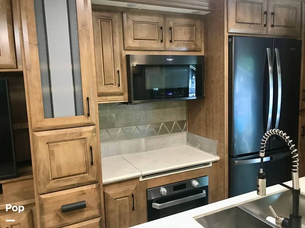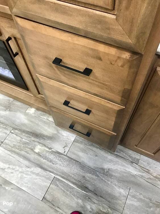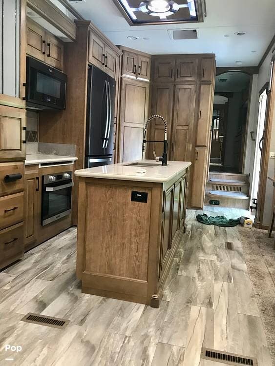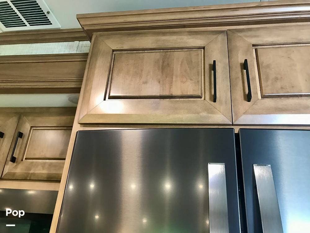 Inside, you'll find all the upscale residential features you'd expect from a high-end rig. The kitchen is equipped with a full-size refrigerator and freezer complete with an ice maker and a built-in dishwasher.