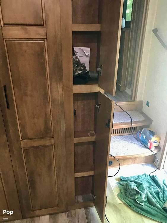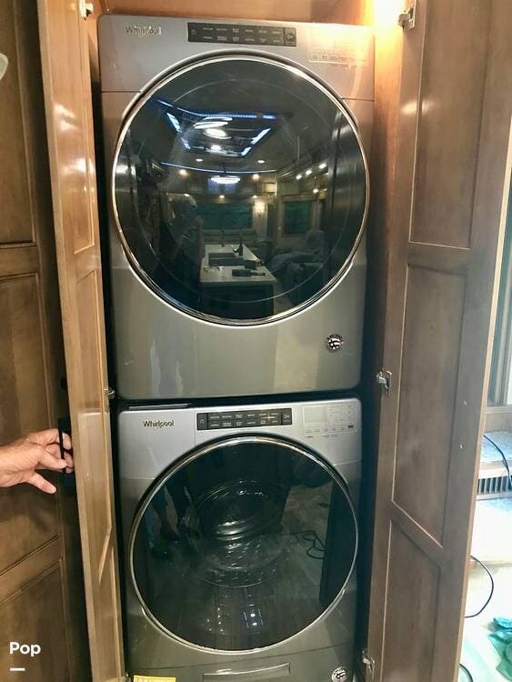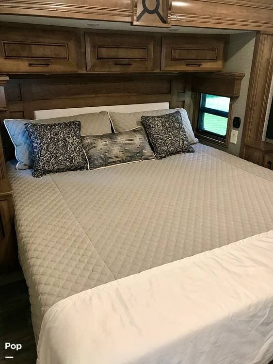 Climate control is quiet and efficient thanks to two ultra-quiet rooftop A/C units, while an on-demand water heater ensures you'll never run out of hot water. The master bedroom offers a king-size bed and ample storage, continuing the residential feel throughout the RV.