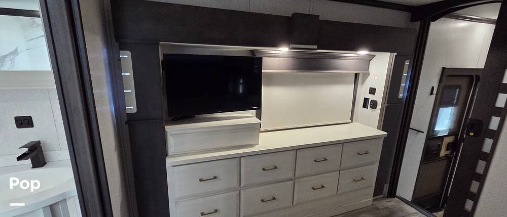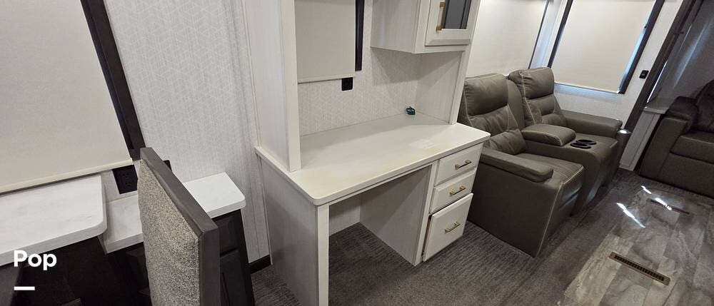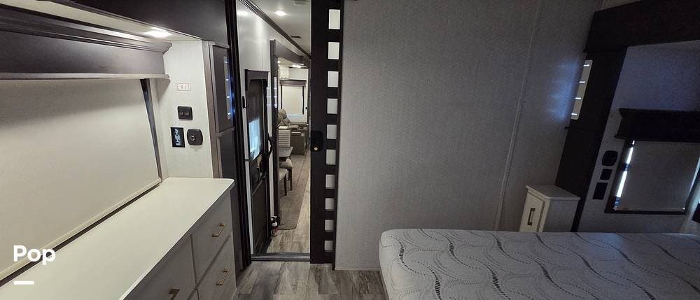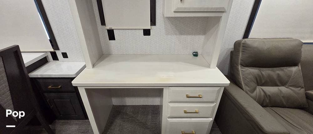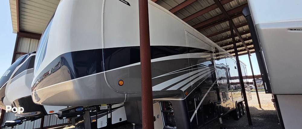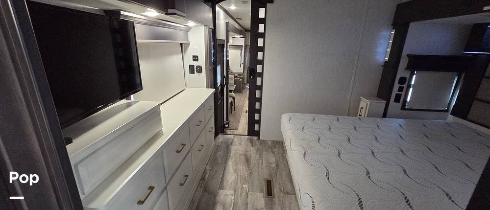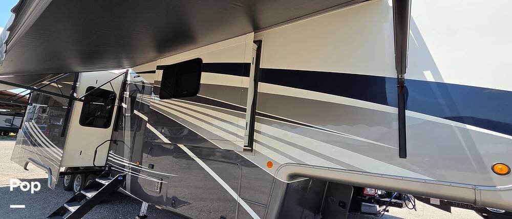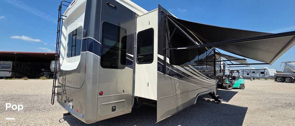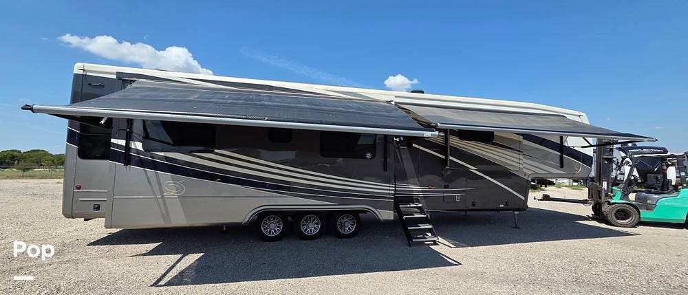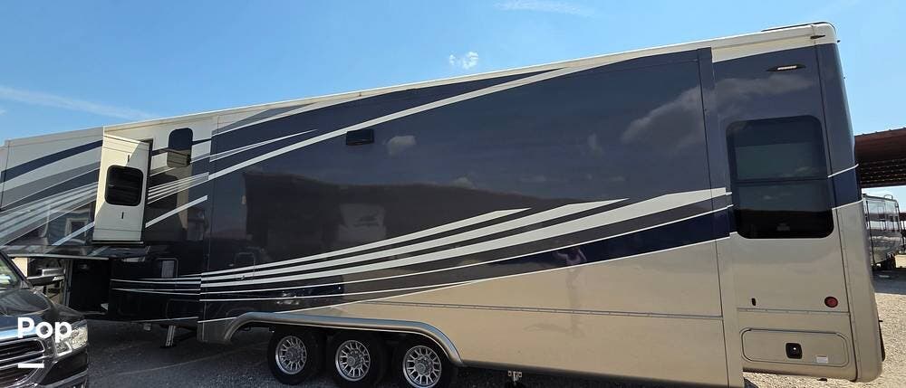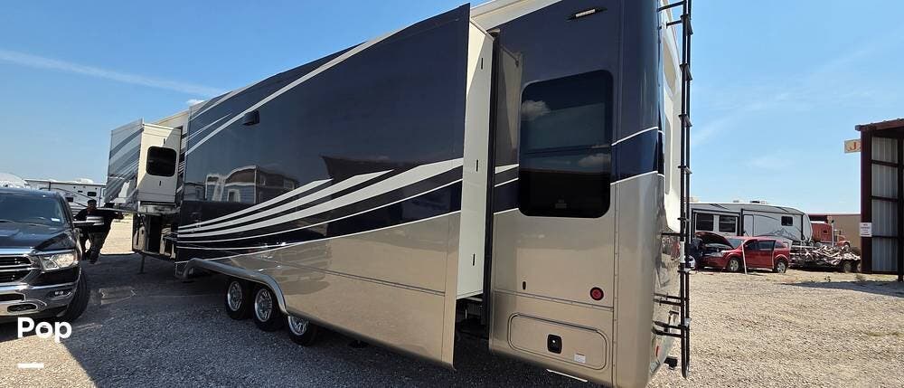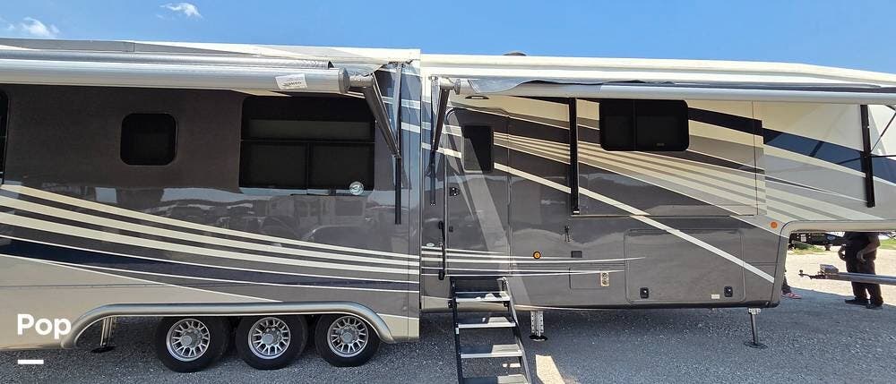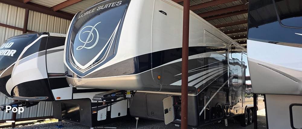 This 2021 DRV Mobile Suites 44 Houston is located in Midlothian, Texas. Meticulously maintained by its sole owner, this property features a bath and a half, abundant storage both inside and out, auto-leveling jacks, plush seating, an office desk, a dishwasher, and more.