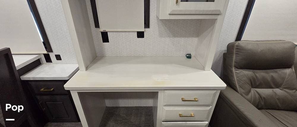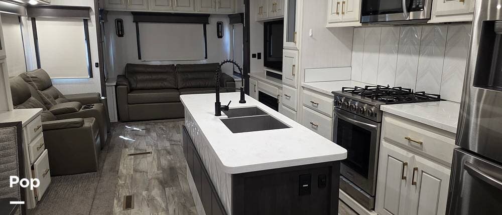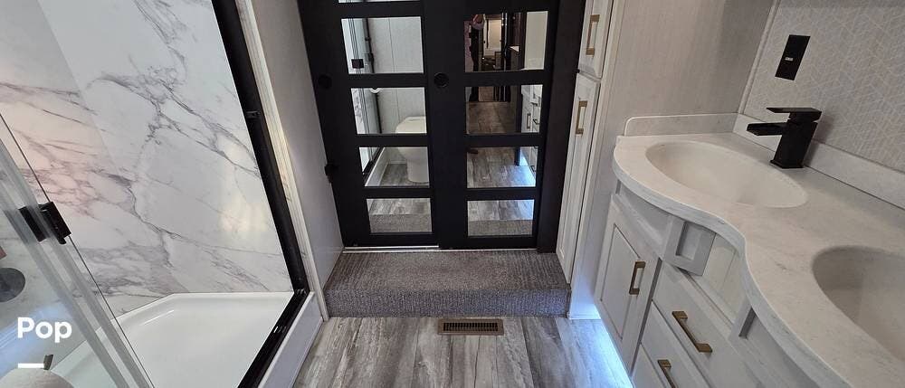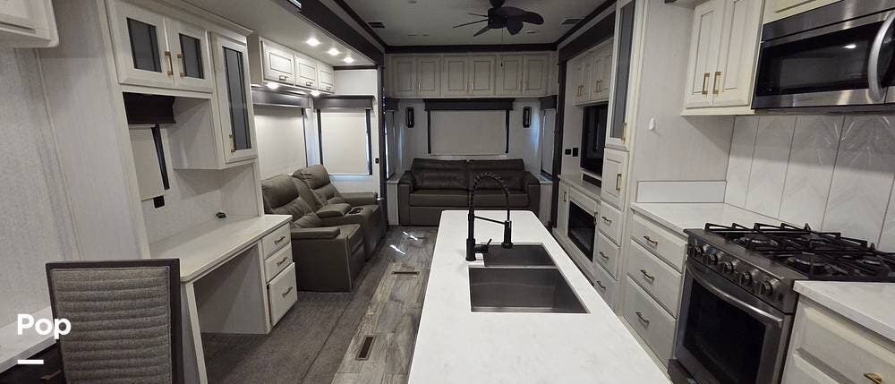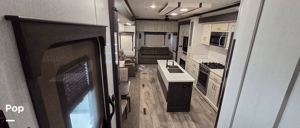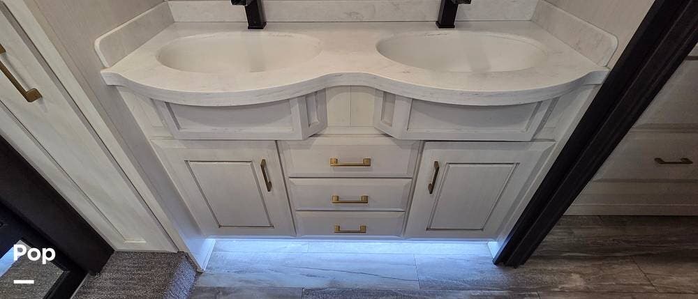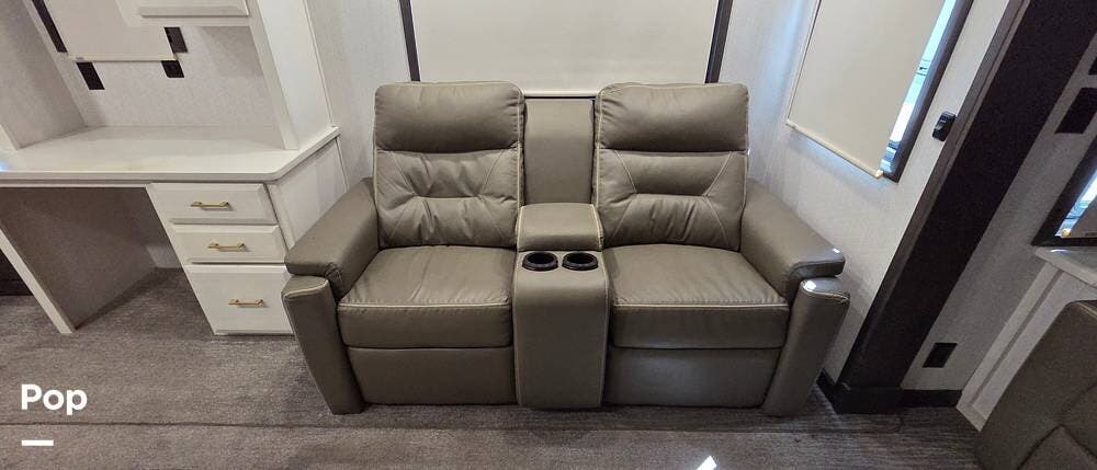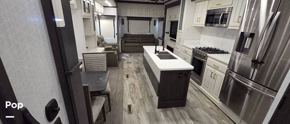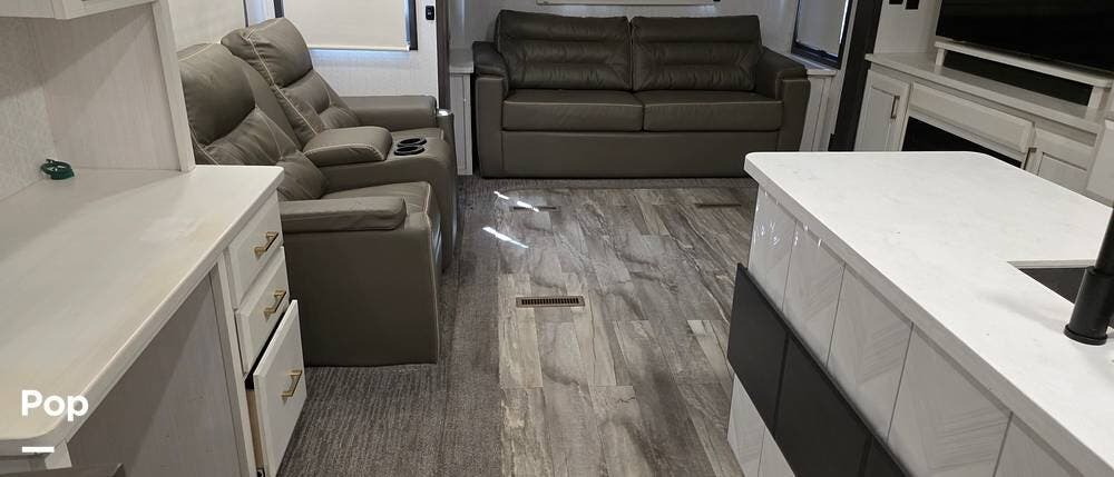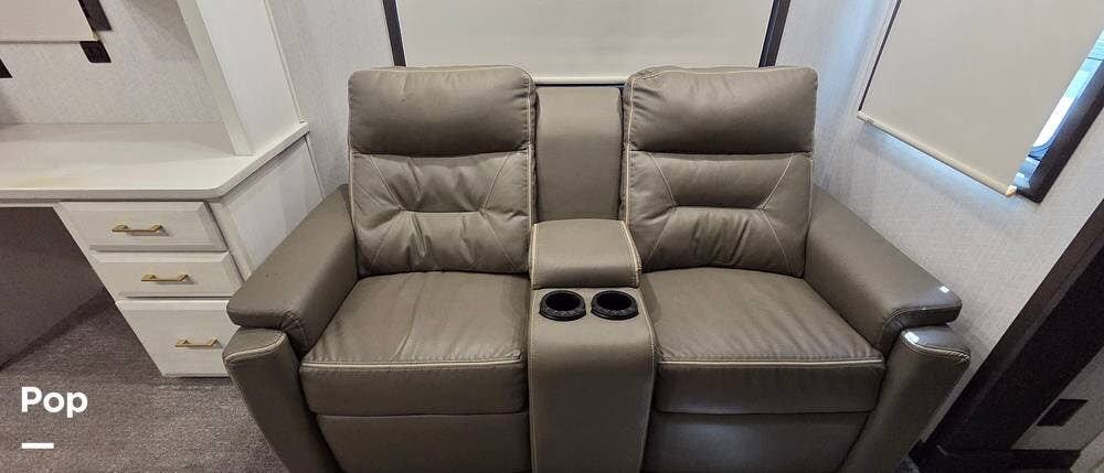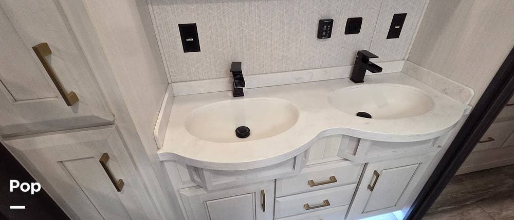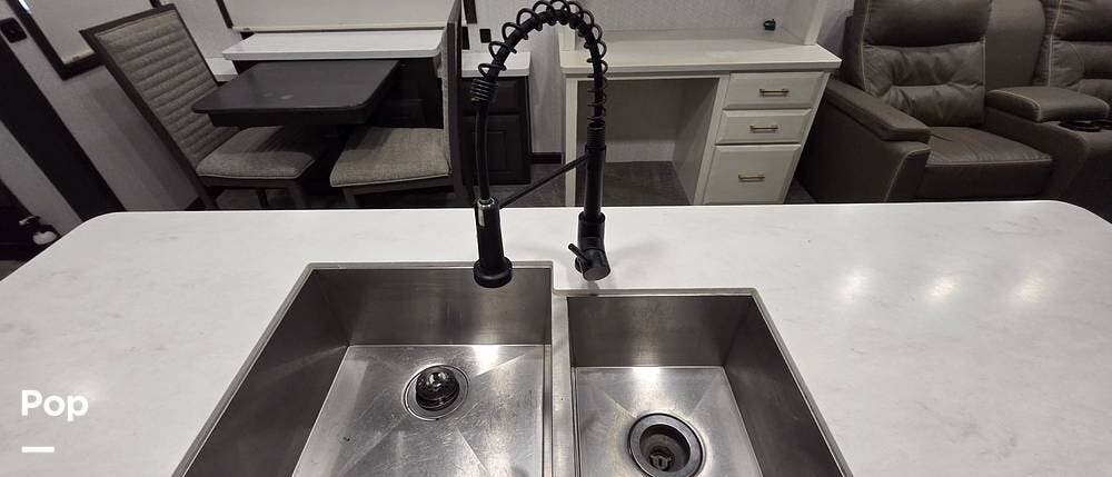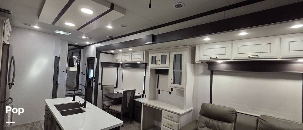 This 2021 DRV Mobile Suites 44 Houston is located in Midlothian, Texas. Meticulously maintained by its sole owner, this property features a bath and a half, abundant storage both inside and out, auto-leveling jacks, plush seating, an office desk, a dishwasher, and more.