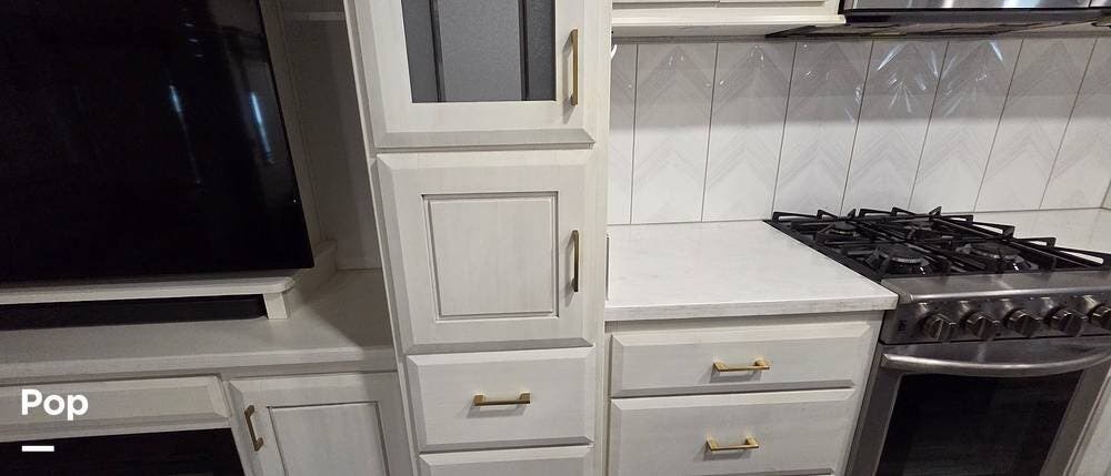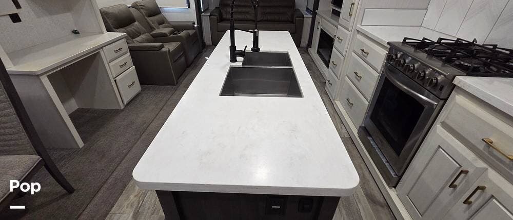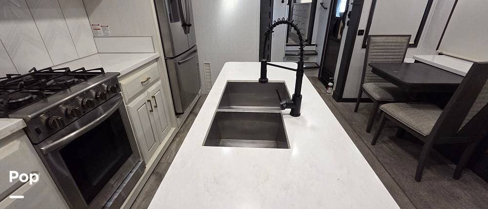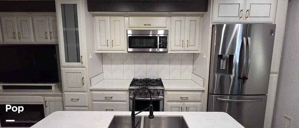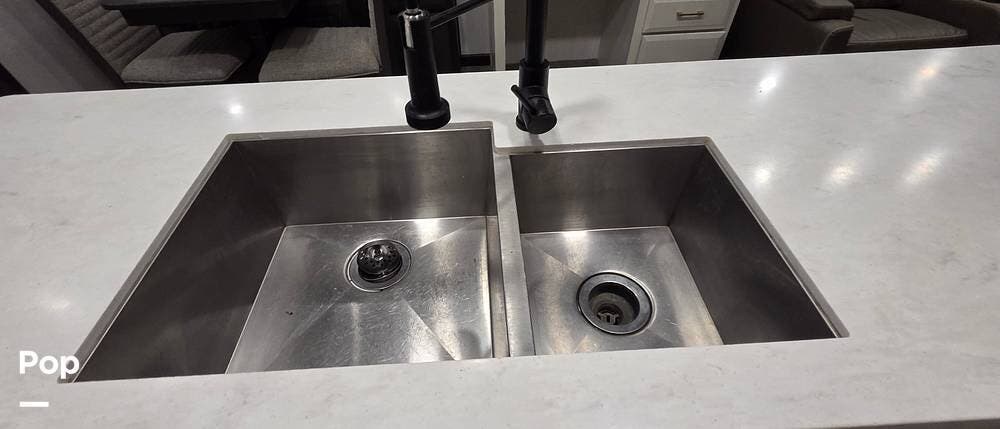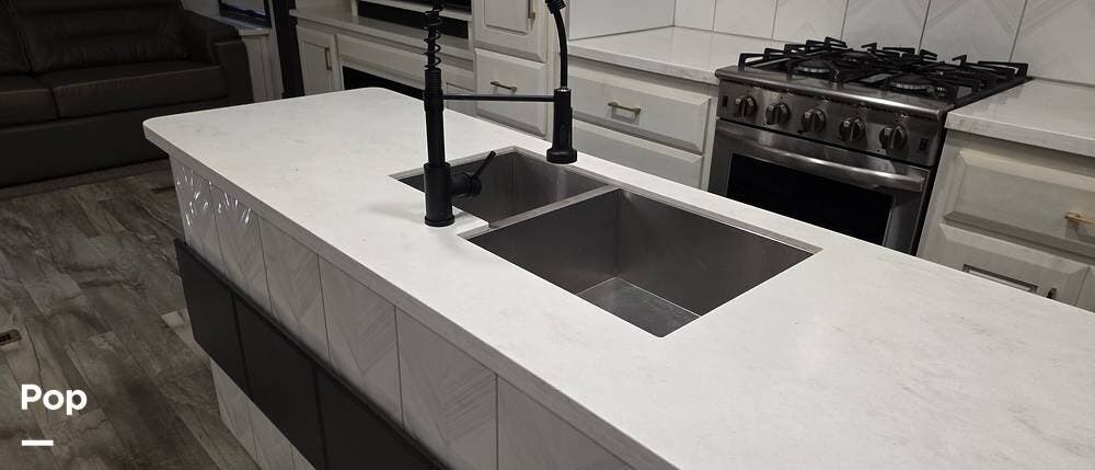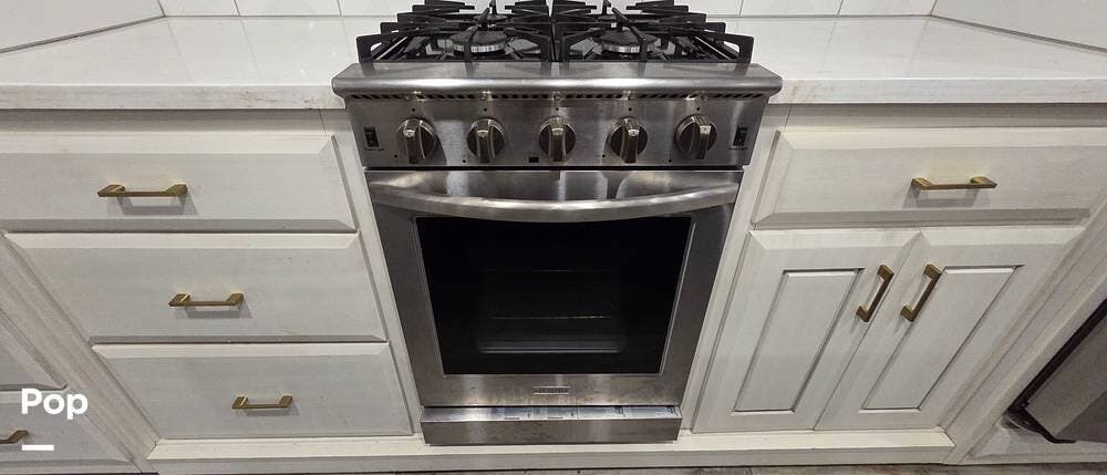 The well-appointed kitchen has everything you need to prepare meals with ease, along with ample space for all your supplies. Whether you're into "glamping" or full-time living, this coach is designed to impress.