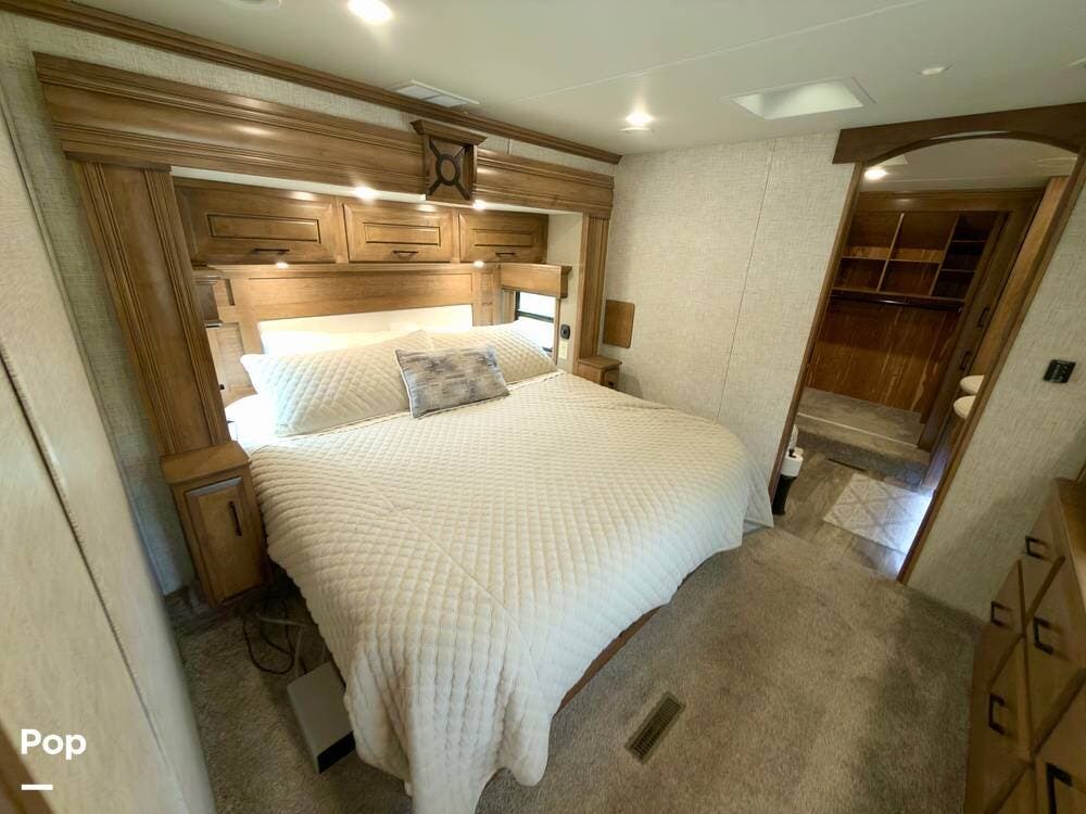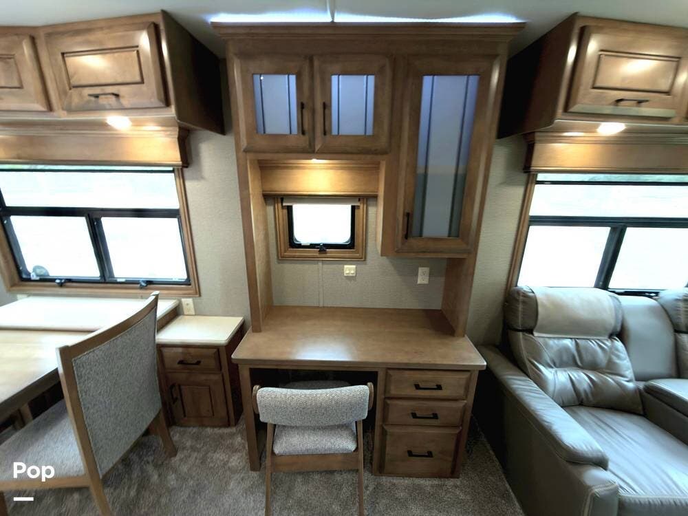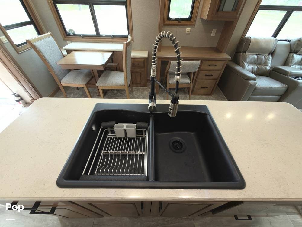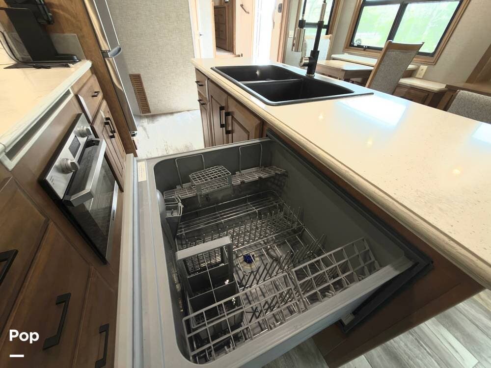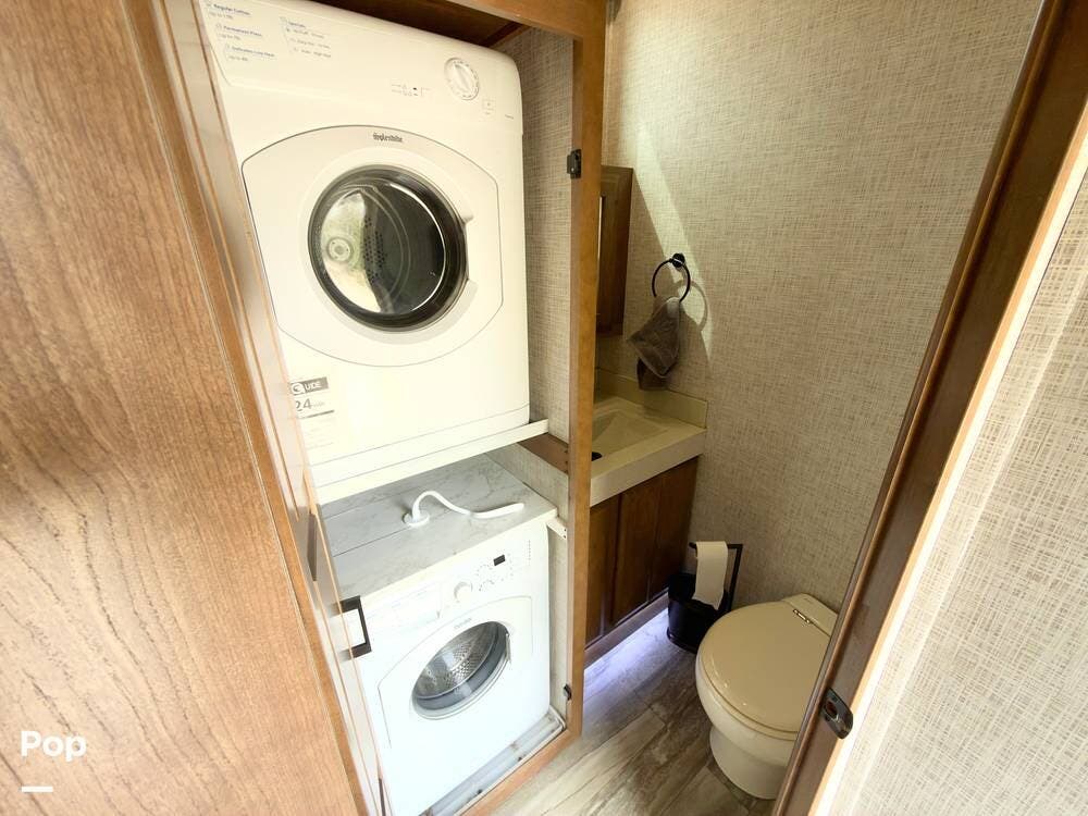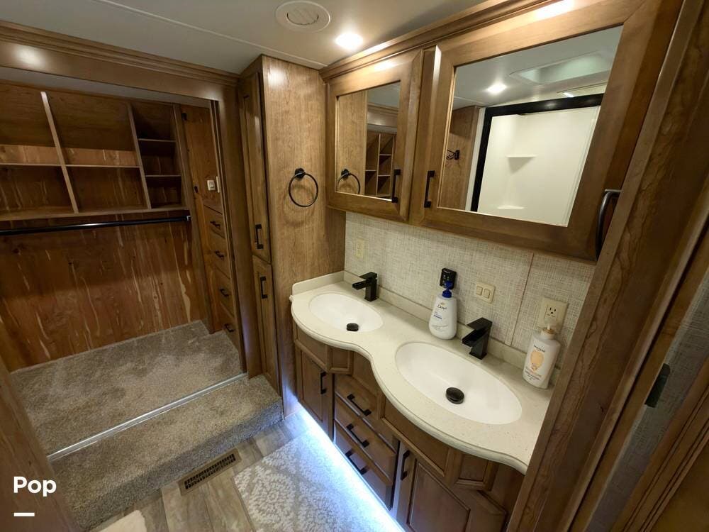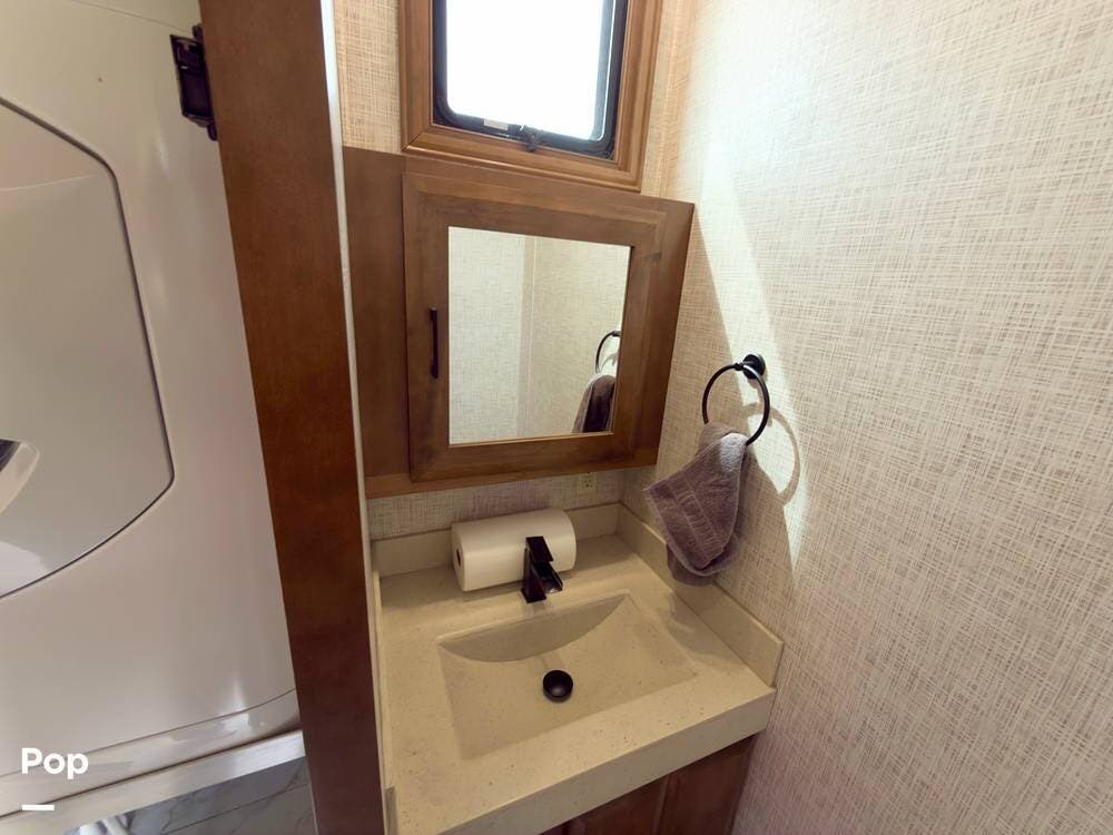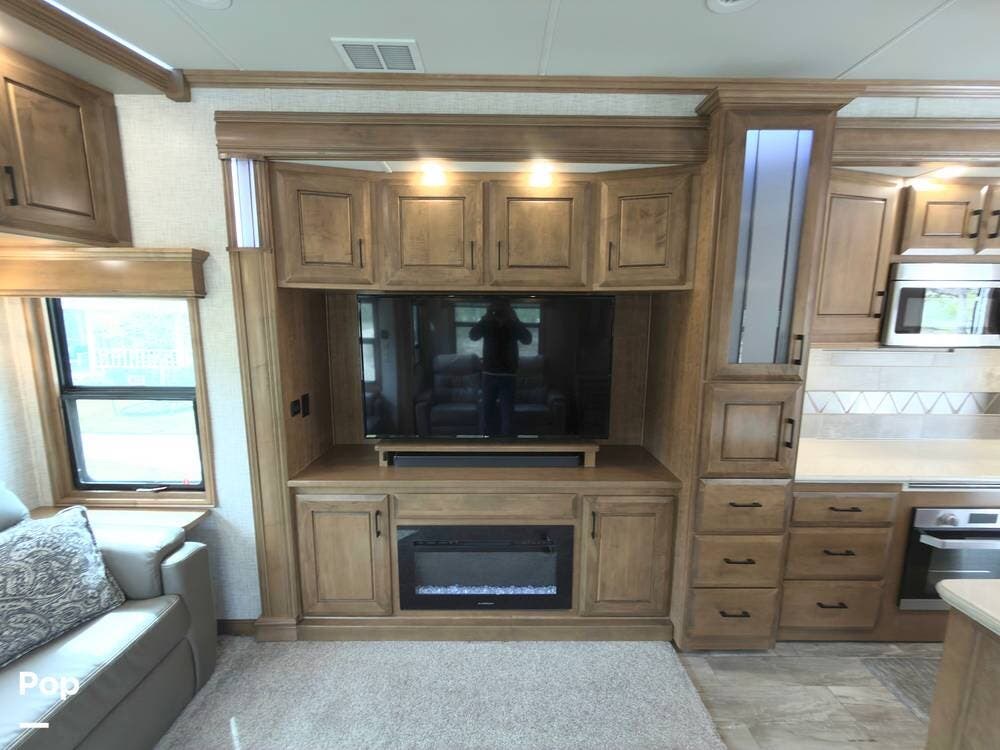 One-piece molded fiberglass roof, added 4th slide option (bedroom vanity), upgraded from 5500 Onan Generator to the 6500, 3rd A/C, Wifi Ranger, Outdoor Entertainment (TV), Winegard Satellite (HD), built-in wardrobe safe, stacked washer & dryer, power cord reel, 2nd power awning, tank heaters, & quartz countertops.