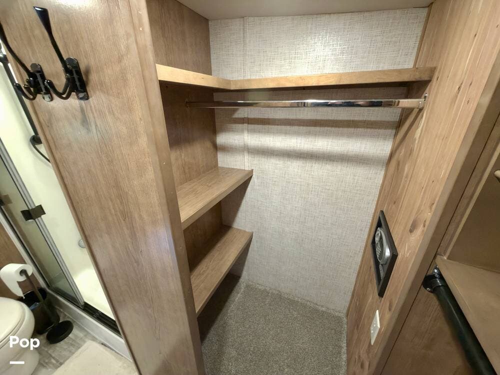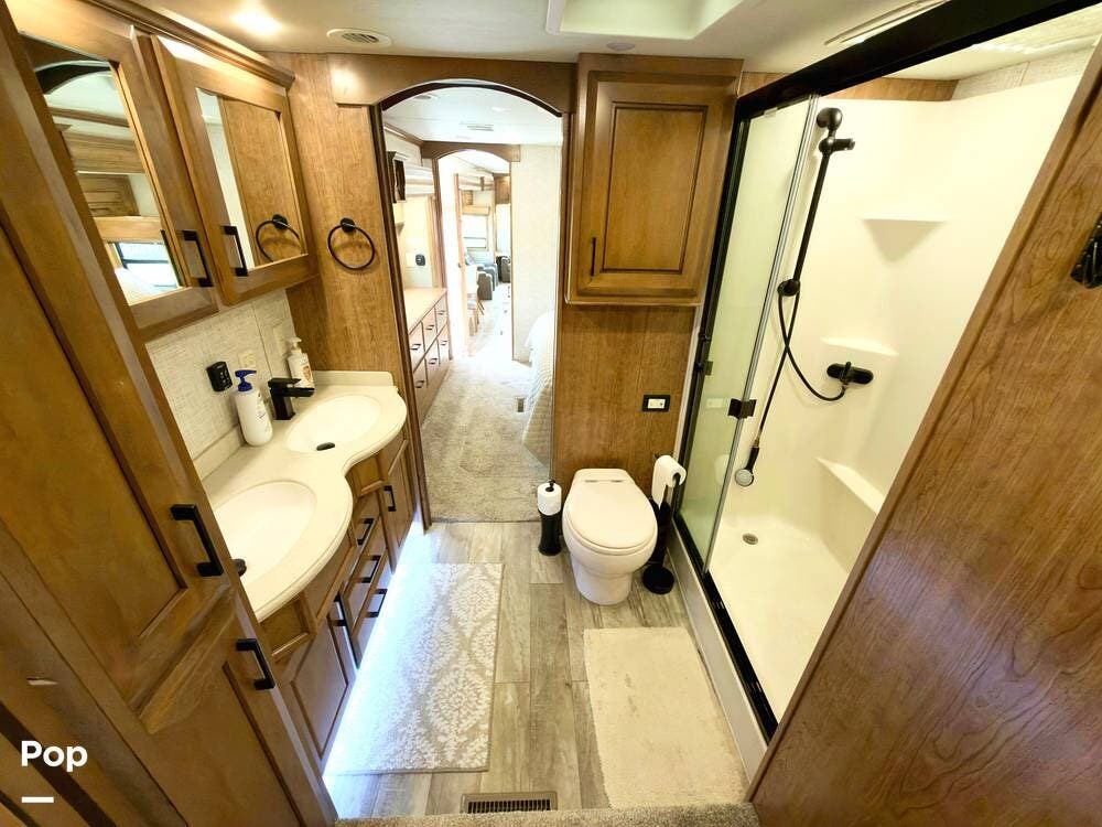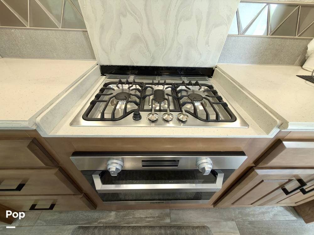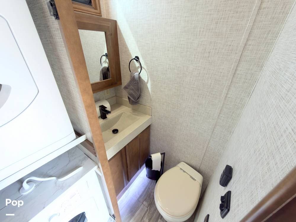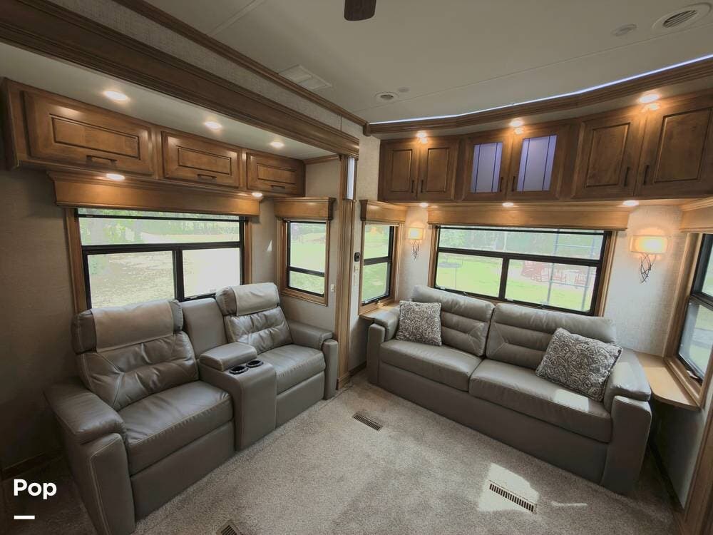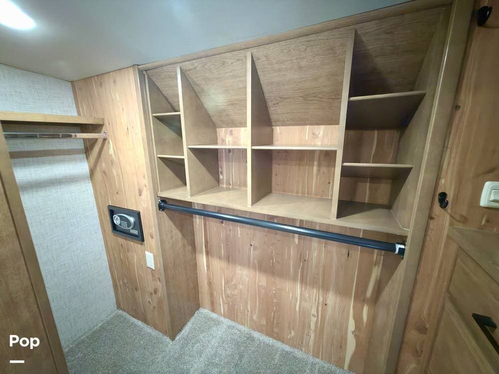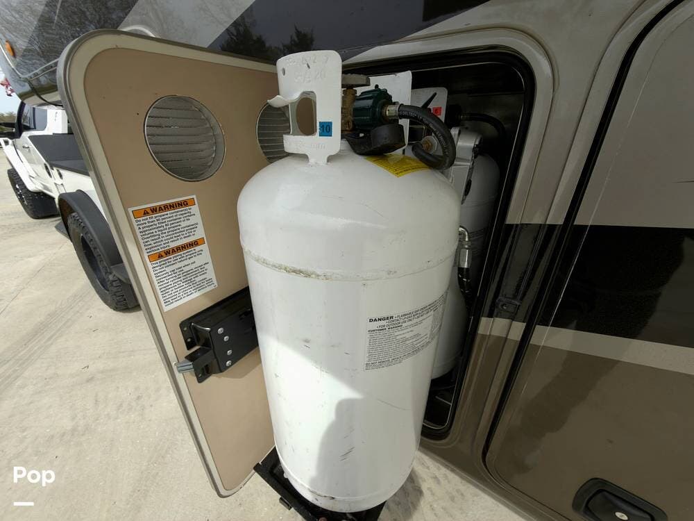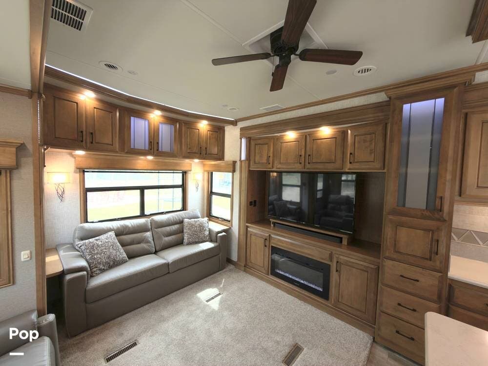 One-piece molded fiberglass roof, added 4th slide option (bedroom vanity), upgraded from 5500 Onan Generator to the 6500, 3rd A/C, Wifi Ranger, Outdoor Entertainment (TV), Winegard Satellite (HD), built-in wardrobe safe, stacked washer & dryer, power cord reel, 2nd power awning, tank heaters, & quartz countertops.