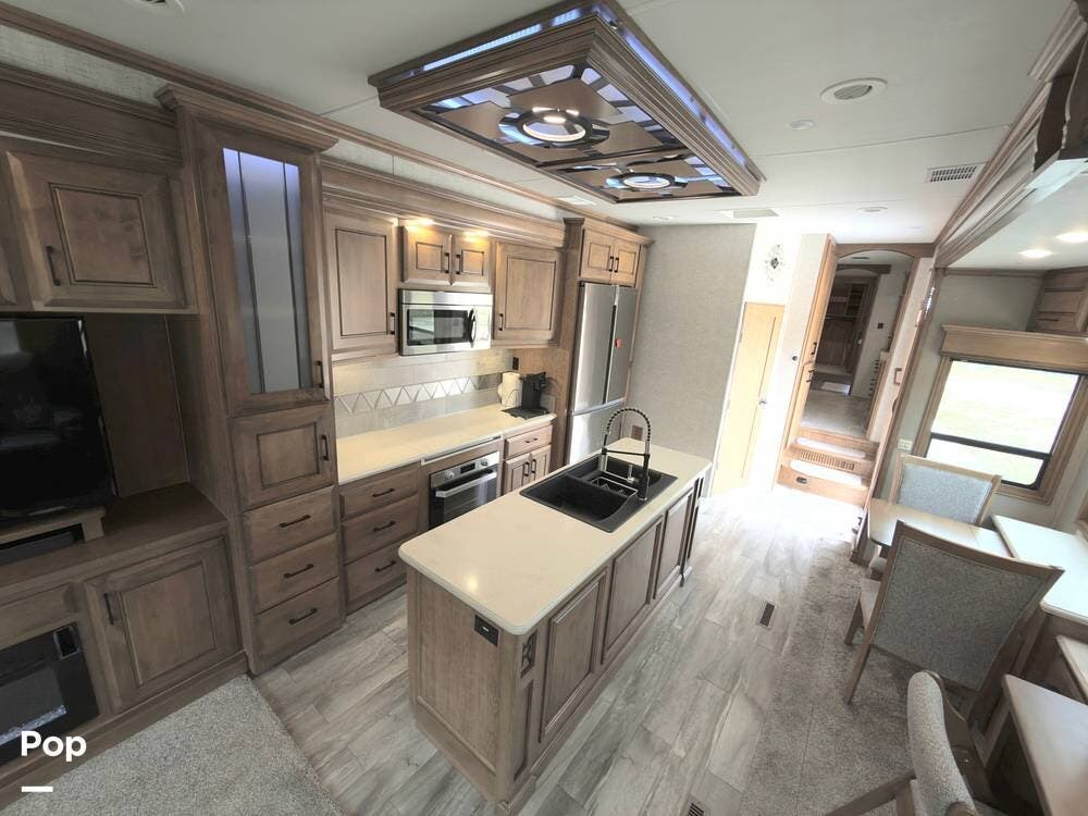 This is considered one of the very best luxury 5th wheels on the market. The full-body automotive paint is stunning in person. When you are standing near this 44 Houston, it clearly stands out from other luxury models.