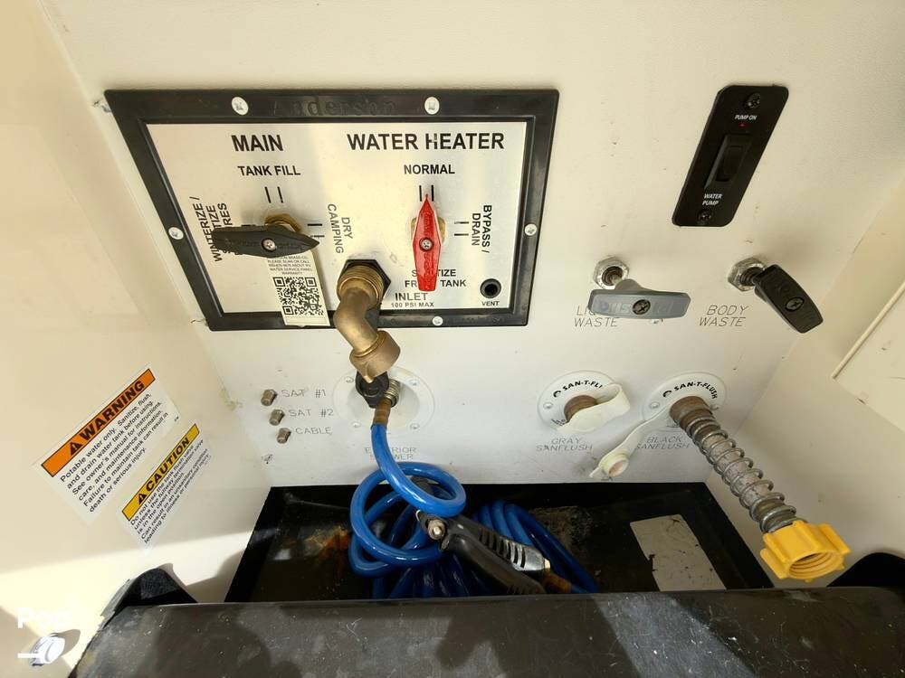 This 44 Houston is currently rigged with a Goosebox to connect to a gooseneck ball, but the Goosebox can be removed and the 5th wheel connection used for standard 5th wheel towing hitch systems. It's up to the new owner which option they prefer.