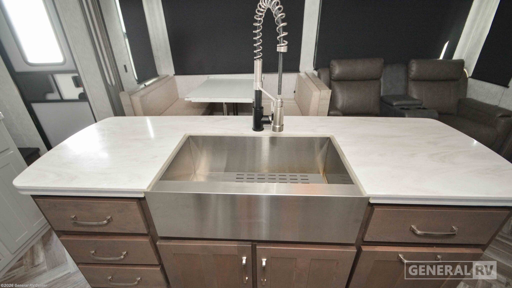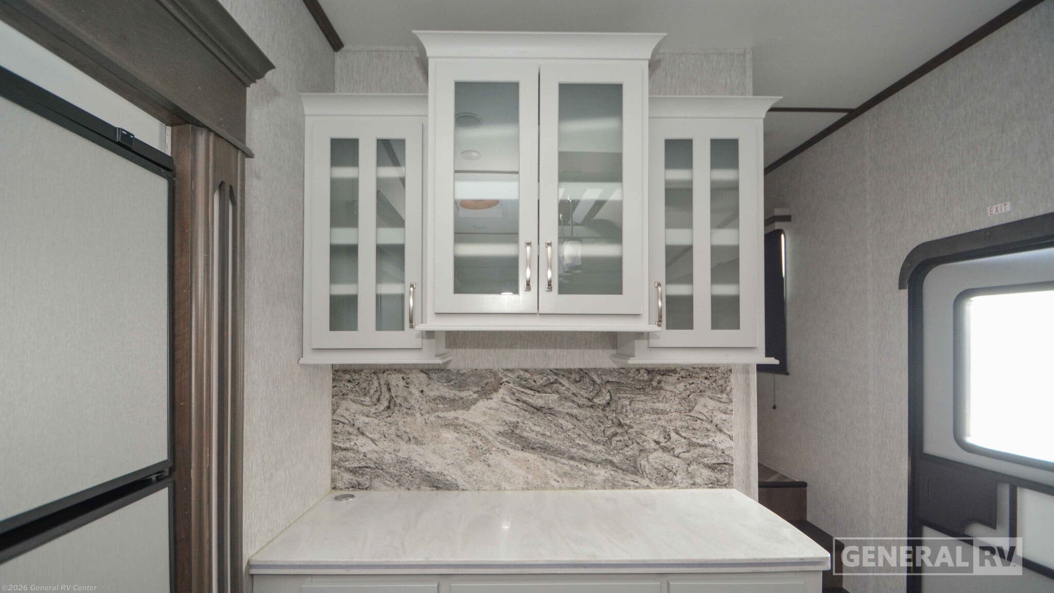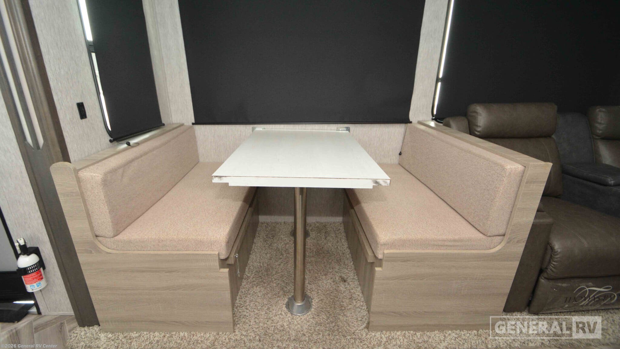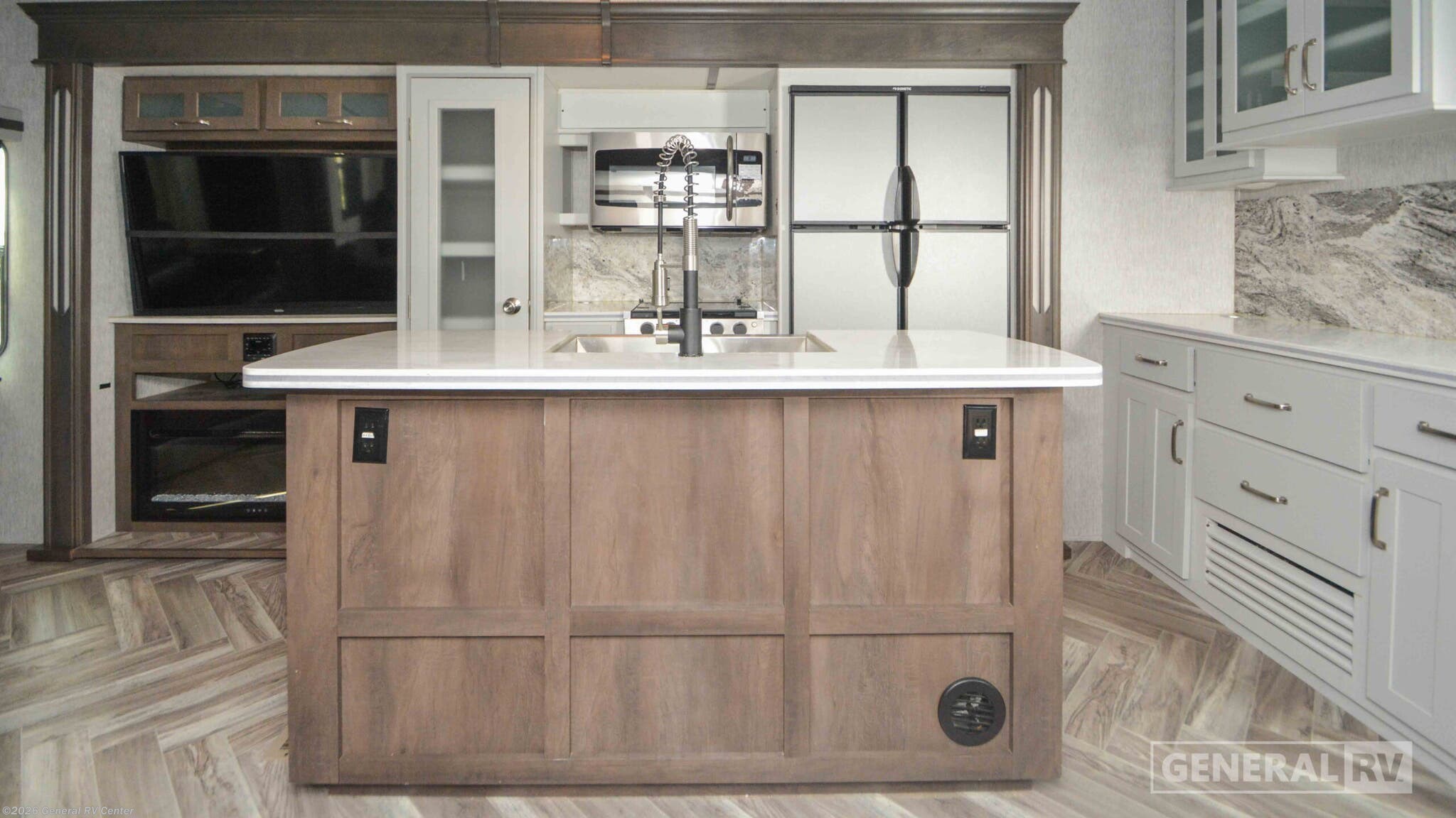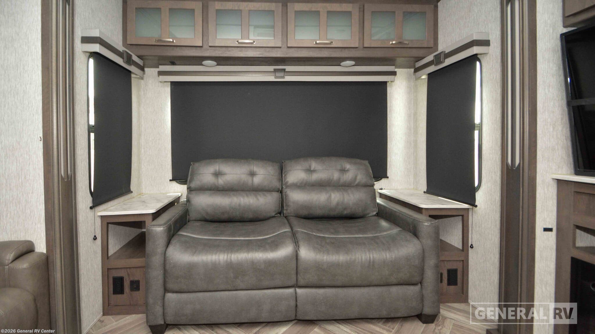 **Dutchmen Astoria Platinum Series fifth wheel 3173RLP highlights:** * Triple Slides * Dual-Sink Vanity * Kitchen Island * Rear Living Area * Free-Standing Dinette * Hutch Whether you travel with your spouse or your family to state parks or RV resorts, this fifth wheel offers enough space and comfort! Enjoy the cozy 40" glass fireplace during chilly months, and the 50" LED TV on rainy days. The dual opposing slides in the rear living/kitchen area open up the whole space, and the kitchen island with solid surface countertop makes it feel more like home. You'll appreciate all the storage space you have, including a pantry and a 12 cu. ft. refrigerator for all your food for the week. This unit features a front private bedroom with a king-size bed slide and a large front wardrobe. With any Astoria fifth wheel, you'll get the Dutchmen construction advantage with features such as HyperDeck floor construction which includes linoleum flooring, a steel powder coated main frame, and a fully enclosed underbelly, plus a painted fiberglass cap with LED lights. Some standard features that will impress you include the patio and hitch lights, USB ports to keep all the electronics charged, dual 30 lb. propane tanks, automatic leveling system, dark-tinted safety glass windows, and stainless steel appliances so you can keep your bellies full with home cooked meals. Choose your favorite today!