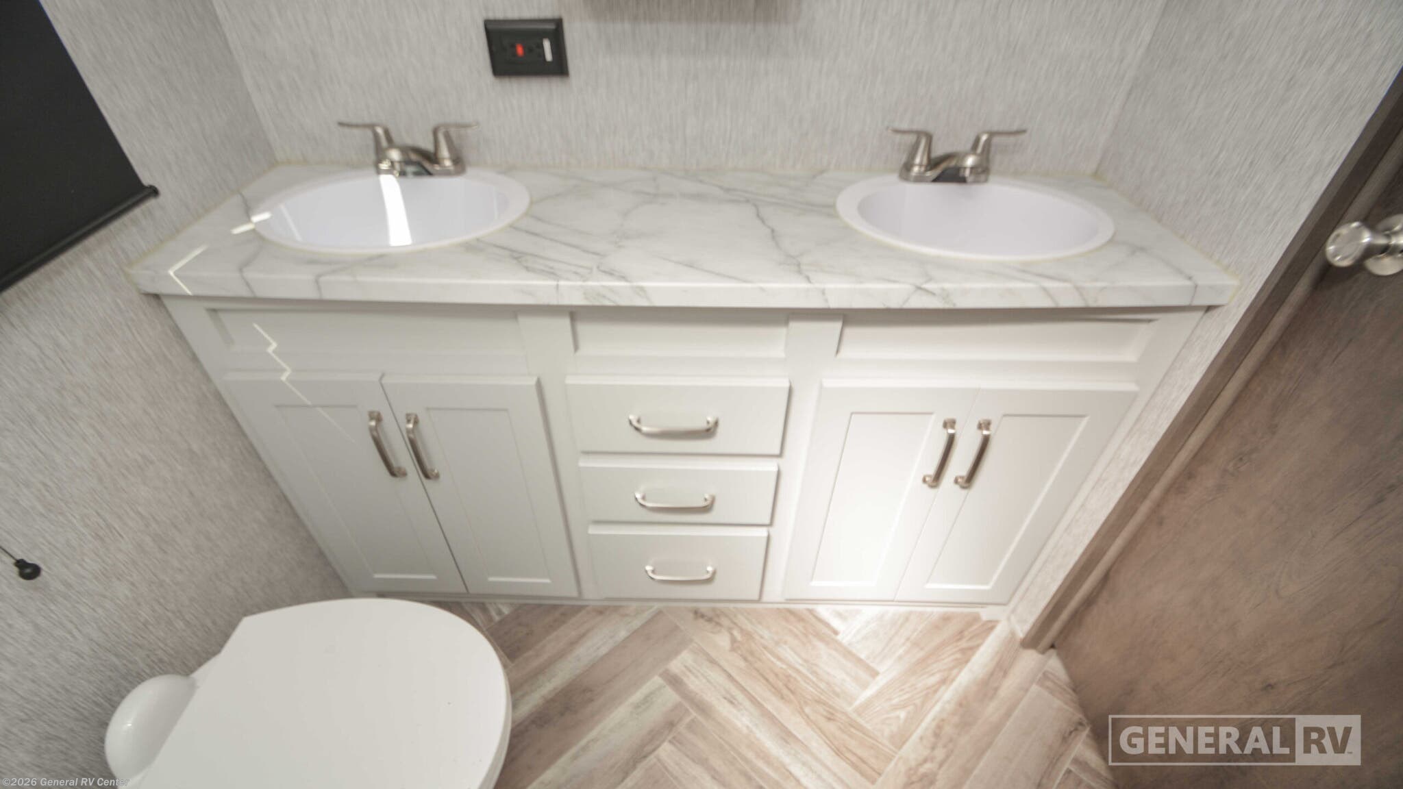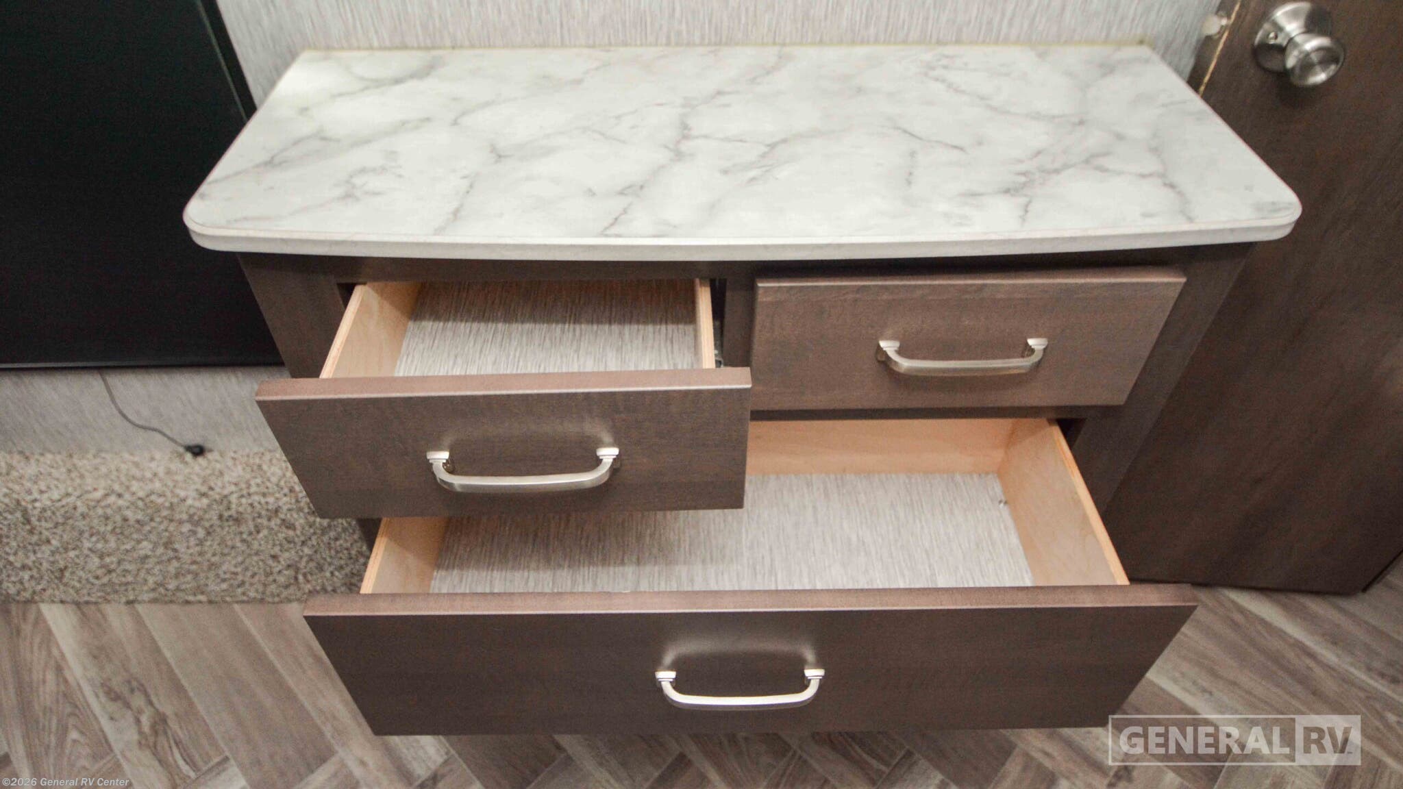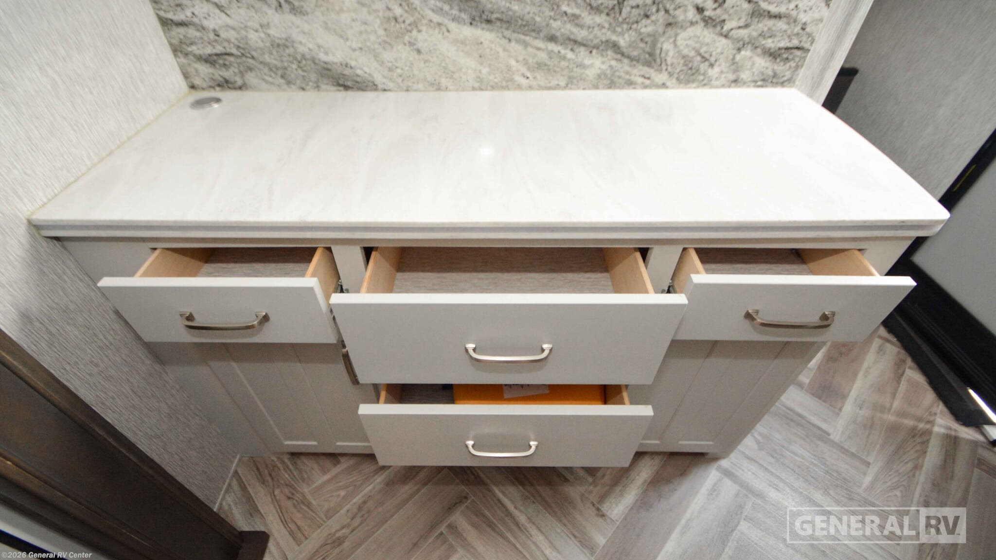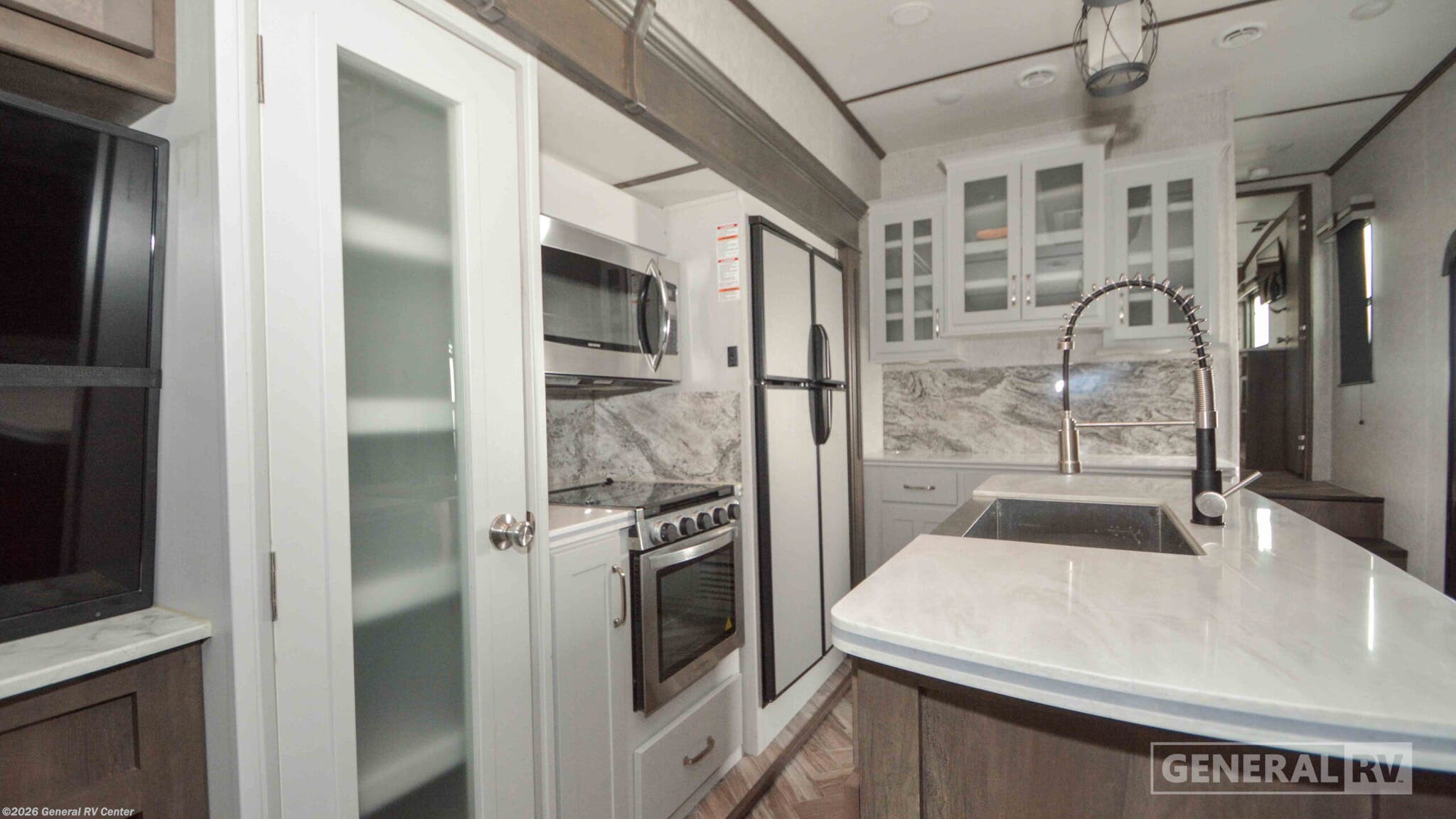 **Dutchmen Astoria Platinum Series fifth wheel 3173RLP highlights:** * Triple Slides * Dual-Sink Vanity * Kitchen Island * Rear Living Area * Free-Standing Dinette * Hutch Whether you travel with your spouse or your family to state parks or RV resorts, this fifth wheel offers enough space and comfort! Enjoy the cozy 40" glass fireplace during chilly months, and the 50" LED TV on rainy days. The dual opposing slides in the rear living/kitchen area open up the whole space, and the kitchen island with solid surface countertop makes it feel more like home. You'll appreciate all the storage space you have, including a pantry and a 12 cu. ft. refrigerator for all your food for the week. This unit features a front private bedroom with a king-size bed slide and a large front wardrobe. With any Astoria fifth wheel, you'll get the Dutchmen construction advantage with features such as HyperDeck floor construction which includes linoleum flooring, a steel powder coated main frame, and a fully enclosed underbelly, plus a painted fiberglass cap with LED lights. Some standard features that will impress you include the patio and hitch lights, USB ports to keep all the electronics charged, dual 30 lb. propane tanks, automatic leveling system, dark-tinted safety glass windows, and stainless steel appliances so you can keep your bellies full with home cooked meals. Choose your favorite today!