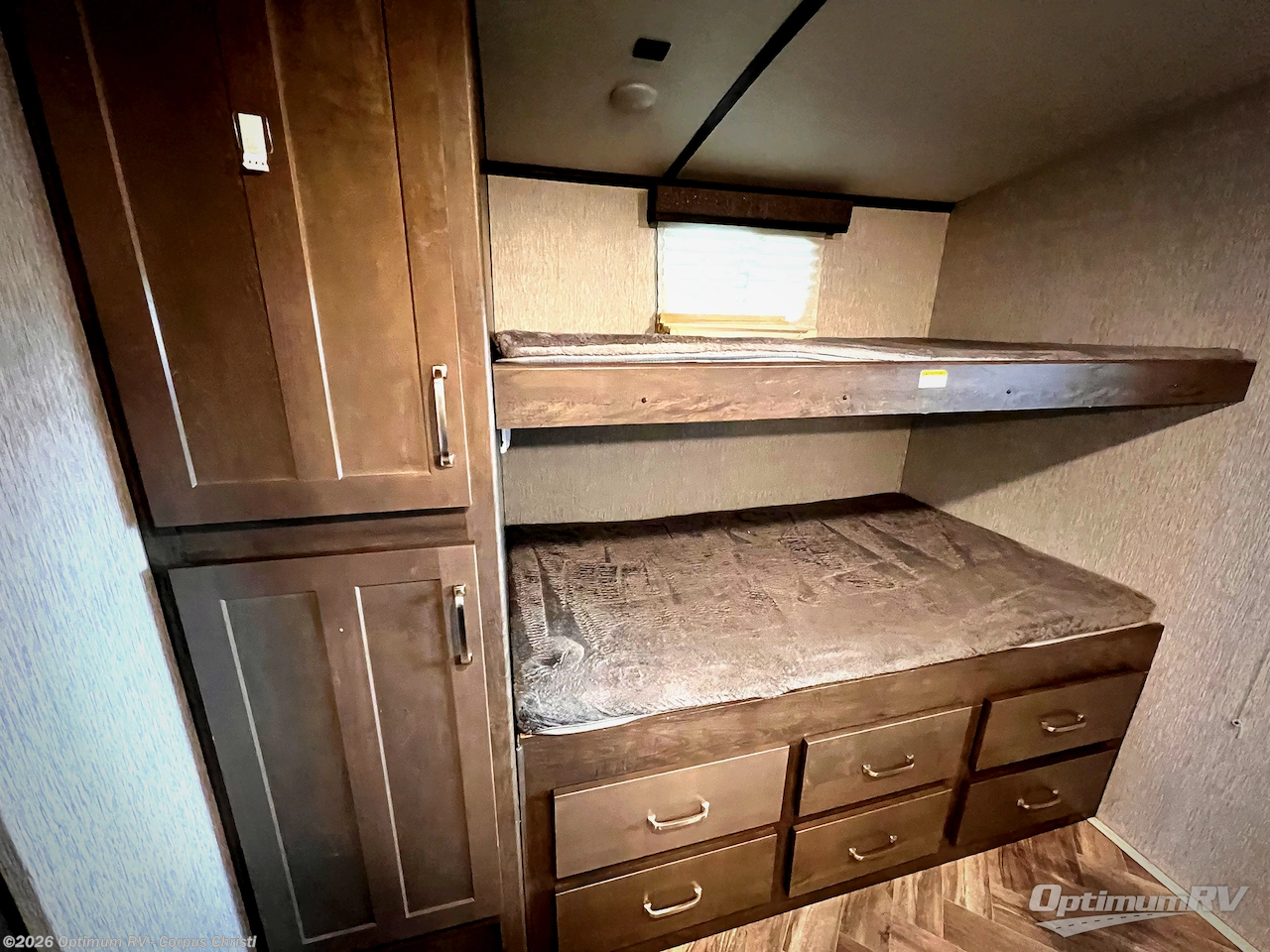 You'll have such a blast getting acquainted with your local state park in this Astoria travel trailer! Spend your day trekking through the woods and return home to a comfortable space within this trailer. Cozy up on the tri-fold sofa or U-shaped dinette while you watch a movie on the 40" LED TV and enjoy snacks from the walk-in pantry, or you can whip up a full meal on the three-burner range with 17" oven. At the end of the day, both you and the rest of your family can retire to your own locations with the private bedroom up front and the private bunkhouse in back.