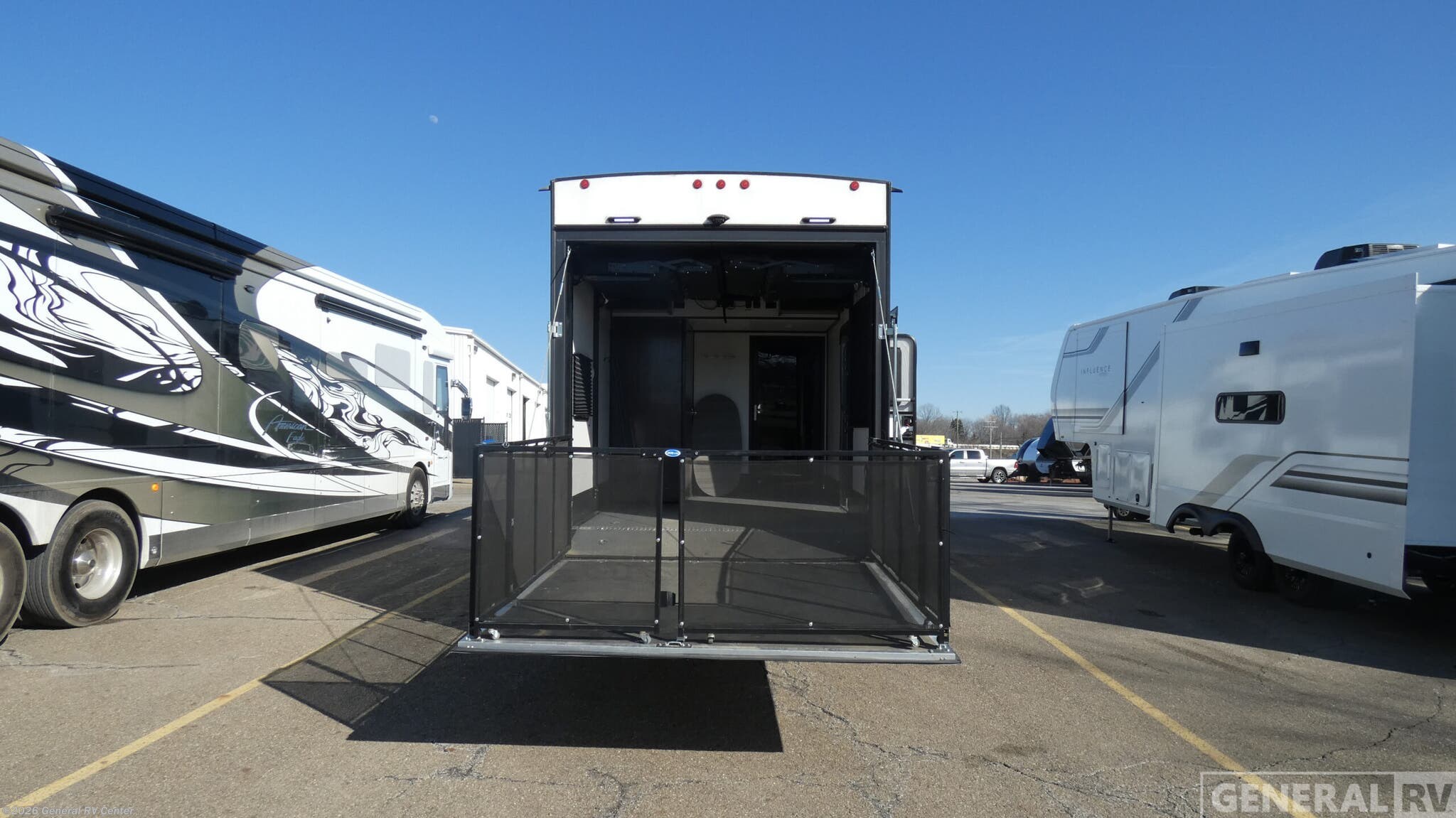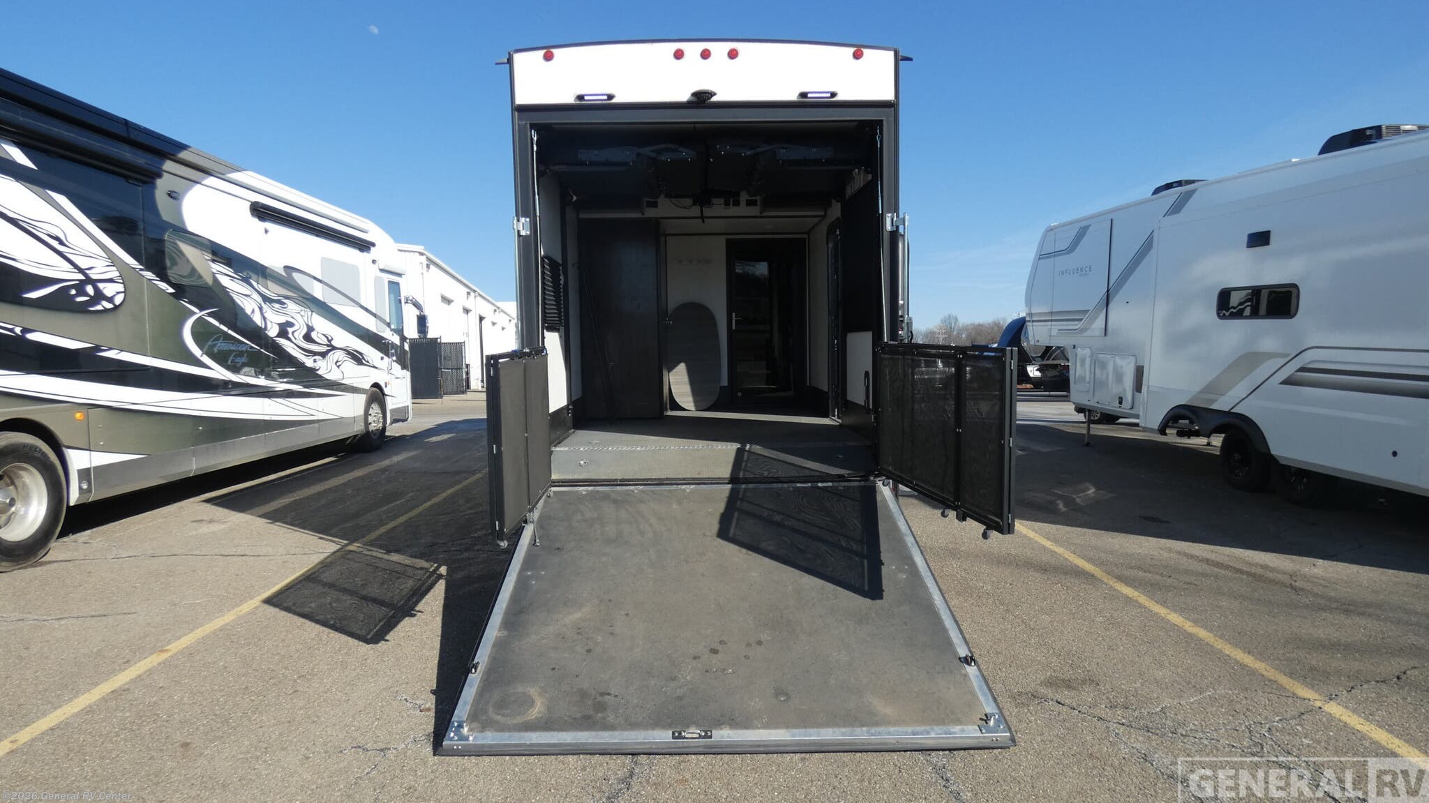 **Dutchmen Voltage Triton toy hauler 3571 highlights:** - Twin-Size Loft - Happi-Jack Bunk - Half Bath in Garage - 13' Separate Garage - Triple Slides - King-Size Bed If you are an adventure fanatic, then this Voltage Triton toy hauler is something that you must have! Not only is there plenty of space to haul your favorite off-road vehicles in the 13' separate garage, but there is also plenty of space for you and your fellow adventure junkies to relax and recuperate up in the main living area on the heat-and-massaging sofa. Across from the sofa is a fireplace which will create a comfortable ambiance as you rest. The full bathroom is connected with a private entrance into the bedroom so that you have a master suite for yourself, and the half bathroom is located back within the garage. This unit also has two entry doors so that you can choose to either enter the main living area or the garage. The Dutchmen Voltage Triton toy hauler finally proves that you can have luxury and value together! The six-point auto leveling system and Onan 5.5kW gas generator are a great start, and the top-notch features continue on into the garage with the indoor/outdoor speakers, pull-down screen, Tuff Ply flooring, and 2,500-LB tie downs. All throughout the interior, you will constantly find features that will enhance your camping experience, like the 7' slide boxes that provide more head space and the oversized windows that allow you to catch glimpses of your surroundings while you walk about the interior. The pleated night shades, residential duvet covers, and residential furniture give the Triton a home-like atmosphere, and the Triton has also been prepped for cable/satellite at your convenience.