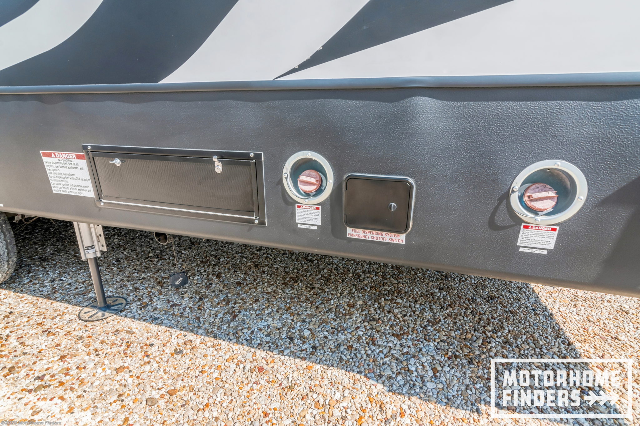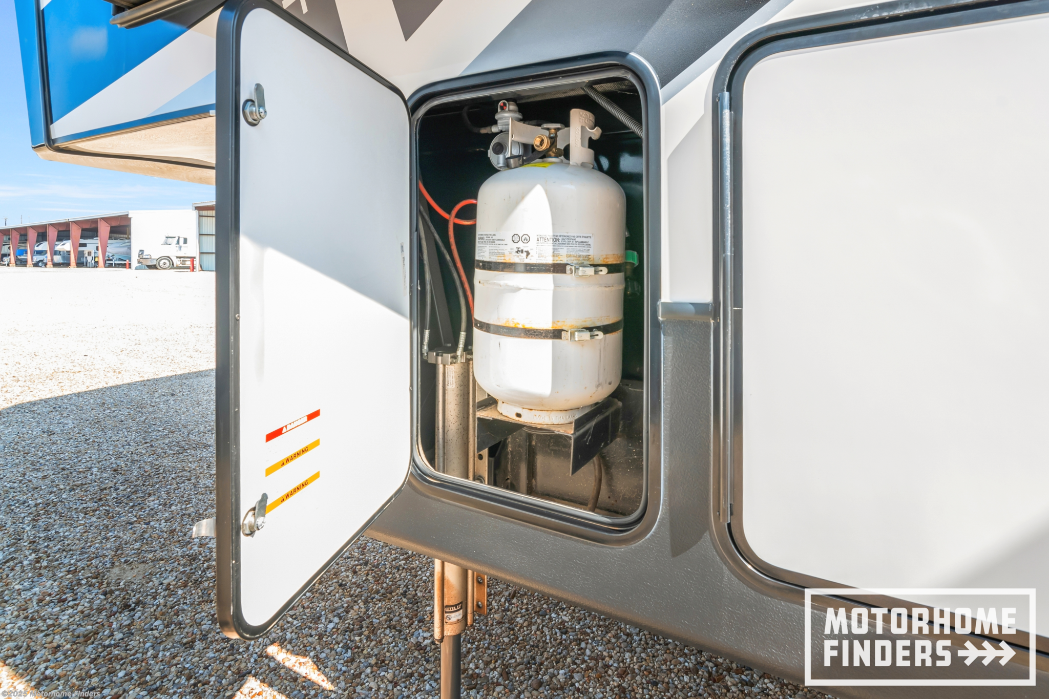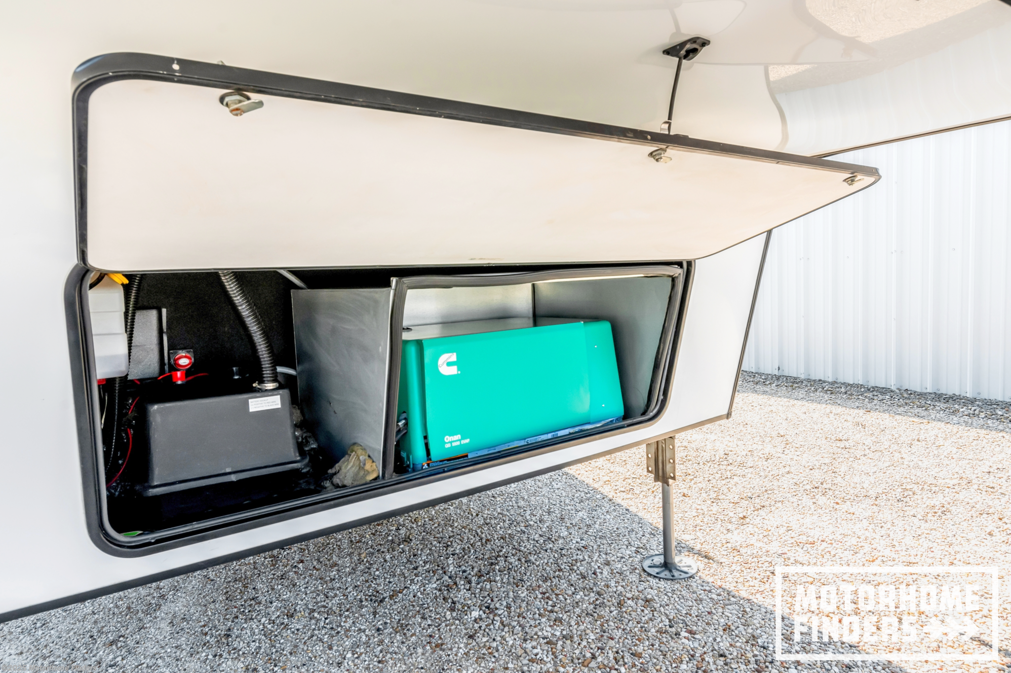 Alloy Wheels, Aluminum Entrance Steps, Automatic Leveling Jacks, Awning, Black Tank Flush, Exterior Speakers, External Shower, Heated Underbelly, Ladder, Leveling Jacks, Pass Thru Storage, Power Roof Vent, Ramp, Rear Ramp Door, Skylight, Slideout, Spare Tire Kit -