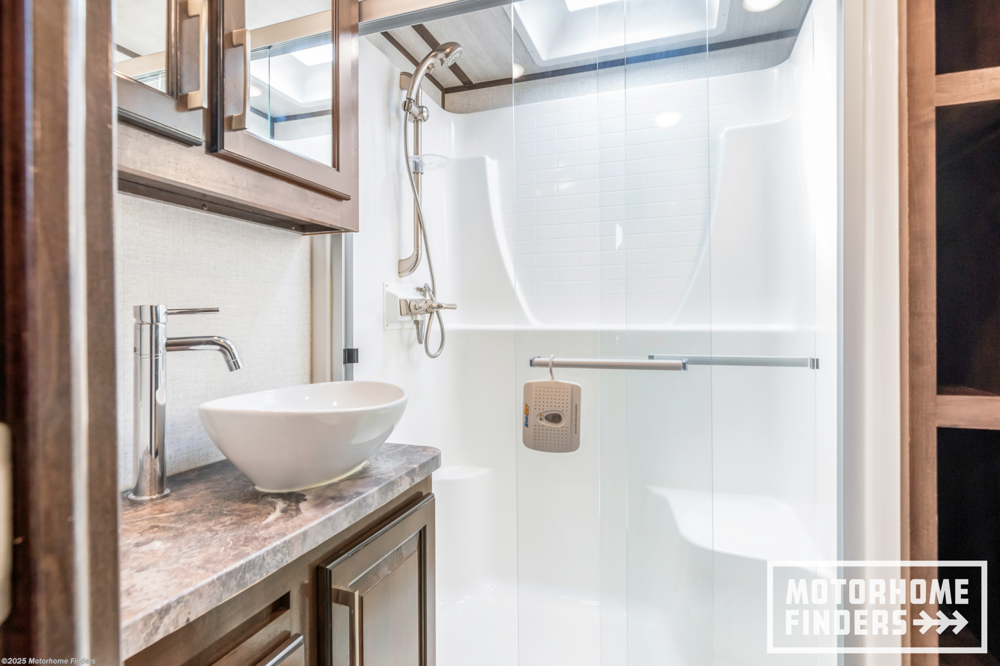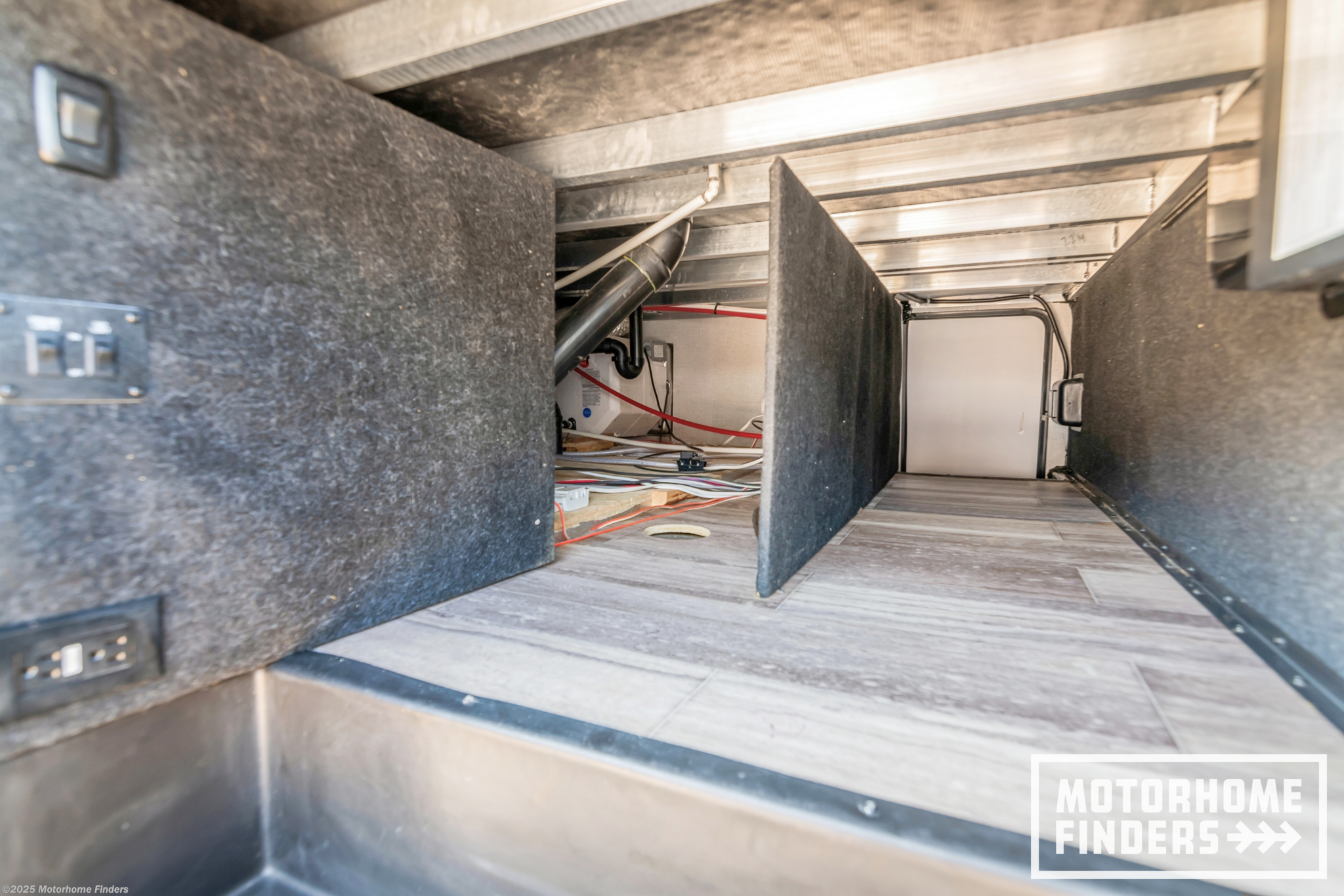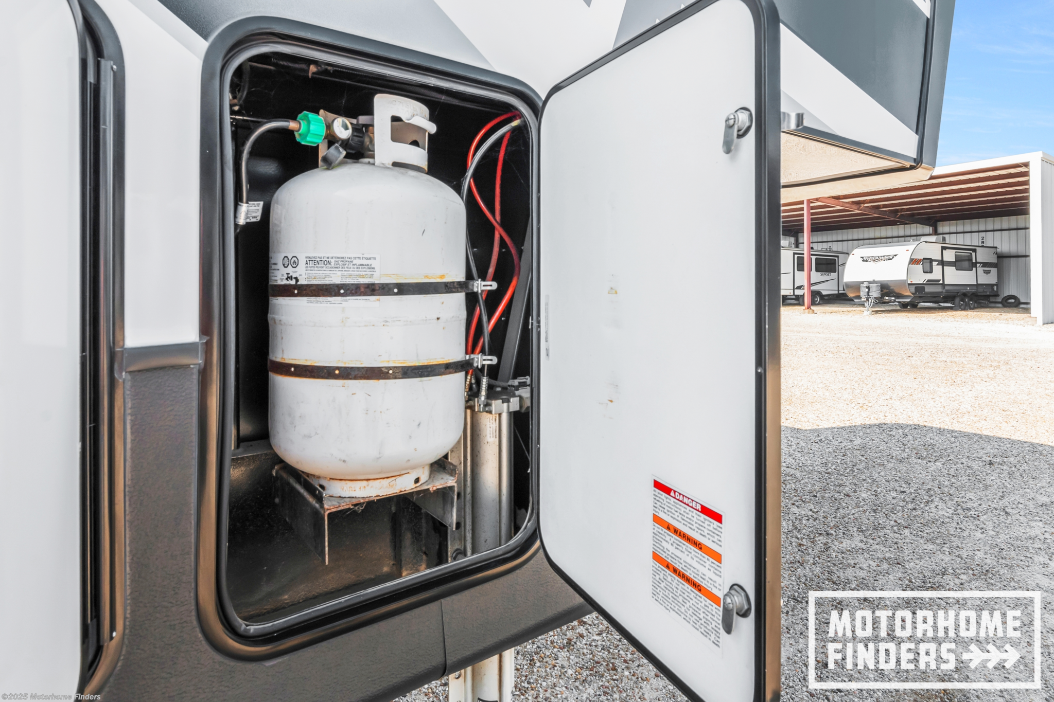 Alloy Wheels, Aluminum Entrance Steps, Automatic Leveling Jacks, Awning, Black Tank Flush, Exterior Speakers, External Shower, Heated Underbelly, Ladder, Leveling Jacks, Pass Thru Storage, Power Roof Vent, Ramp, Rear Ramp Door, Skylight, Slideout, Spare Tire Kit -