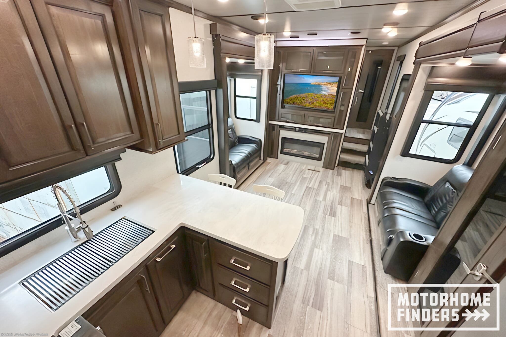This 2021 Dutchmen Voltage 4225 delivers a perfect combination of style, storage, and strength for those who want a toy hauler that feels like a luxury home on wheels.