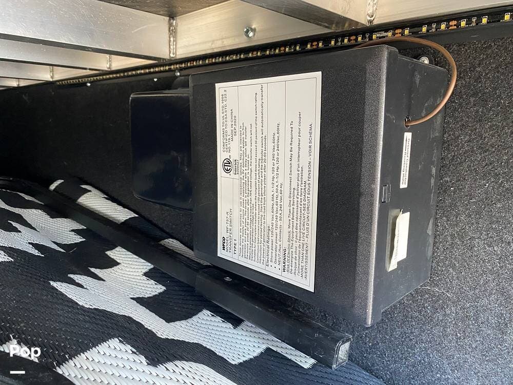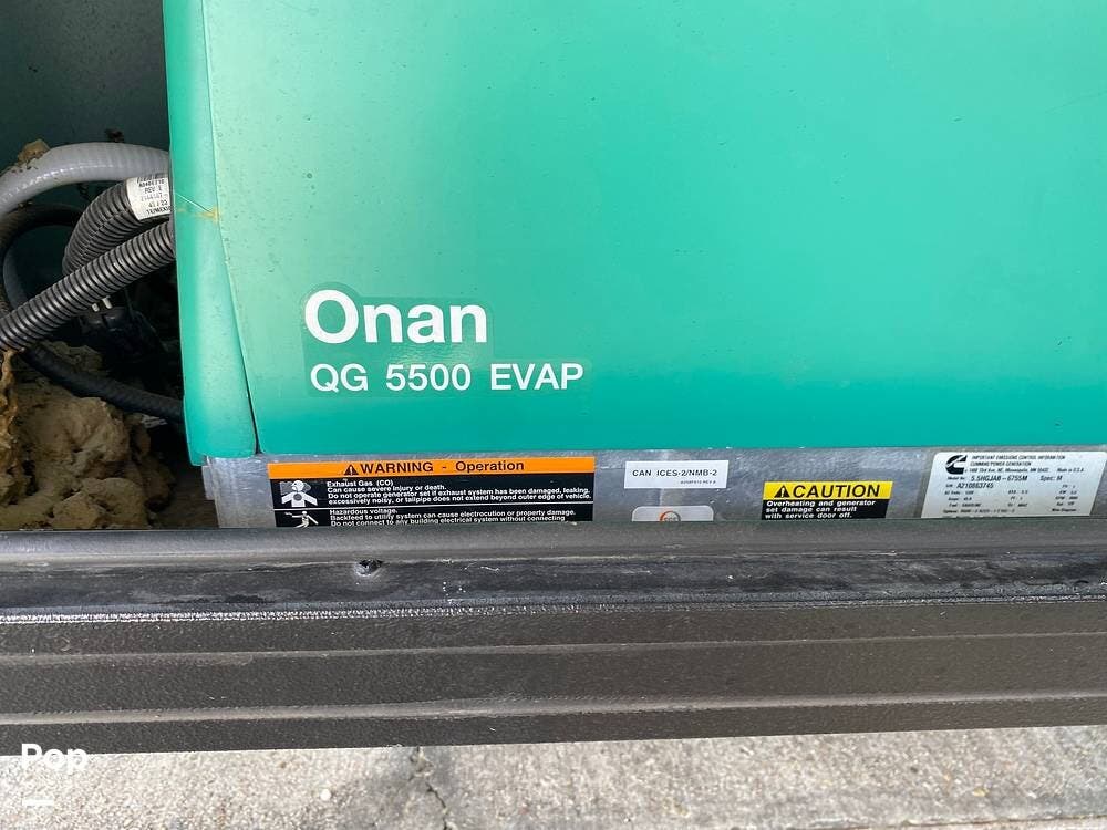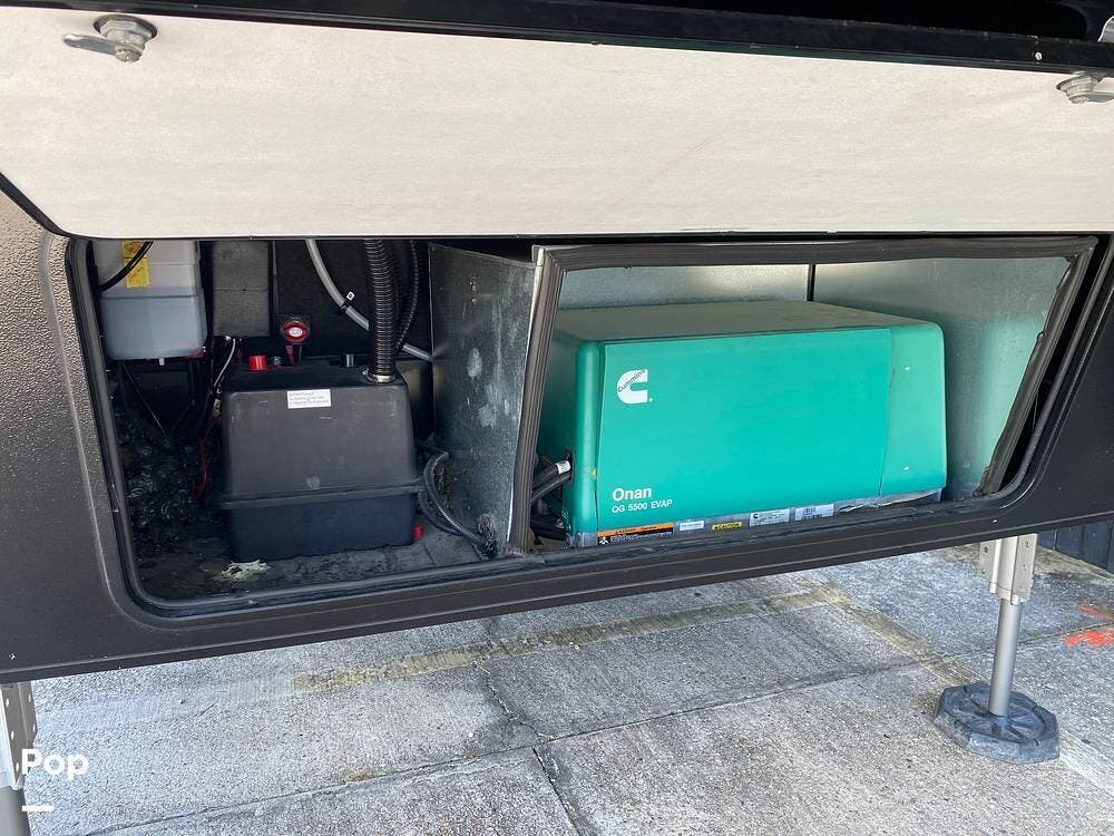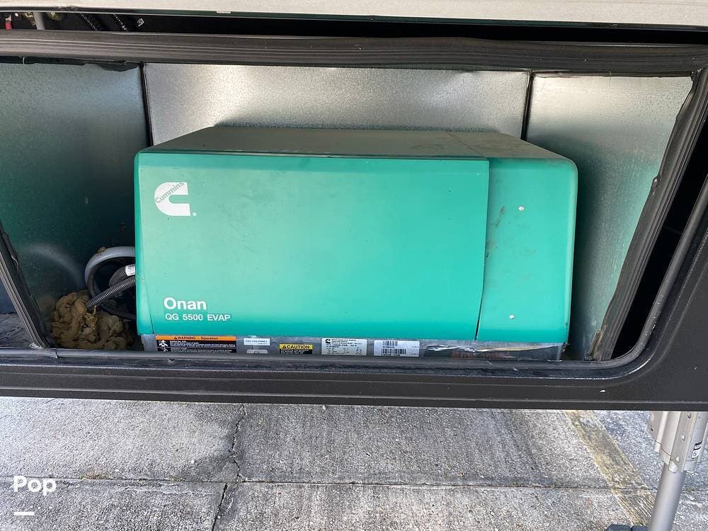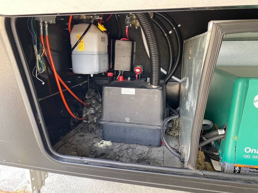Located behind the front exterior storage bin door is an Onan 5.5 kW generator, which will allow you to operate off the grid.