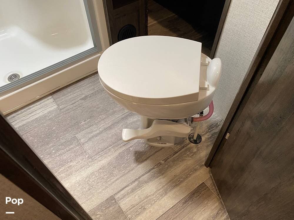 With a thirteen-foot garage length and a sixty-gallon auxiliary fuel tank, you won't need to worry about leaving any of your favorite camping toys behind. This 2021 Voltage 4225 toy hauler by Dutchmen is ready for your next family adventure.