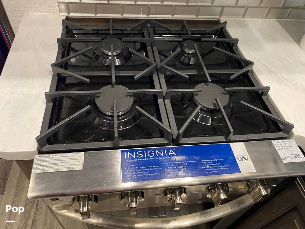 The U-shaped kitchen is designed with efficiency in mind. A four-burner gas stove allows for more dishes to be prepared simultaneously. Not only is there ample pantry and cabinetry space for storing dry goods, cooking utensils, and pots and pans, but the residential-size fridge will keep your items requiring cold storage as fresh as the day they were purchased.
