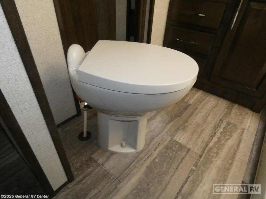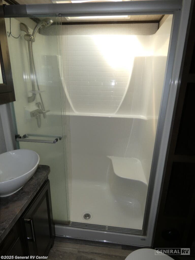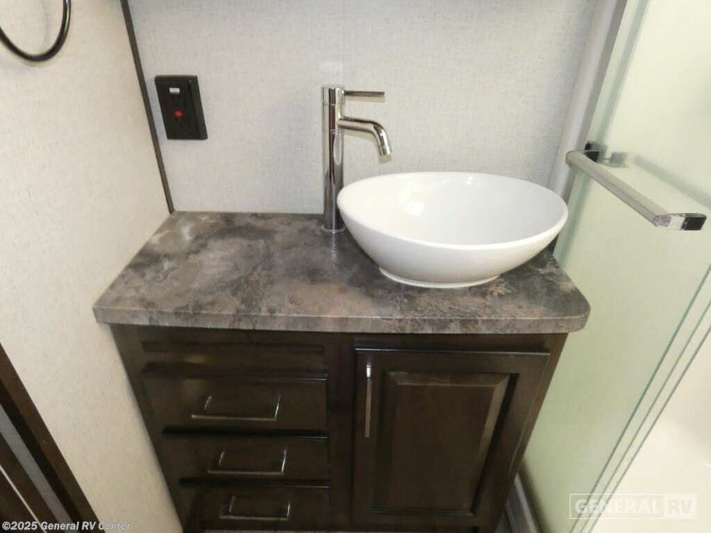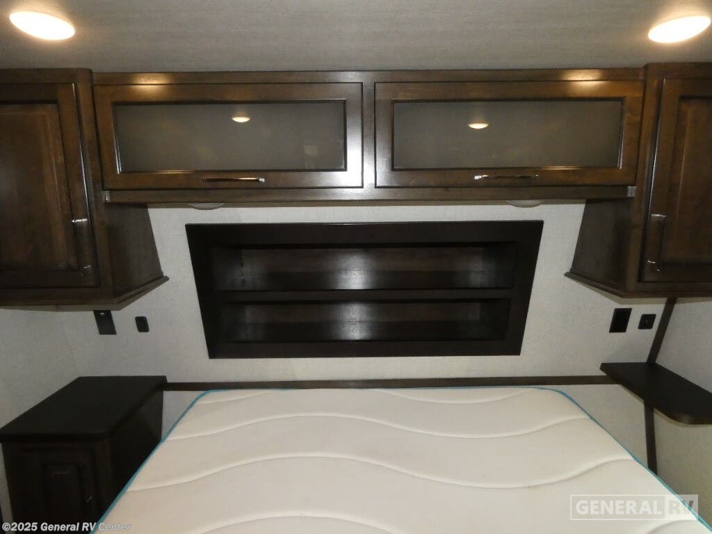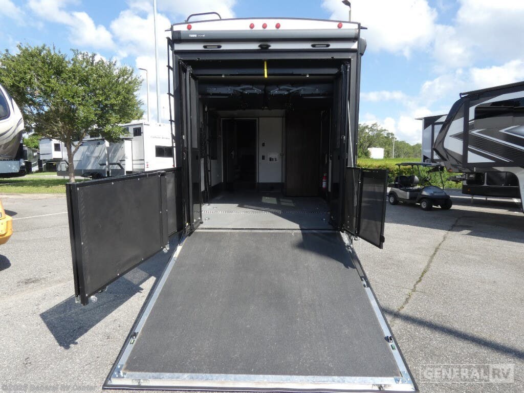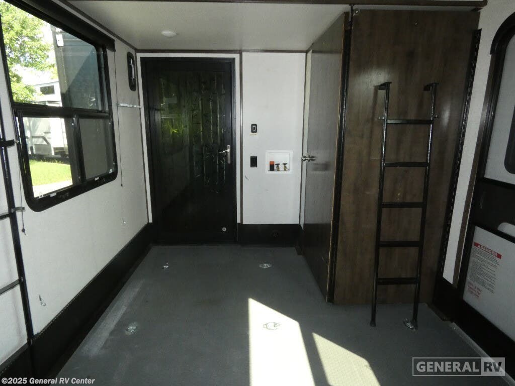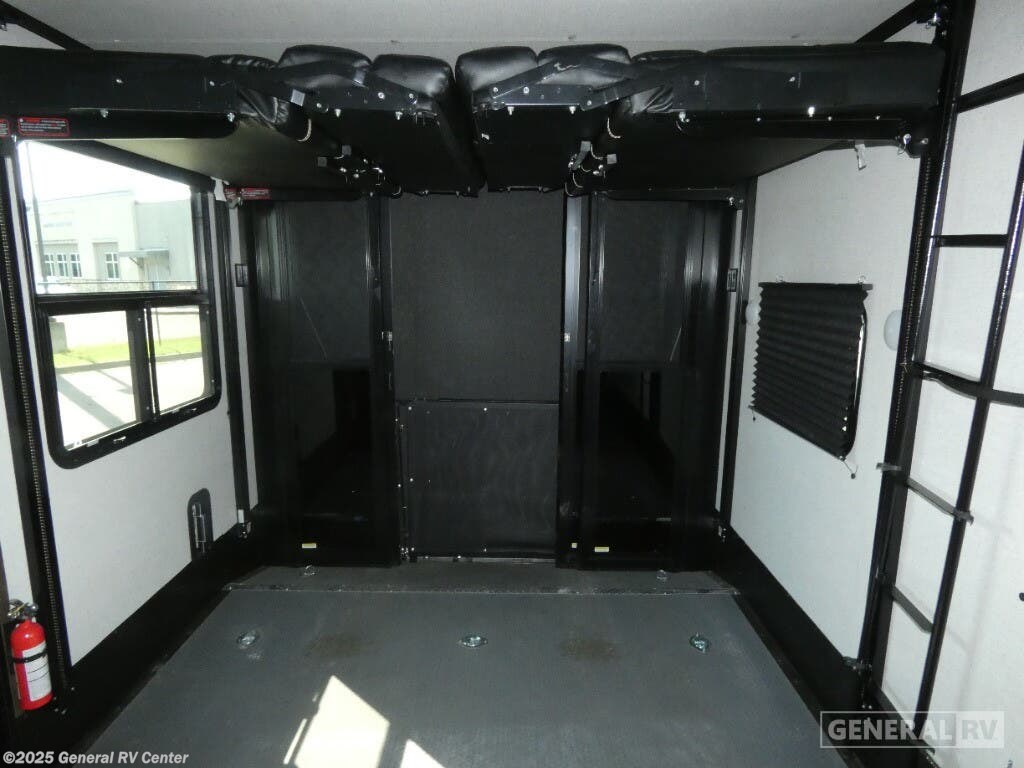 Experience luxury and adventure with the 2021 Dutchmen Voltage 4145. This stunning fifth wheel is designed to elevate your travel lifestyle with its spacious and thoughtfully crafted layout. The centerpiece of this RV is a 13-foot garage, perfect for bringing along your favorite outdoor toys. Inside, you'll find a harmonious blend of comfort and functionality. The center kitchen is equipped with a full-size refrigerator and a three-burner cooktop, making meal prep a breeze. With a cozy fireplace in the living area, relaxation comes easy after a day of exploration. The Voltage 4145 boasts ample sleeping accommodations for up to seven guests, featuring a king bed in the front bedroom, a queen bed, and a convertible bed. The twin bed loft adds an extra touch of versatility. Enjoy the convenience of a washer and dryer prep area, ensuring you're always ready for the next adventure. With three slides, this RV provides plenty of room to spread out, while the powered retractable awning creates the perfect outdoor living space. Whether you're on a weekend getaway or an extended road trip, this RV offers the perfect blend of luxury and practicality. For more details, visit your nearest General RV dealership.