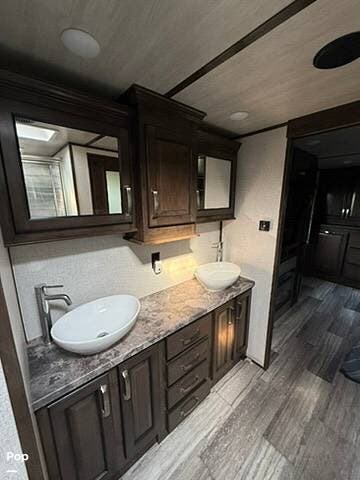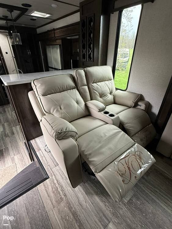2021 Yukon 421FL by Dutchmen is a 45-foot fifth wheel that has seen remarkably little use. This single-owner unit has only been slept in four times, been on the road for 10 miles and the professional-grade stove has never been cooked on.